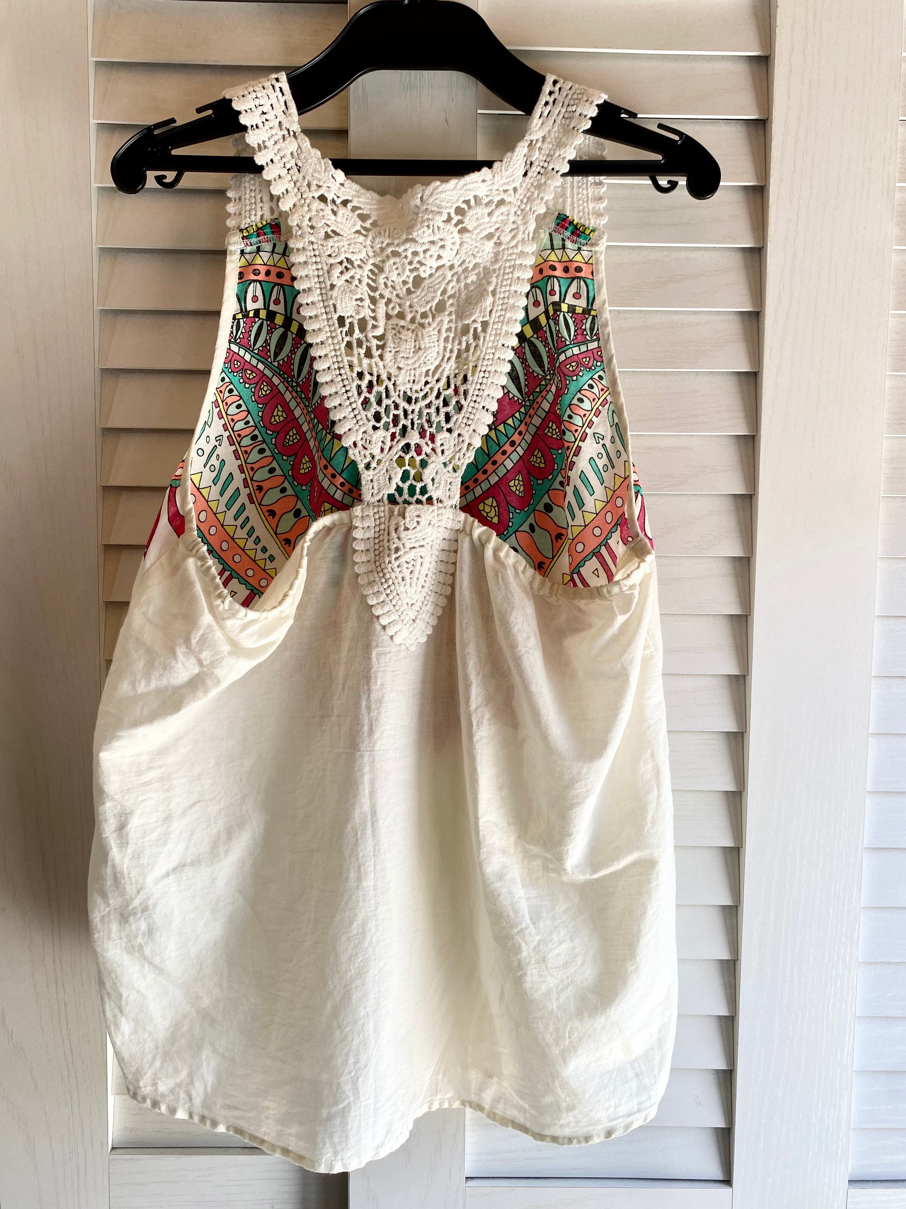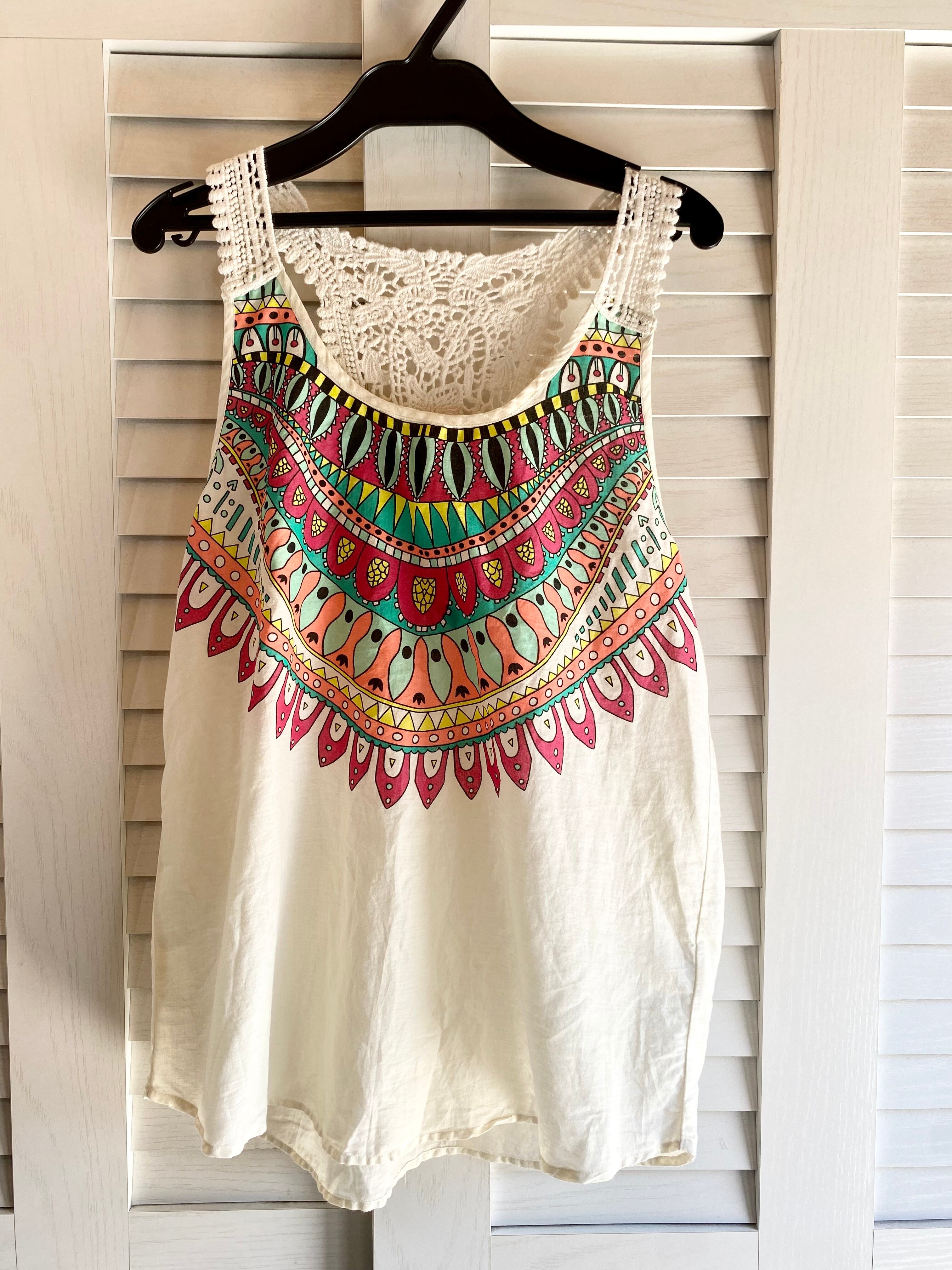 #48 H&M プリントインドコットン&コットンレース ドッキングタンク アイボリー