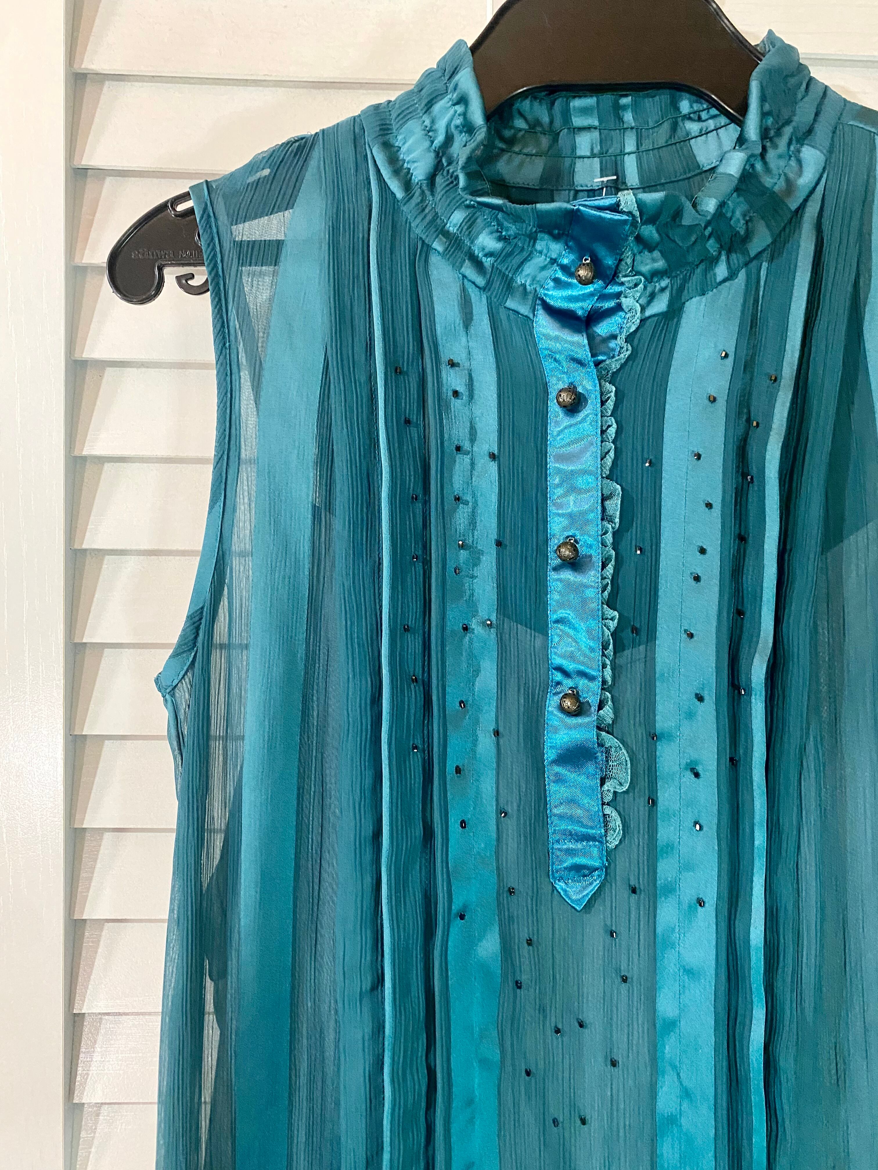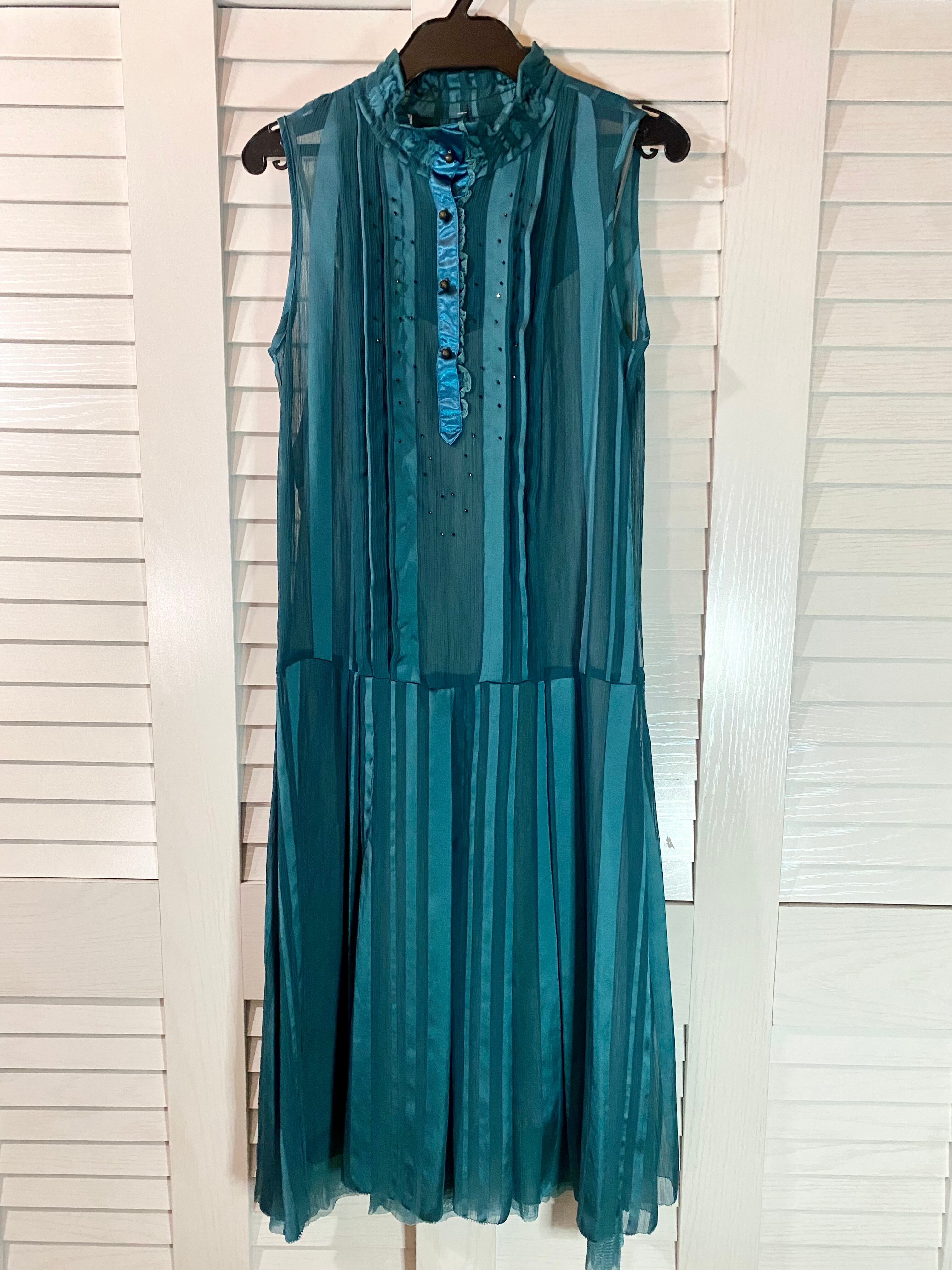 Abahouse ランダムストライプシフォン ノースリーブワンピ ターコイズブルー キャミソールワンピ付き