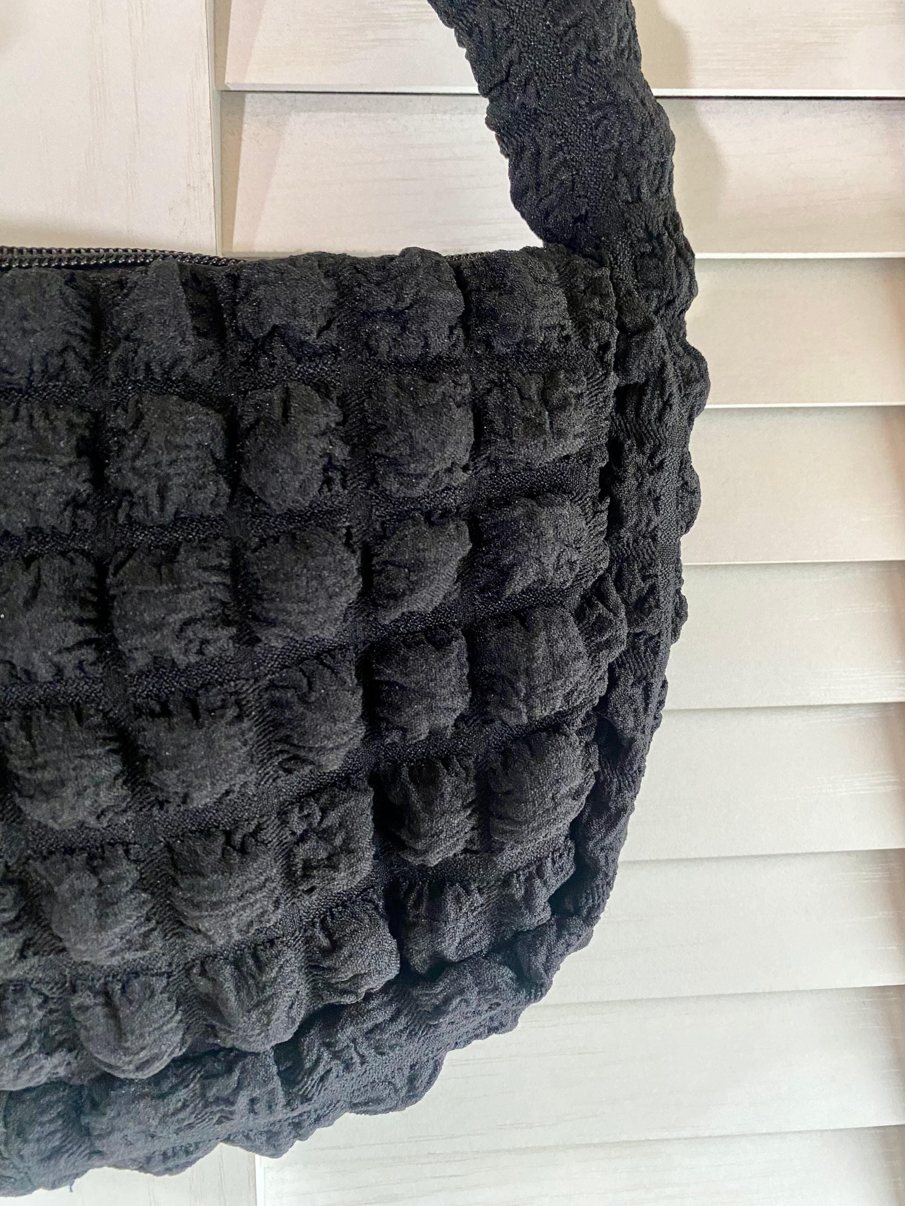 #50【デザインサンプル】BIGチェック リップル加工ハンドルバッグ ブラック
