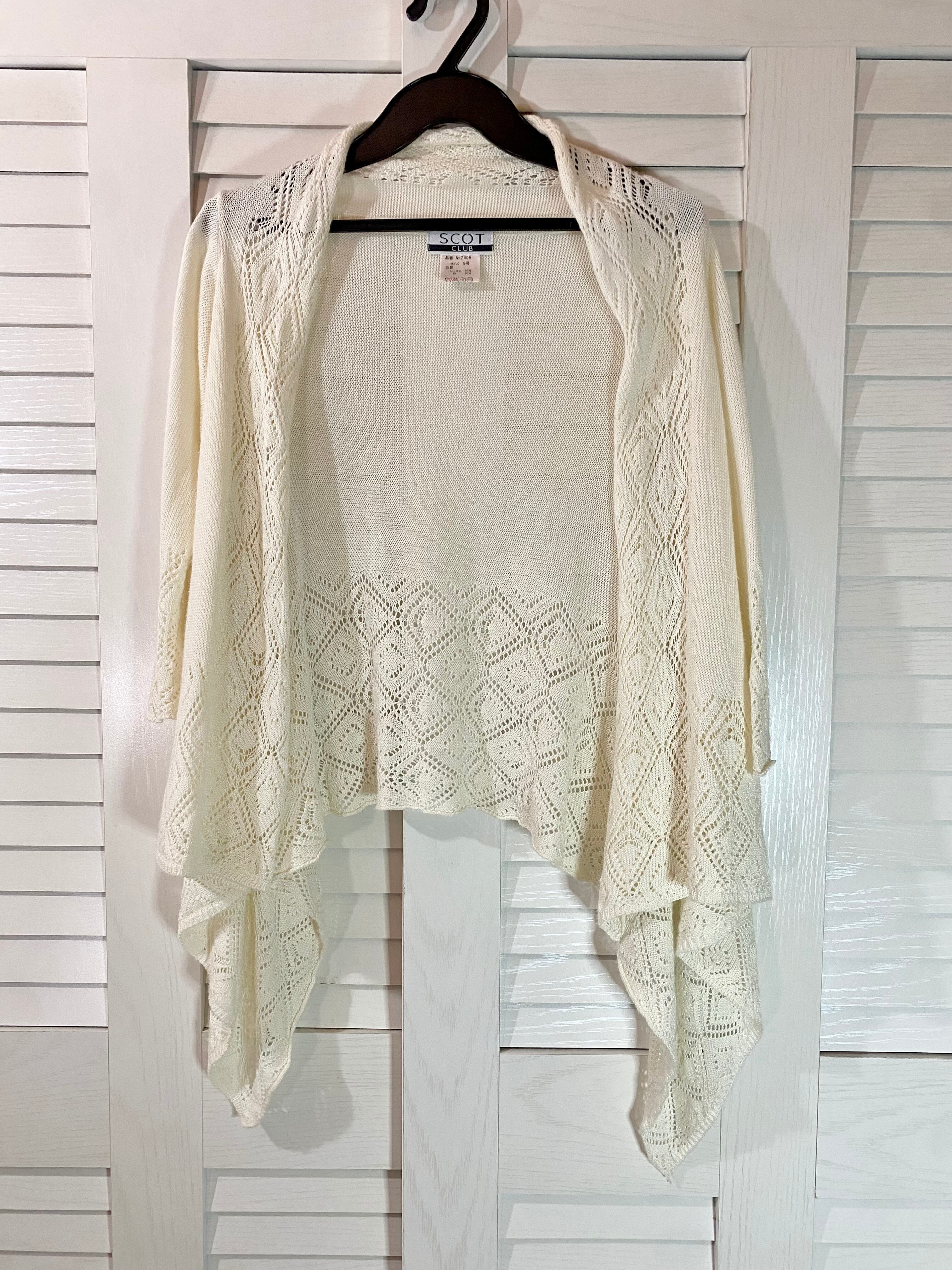 #50 SCOT CLUB 透かし編み切替イレギュラーヘムカーデ アイボリー