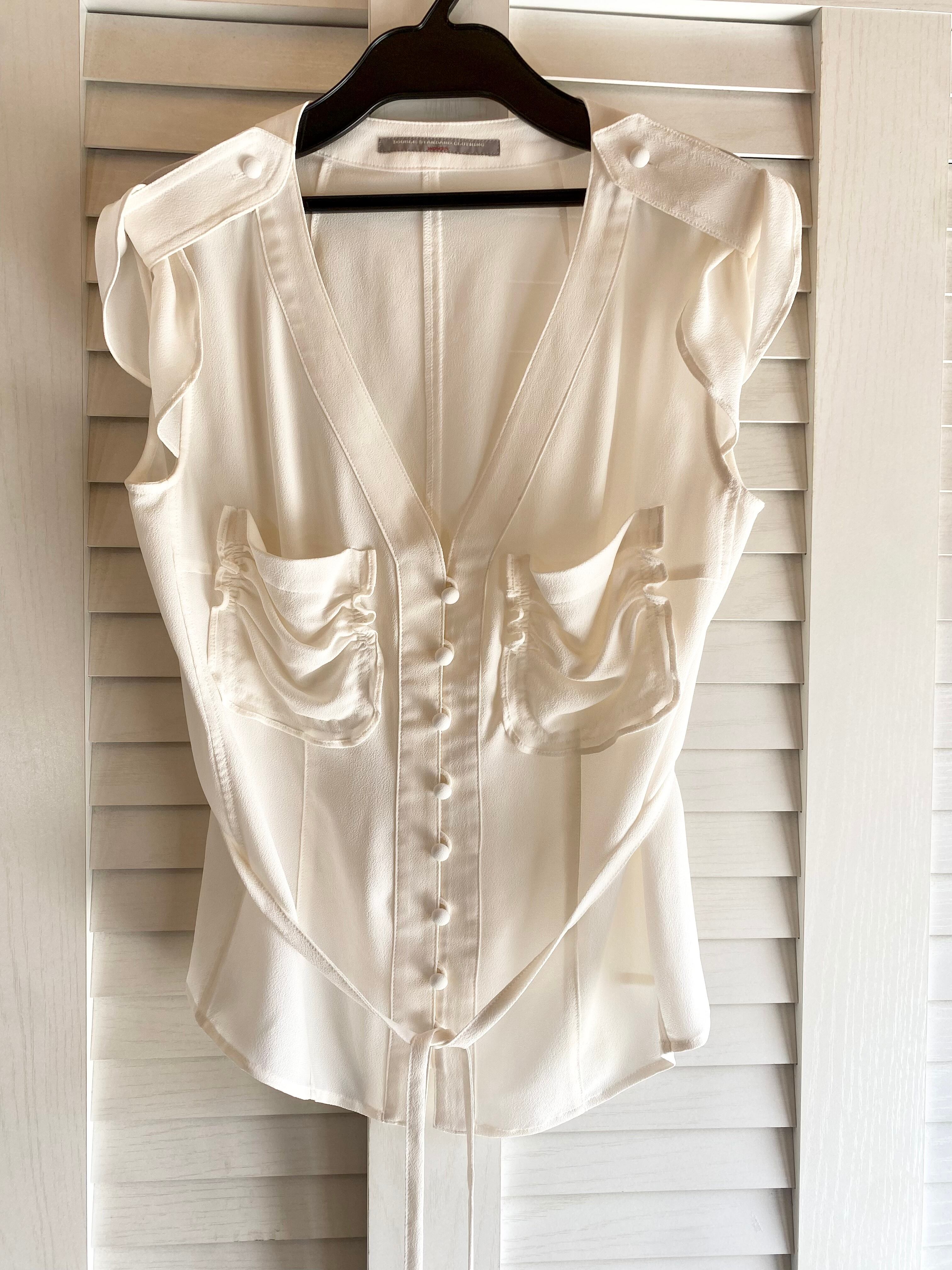 #51 DOUBLE STANDARD CLOTHING 定価2万!ちりめんジョーゼット ノースリーブデザインブラウス アイボリー