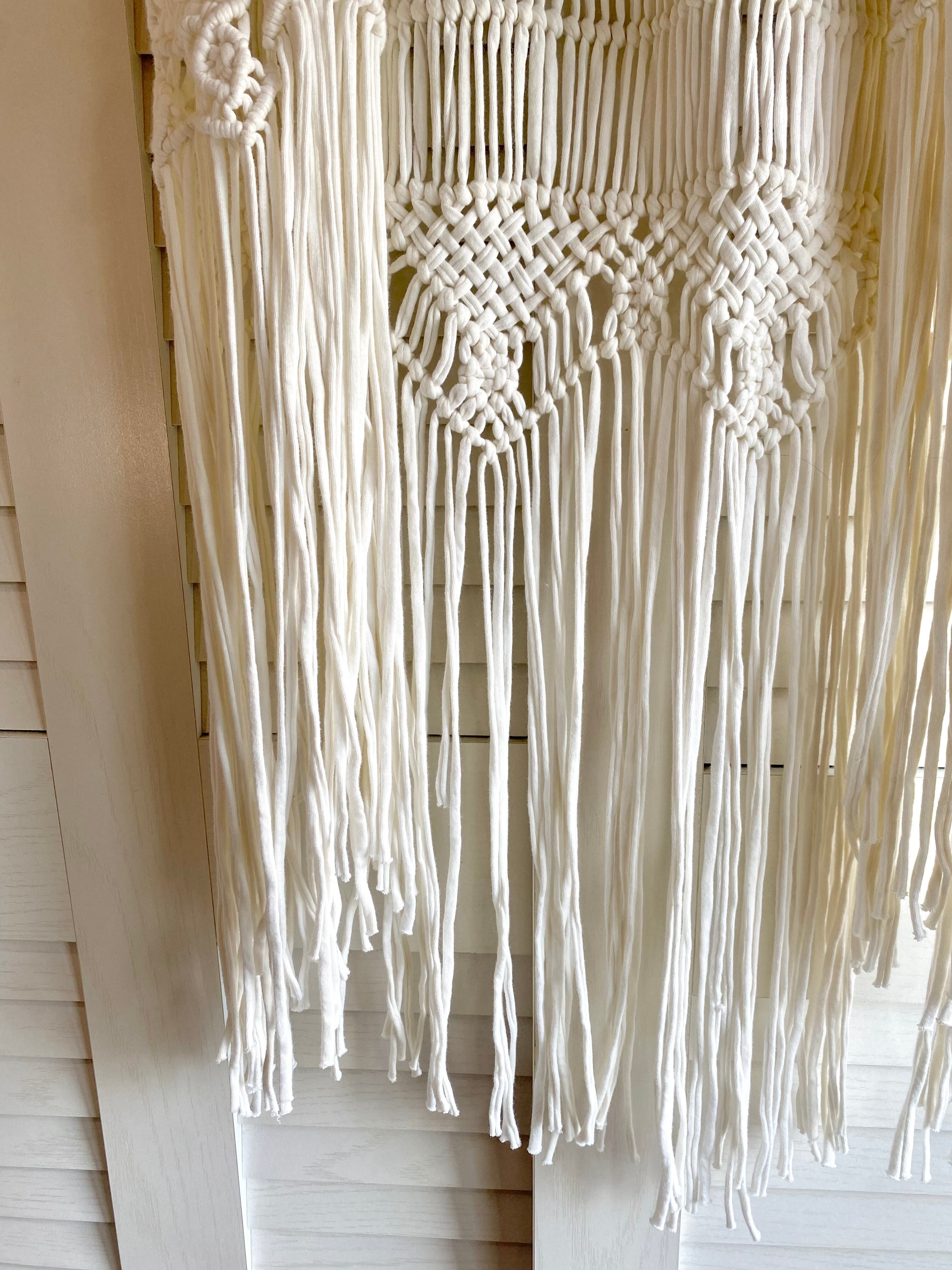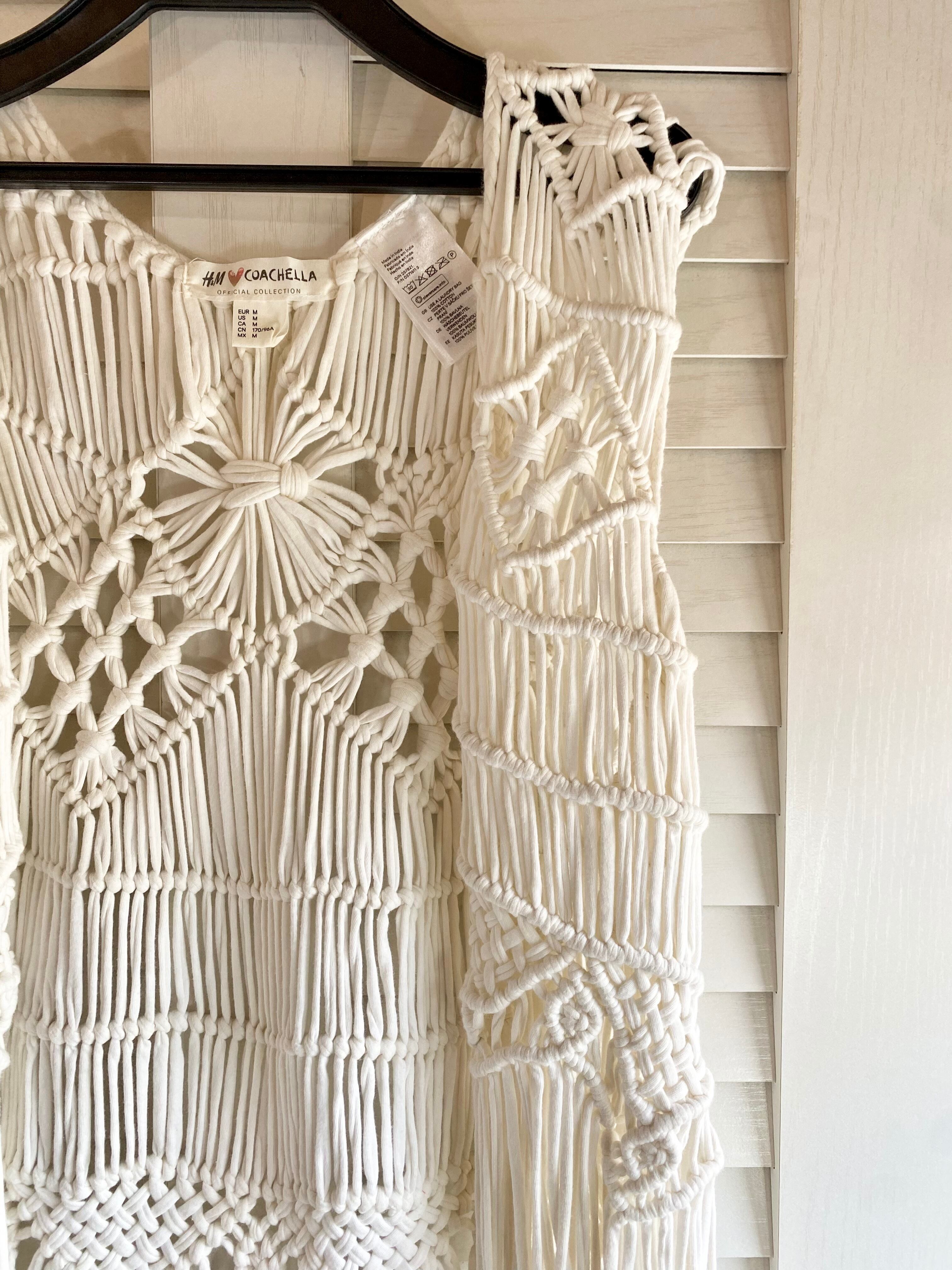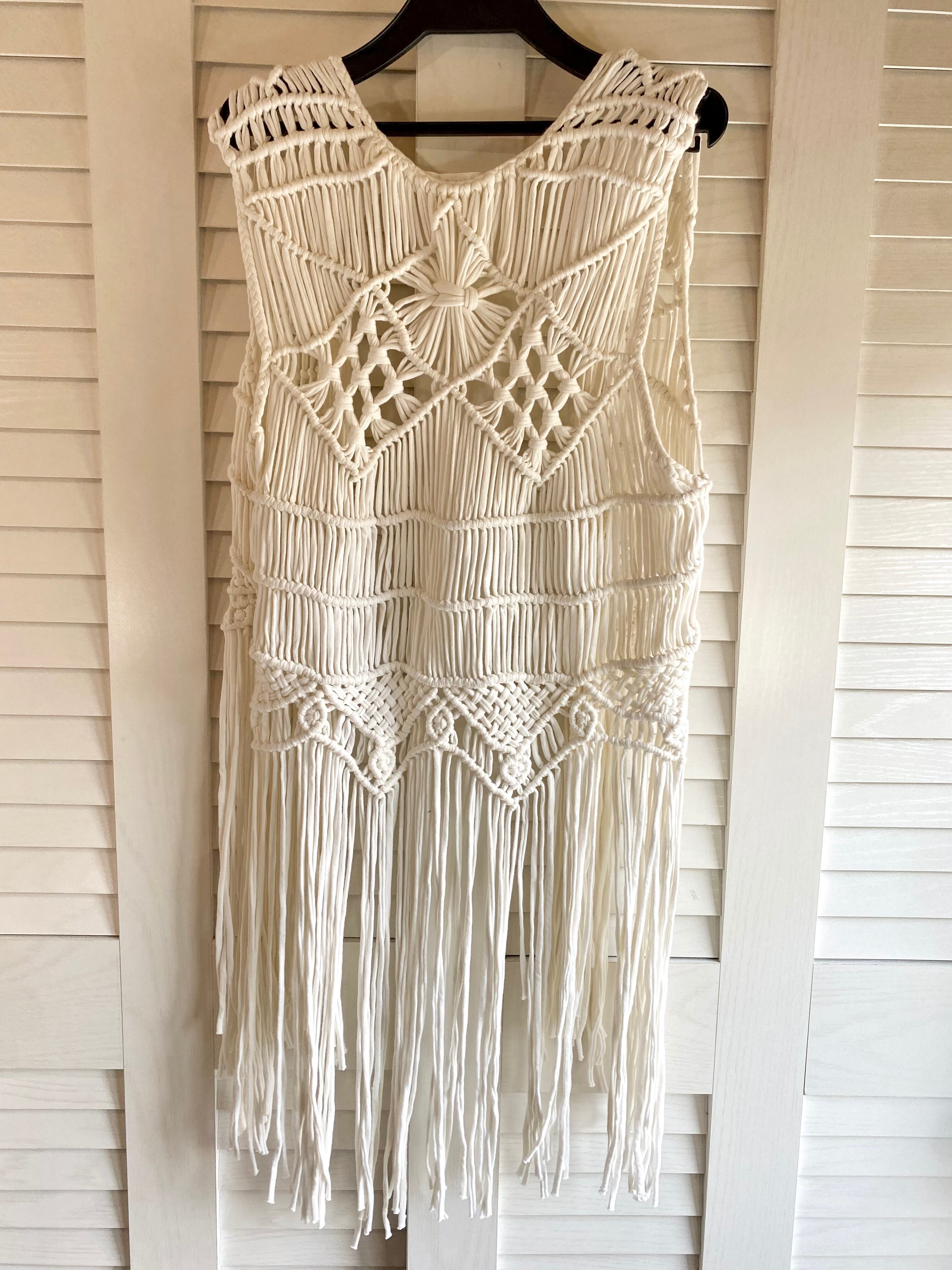 #52 H&M マクラメ ロングフリンジ ジレ オフホワイト