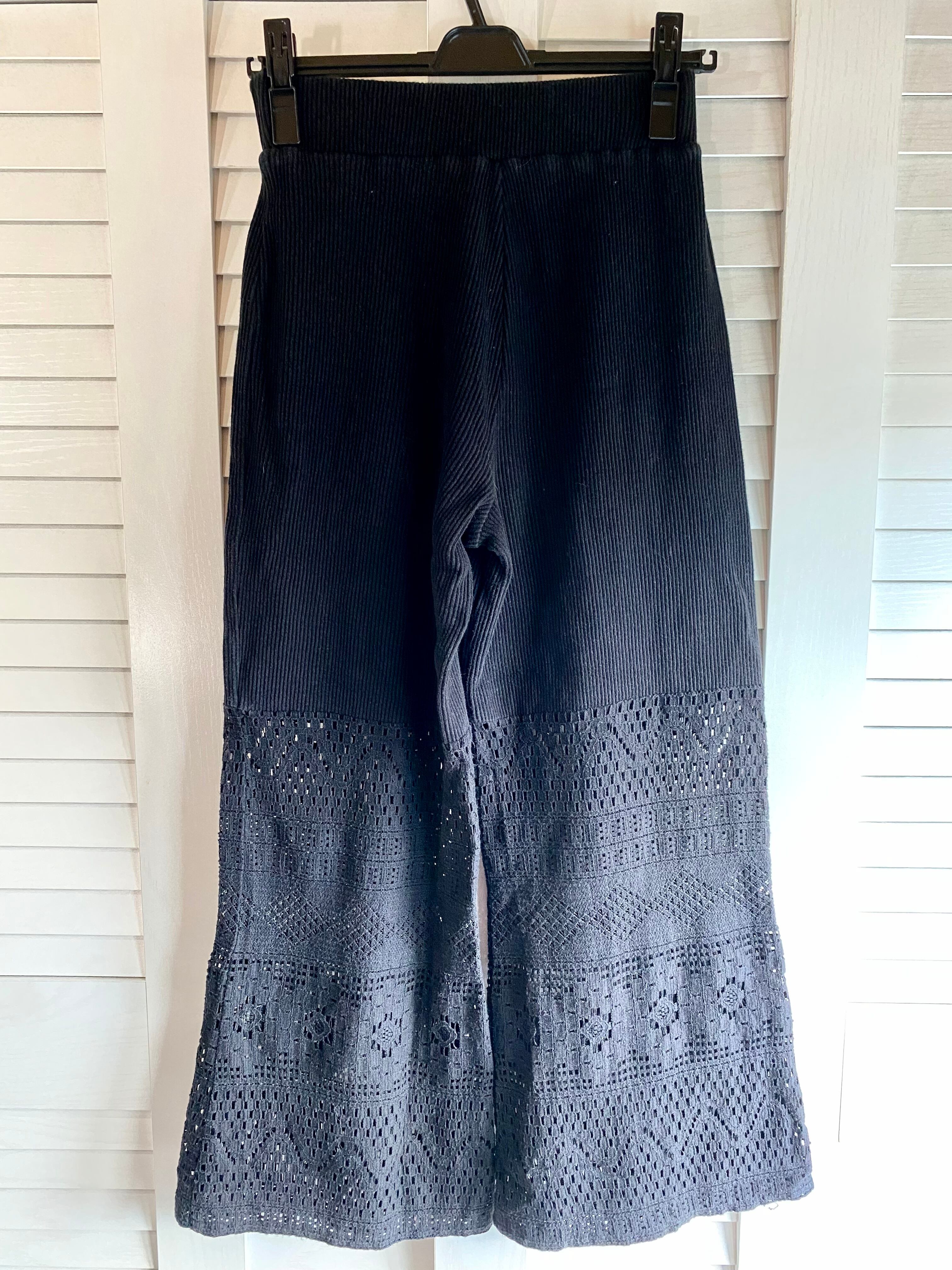 #52 LAGUNAMOON コットンリブニット&コットンレース リラックスフレアーワイドパンツ ブラック