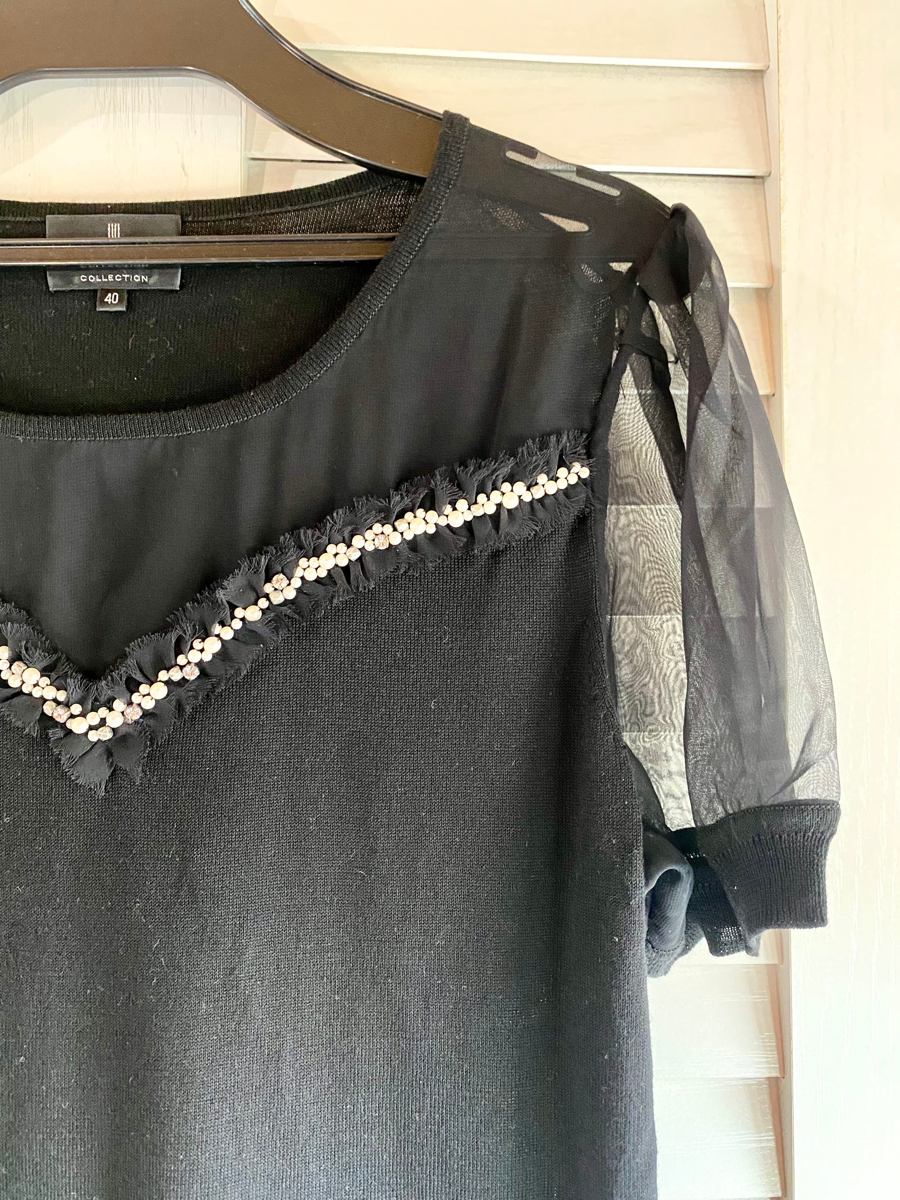 #52 パールビジュー&シアーオーガン切替 コットンサマーニット ブラック | お洋服屋さん 『GOKKO』
