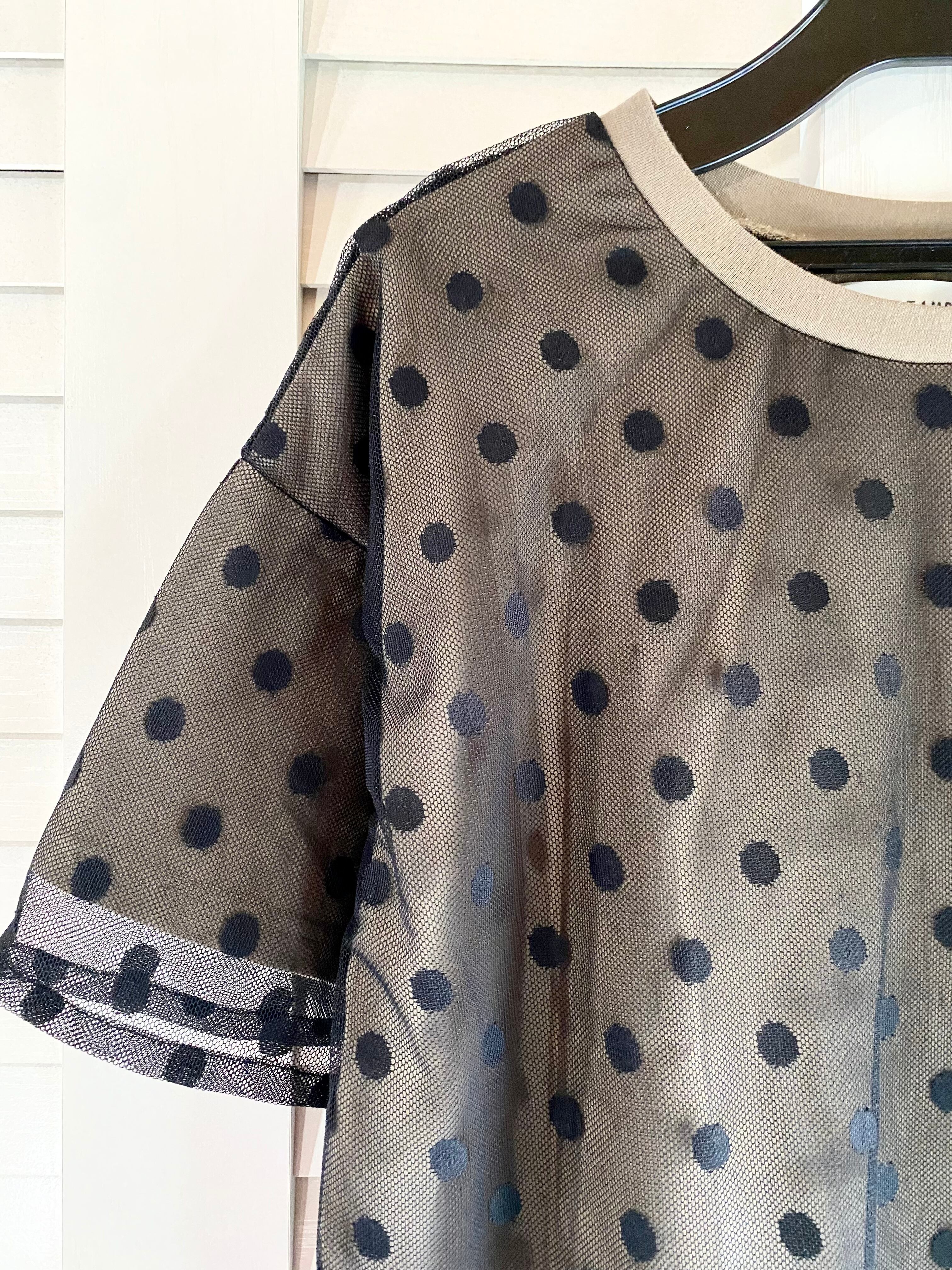 #52 BEAMS ドットオーバーチュール 半袖デザインカットソー カーキベージュ×ブラック