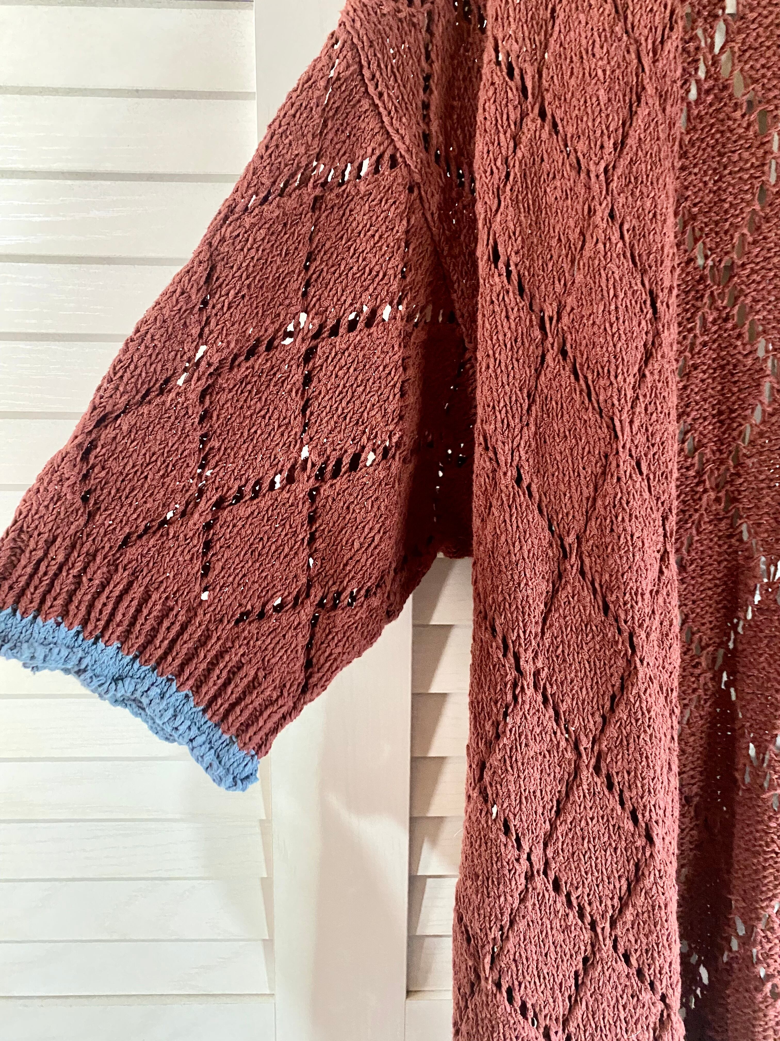 #53 KBF 透かし編み 配色コットンニットカーデ ブラウン