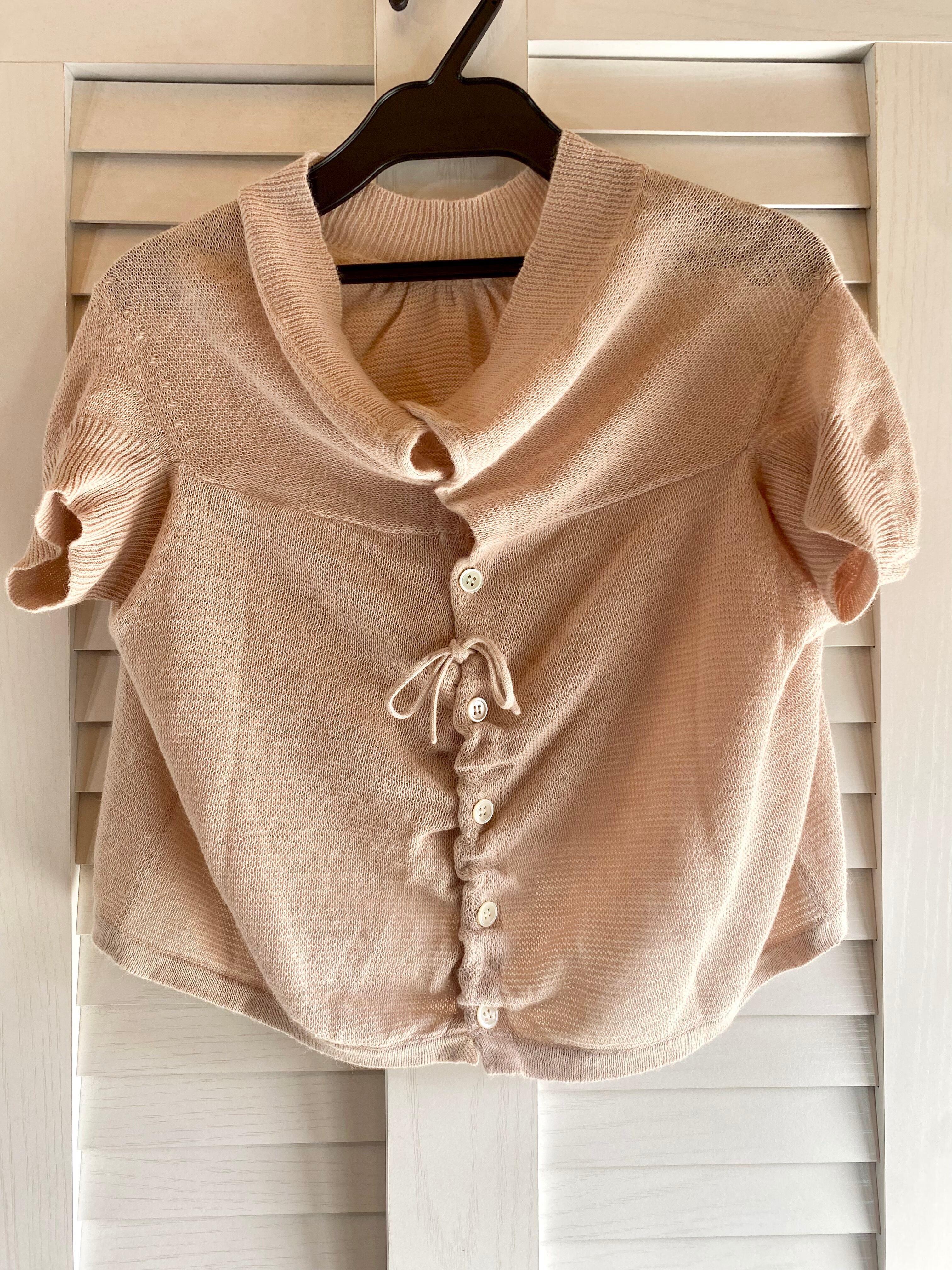 #54 SUNAOKUWAHARA コットンリネン 変形デザインニットボレロ ピンクベージュ