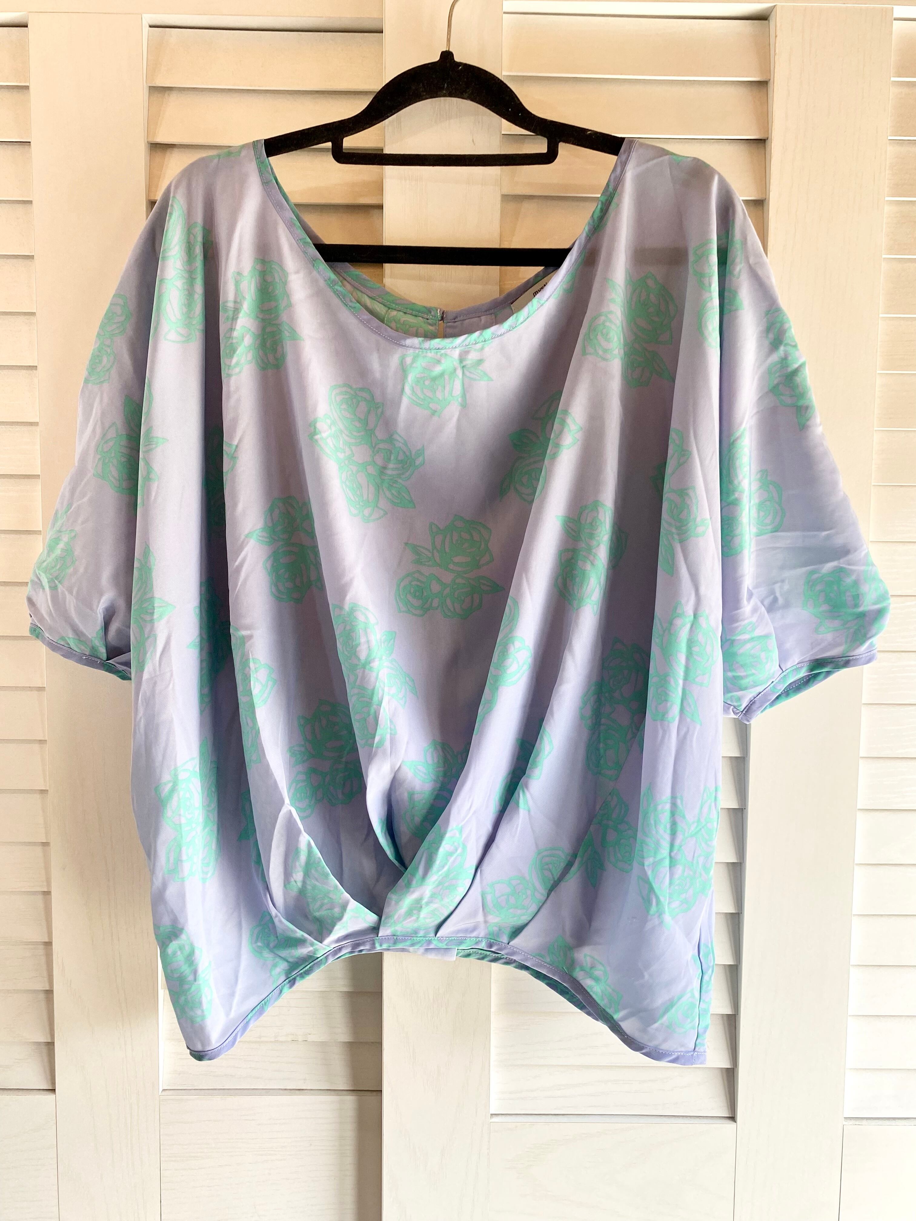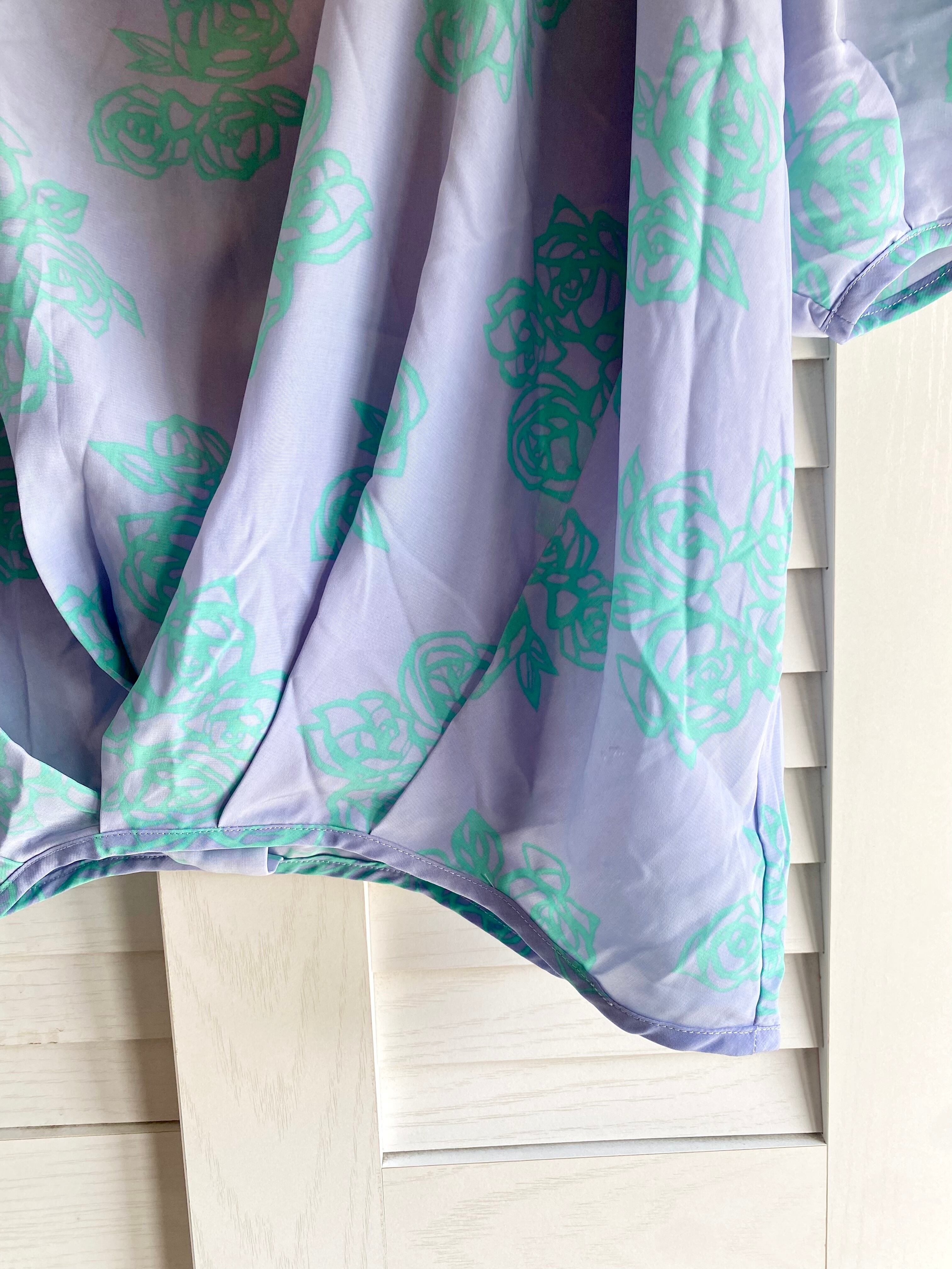 #54 mystic ローズプリント ボリュームドルマンスリーブブラウス ブルー