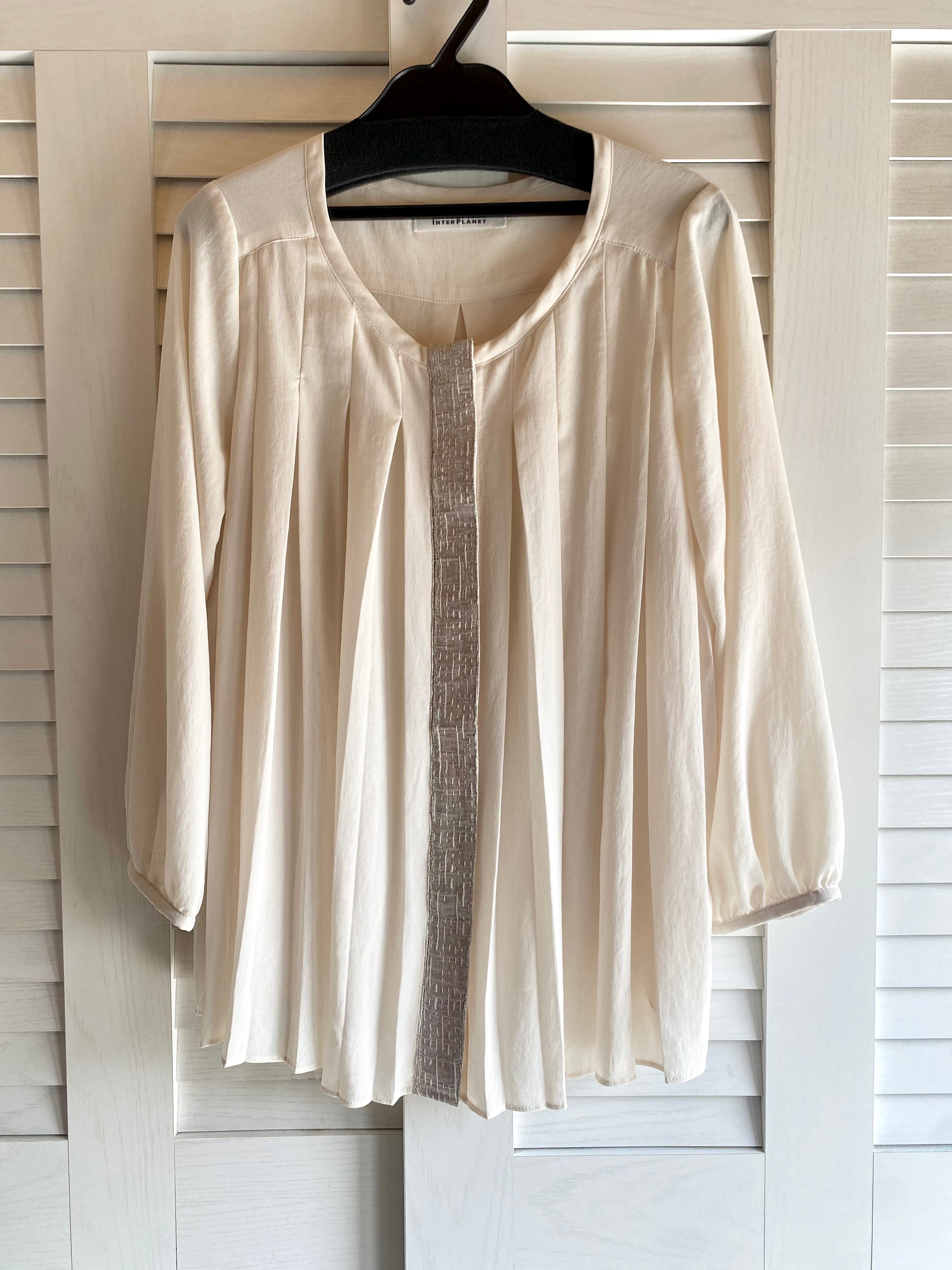 #55 INTER PLANET センターシルバーライン タックプリーツ ジョーゼットブラウス アイボリー