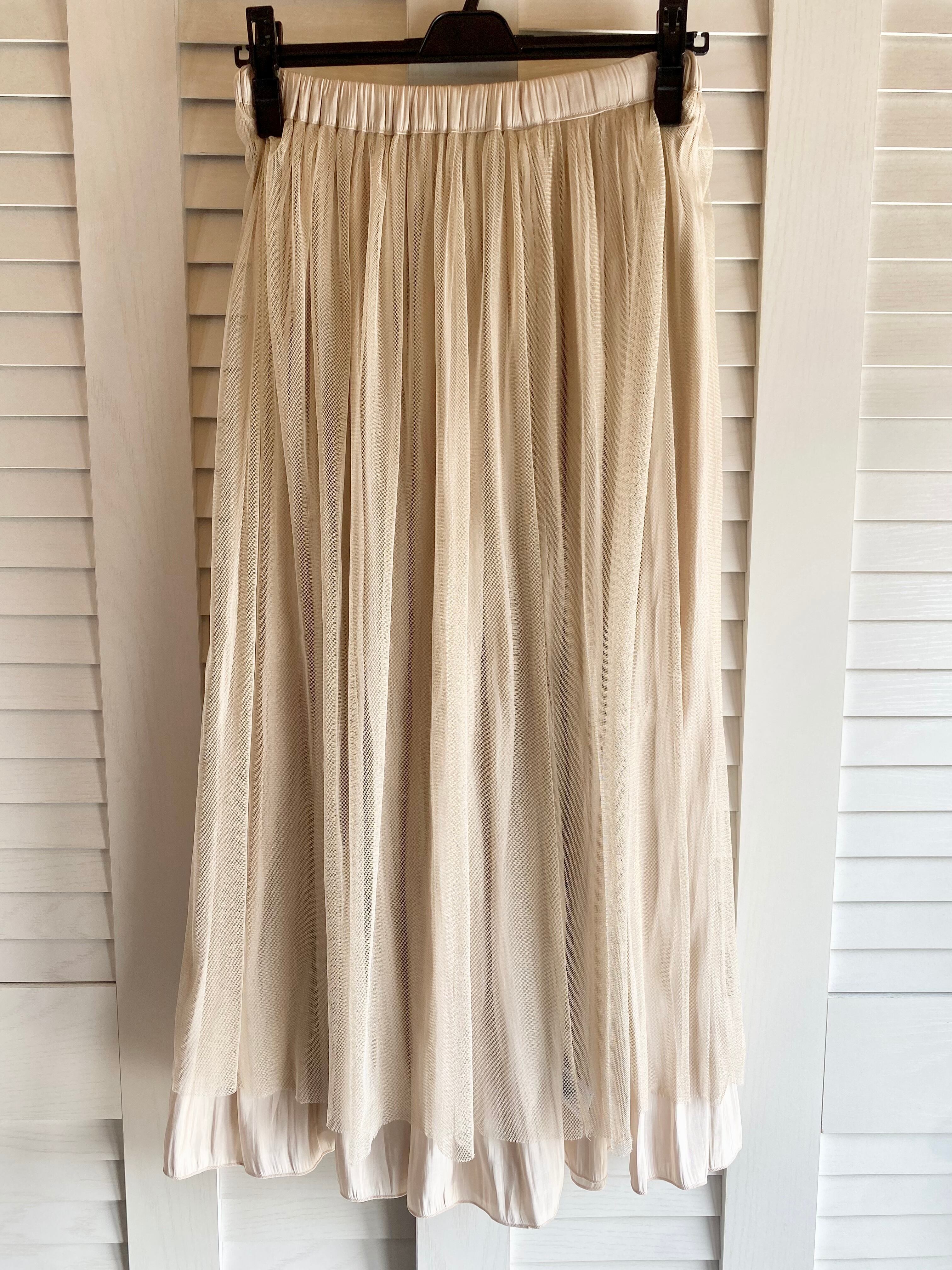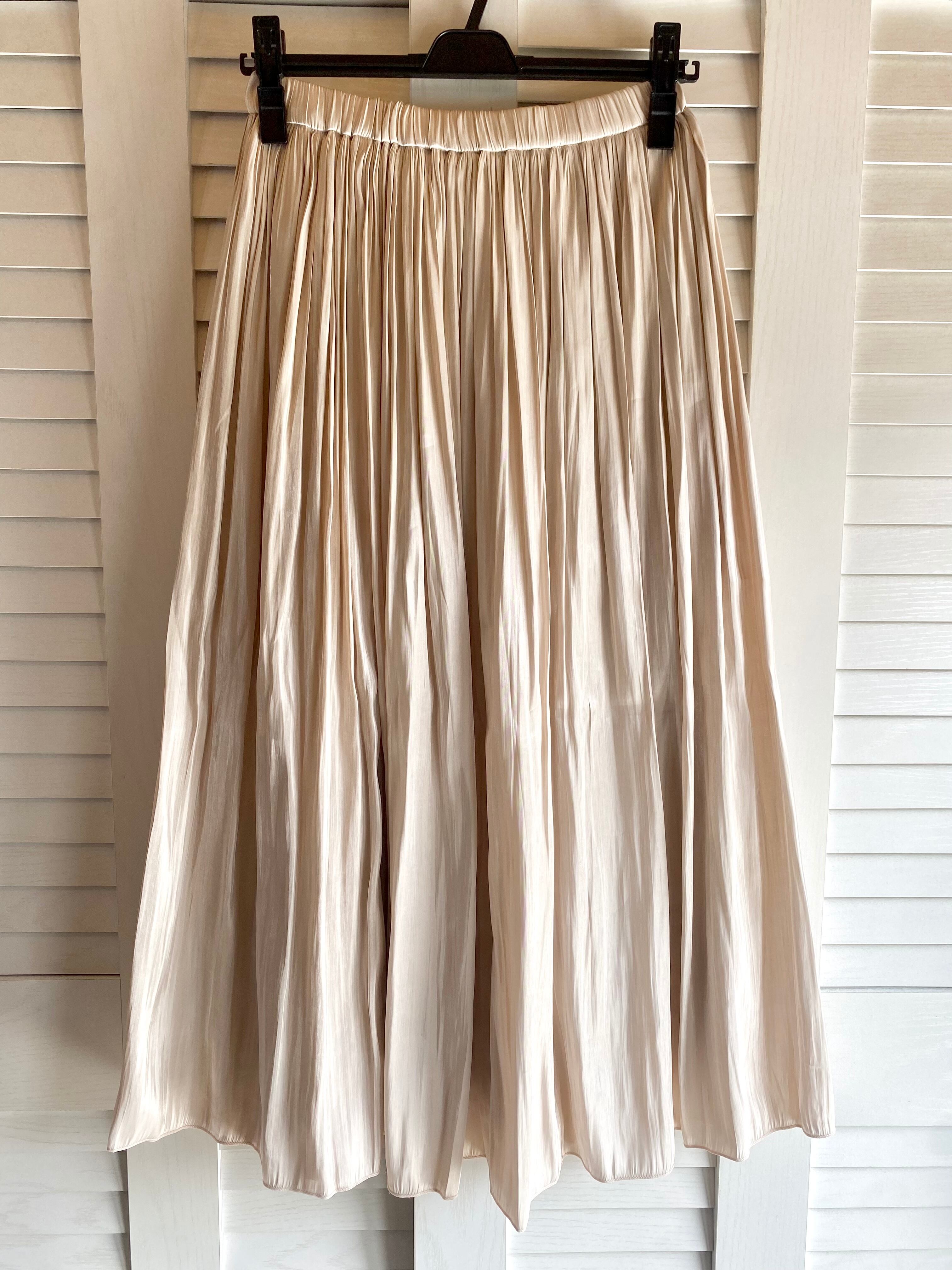 #55 w closet リバーシブル ランダムプリーツ ヴィンテージサテン×ゴールドラメチュール ボリュームスカート シャンパンベージュ