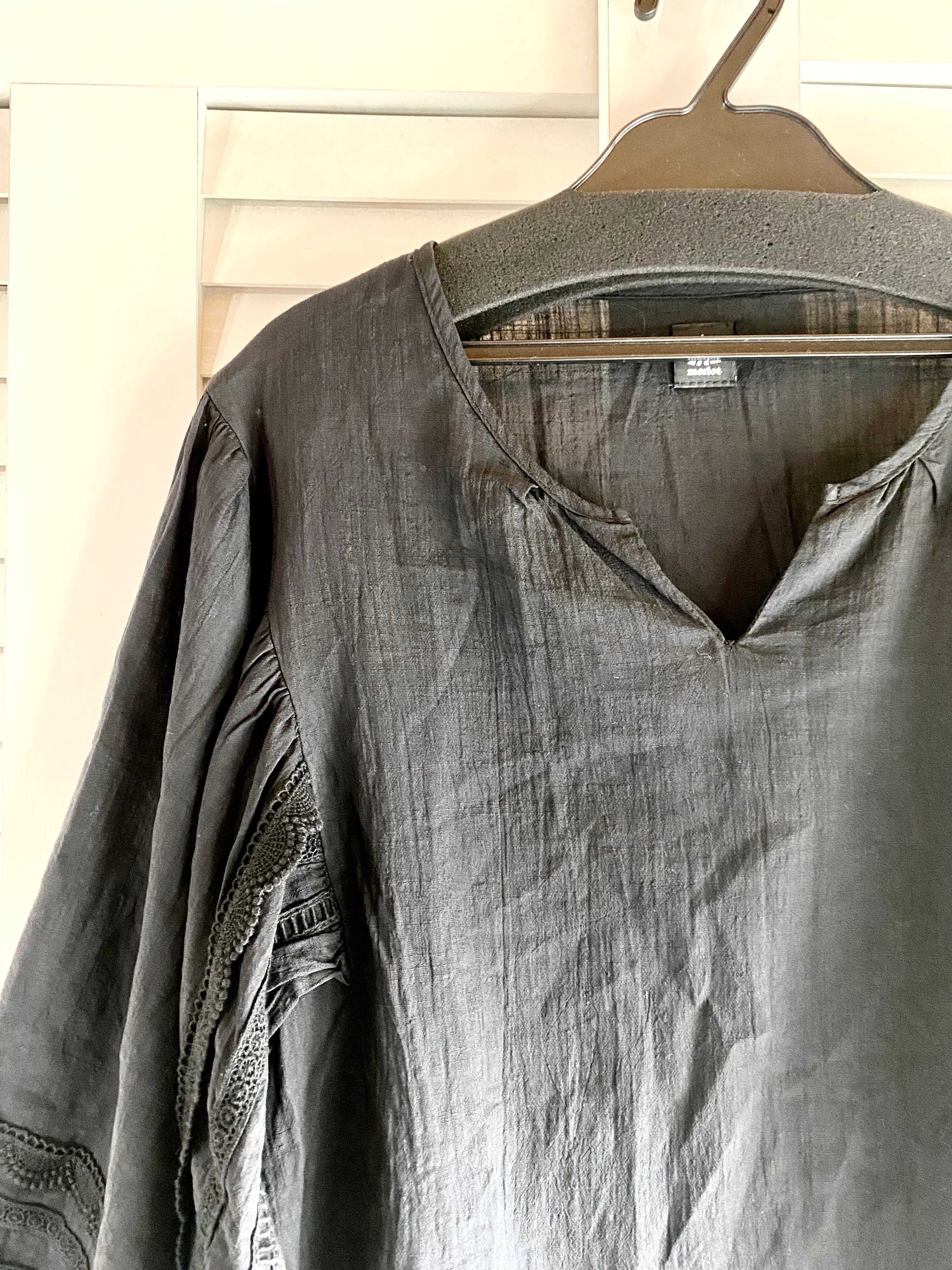#55 merlot スクエアスリーブ プルオーバー コットンブラウス ブラック | お洋服屋さん 『GOKKO』