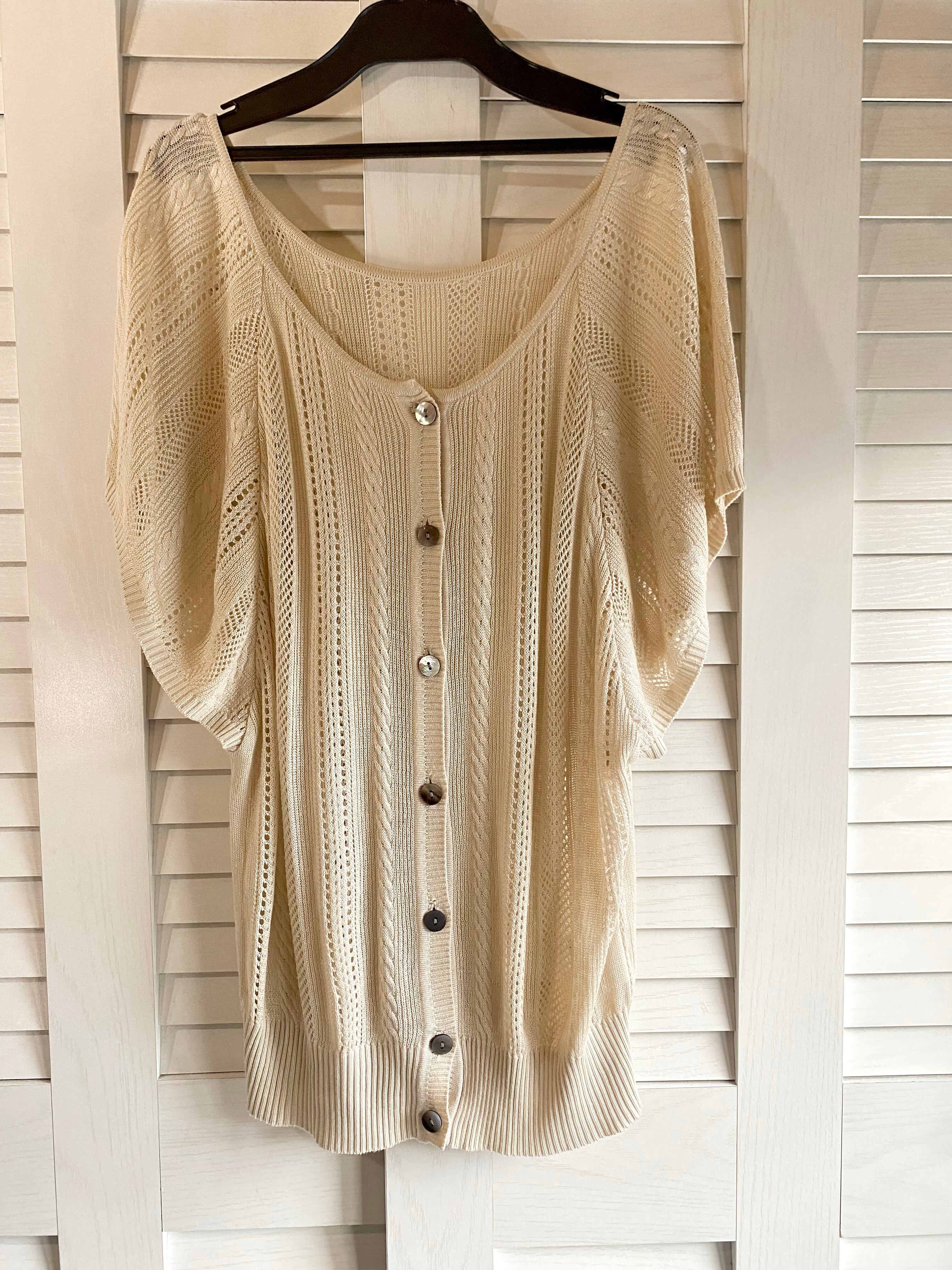 #56 LAUTREAMONT フレアースリーブ 針抜きニットカーデ ライトベージュ