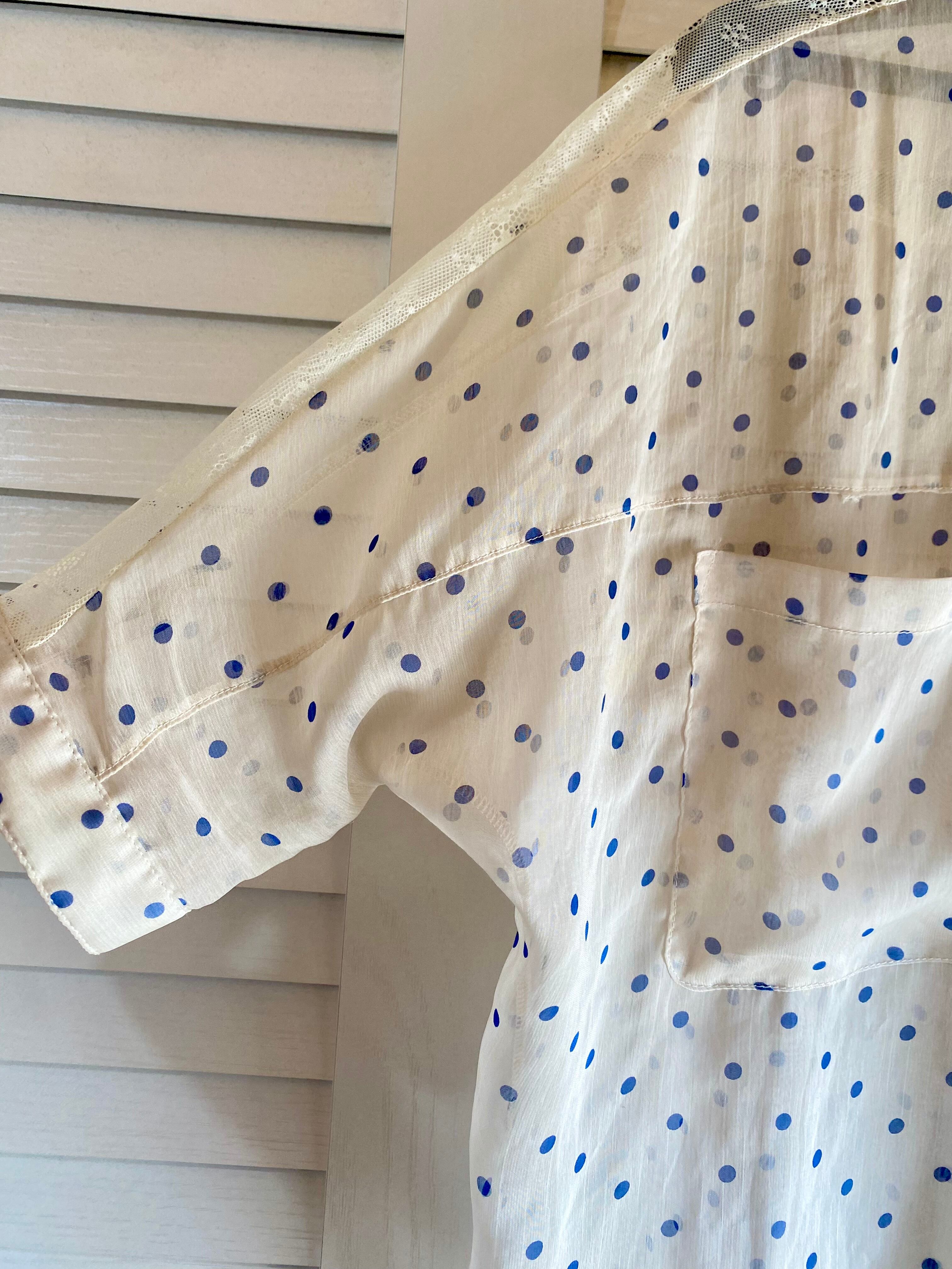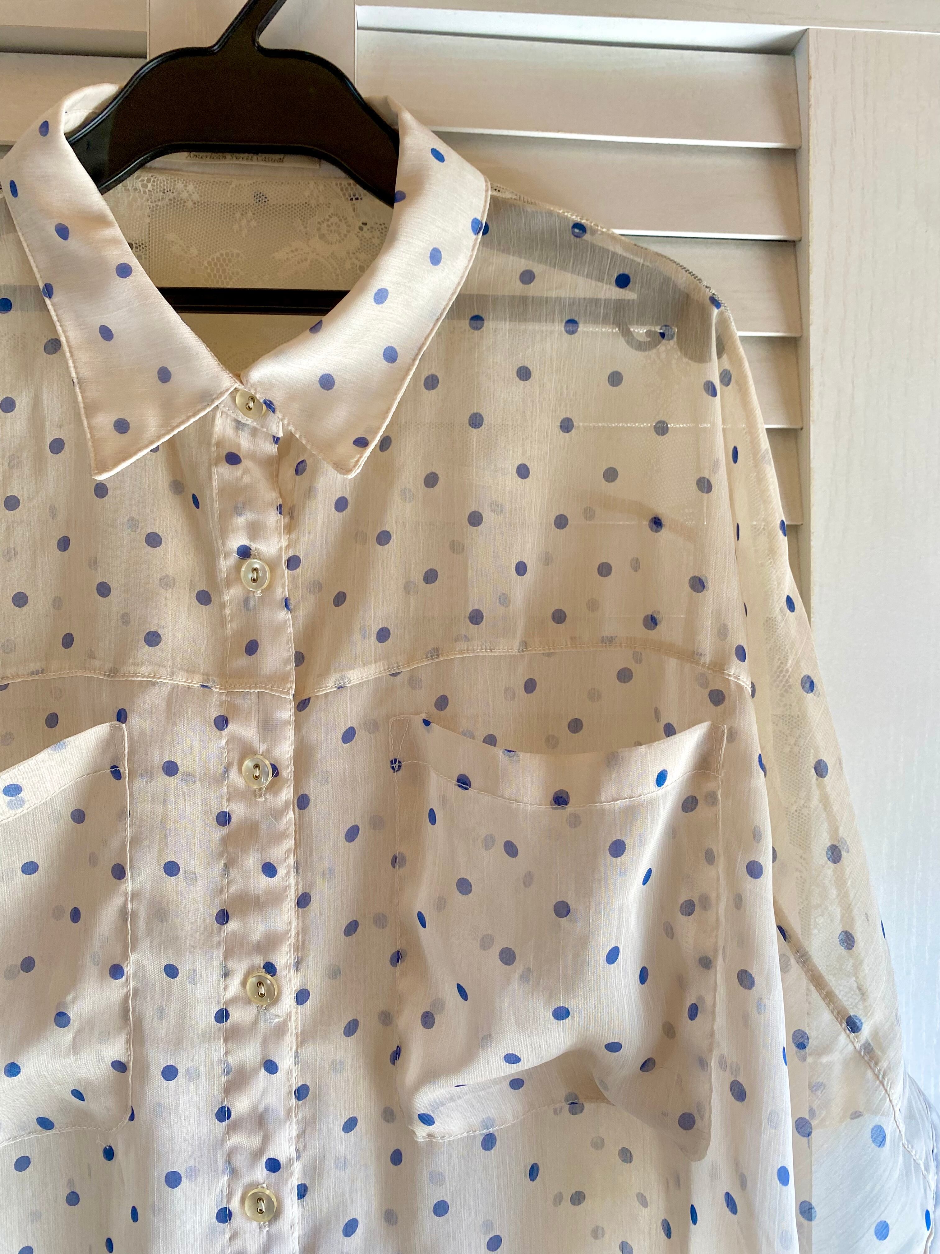 #57 dazzlin ネイビードット バックレース シアーブラウス ライトベージュ