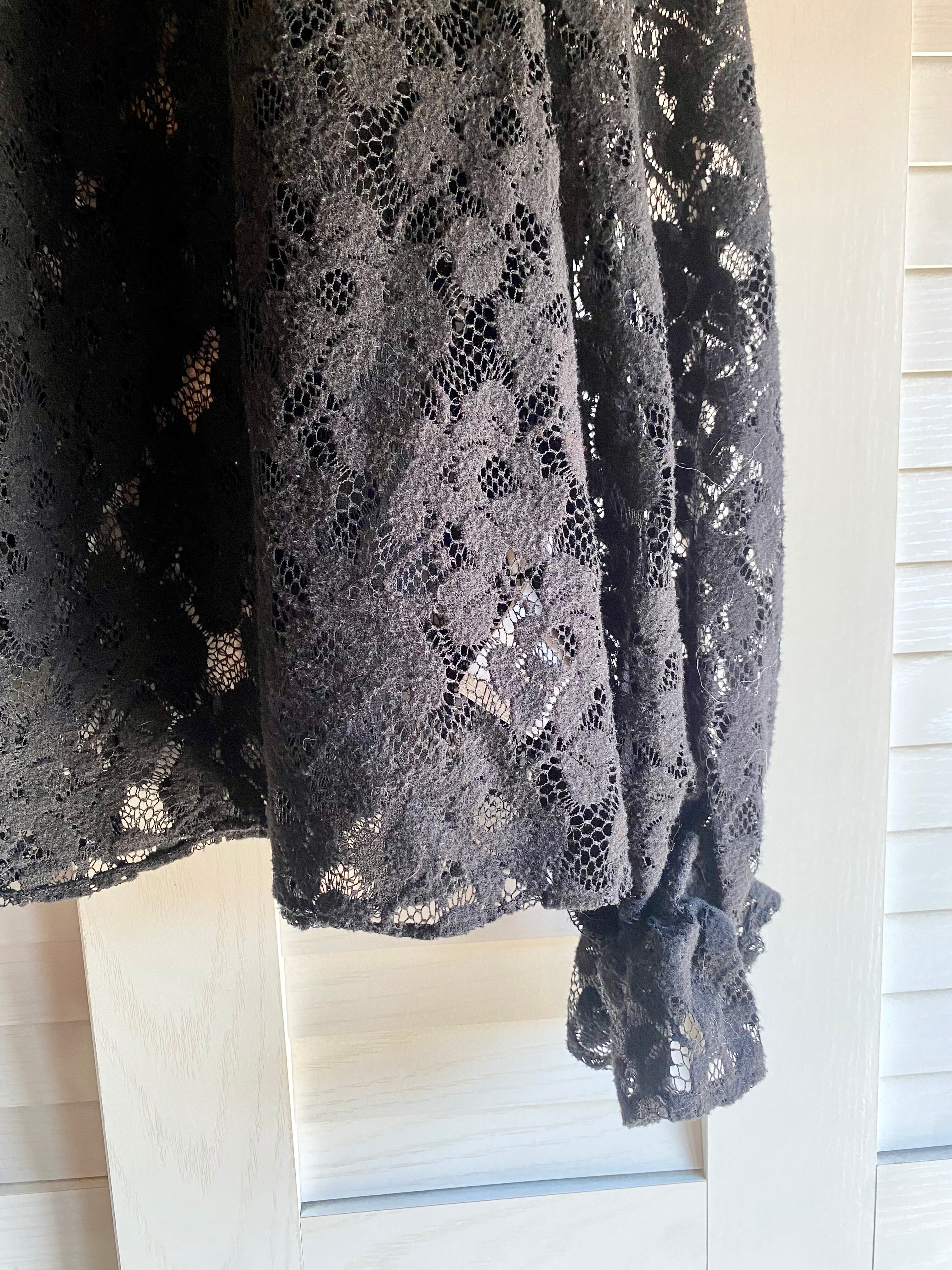 #57 Ray BEAMS 総レース ダブルフリルカラーのボリュームスリーブブラウス ブラック