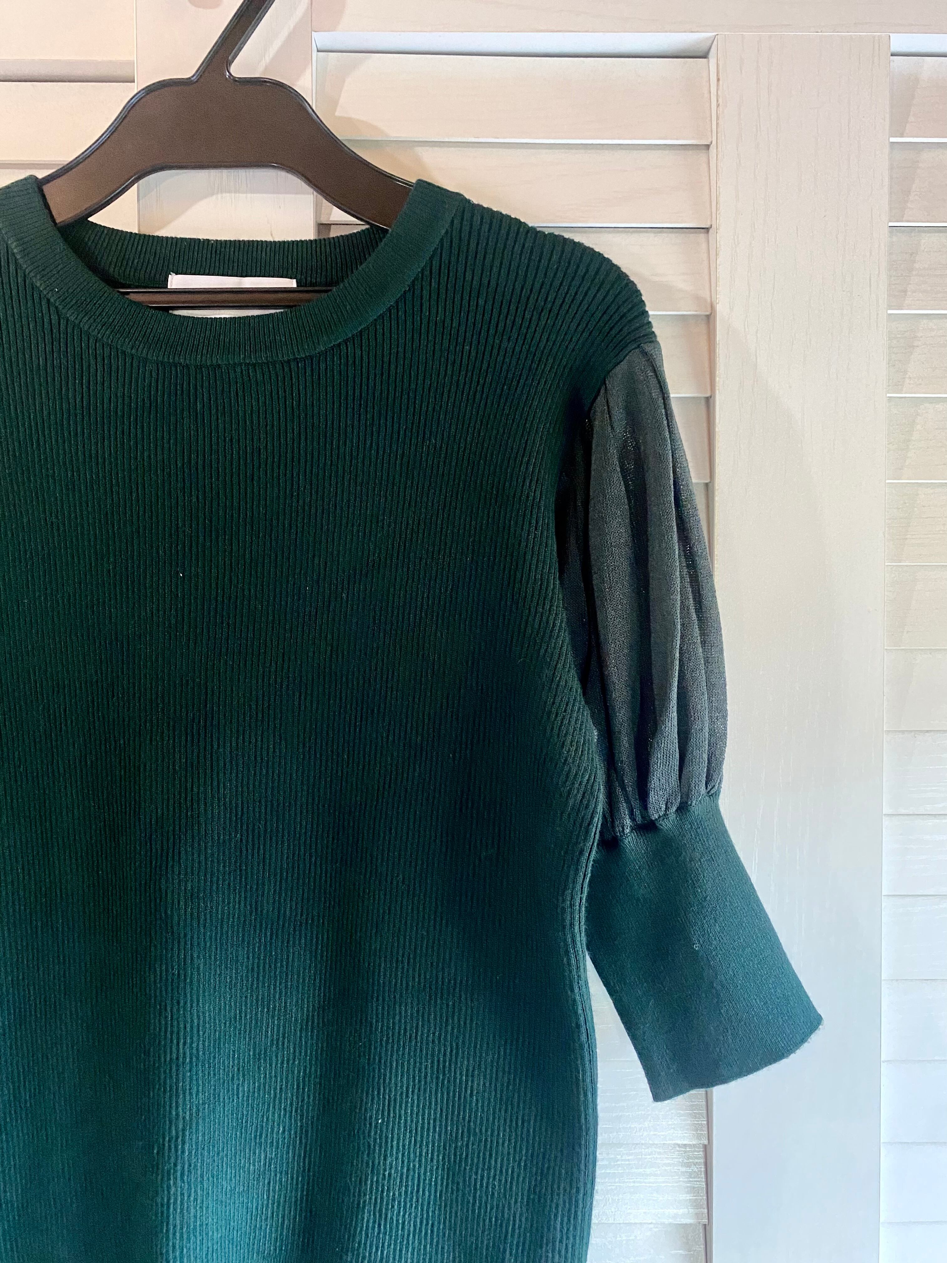 #58 AZUL BY MOUSSY 半袖パフスリーブ レーヨンニット グリーン | お洋服屋さん 『GOKKO』