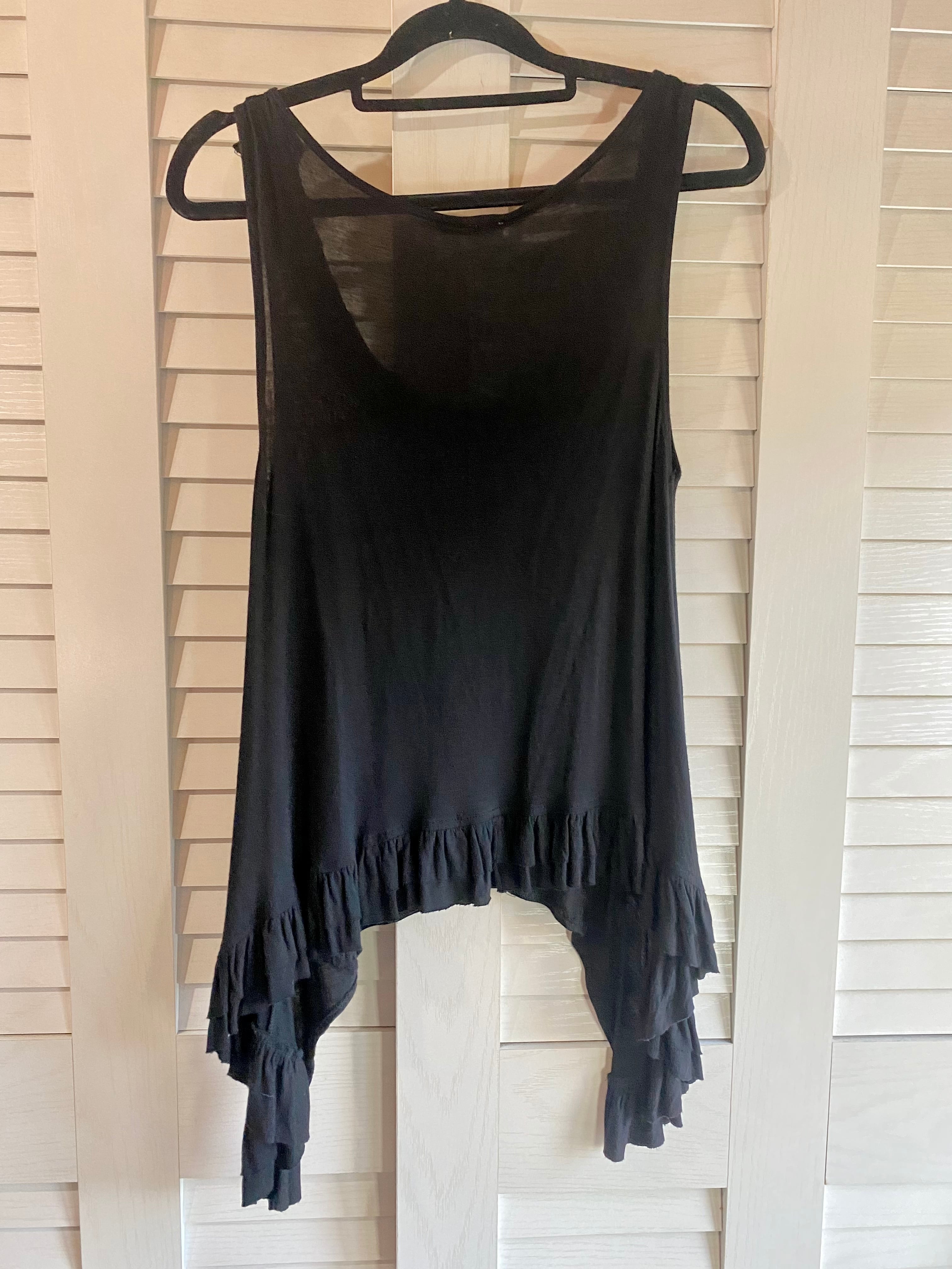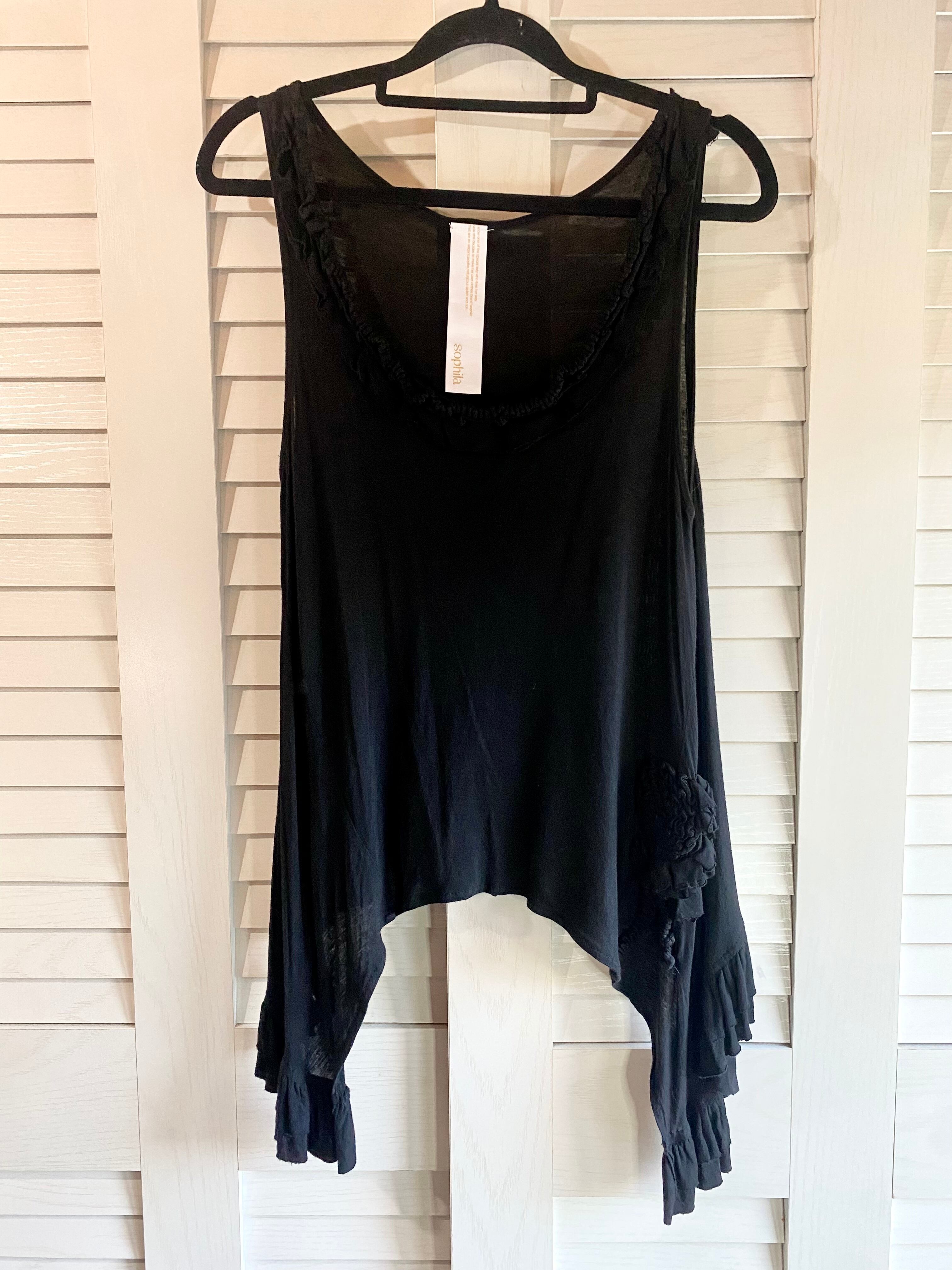 #58 sophila イレギュラーヘム スパゲッティデザイン モダールコットン ノースリーブカットソーブラウス ブラック