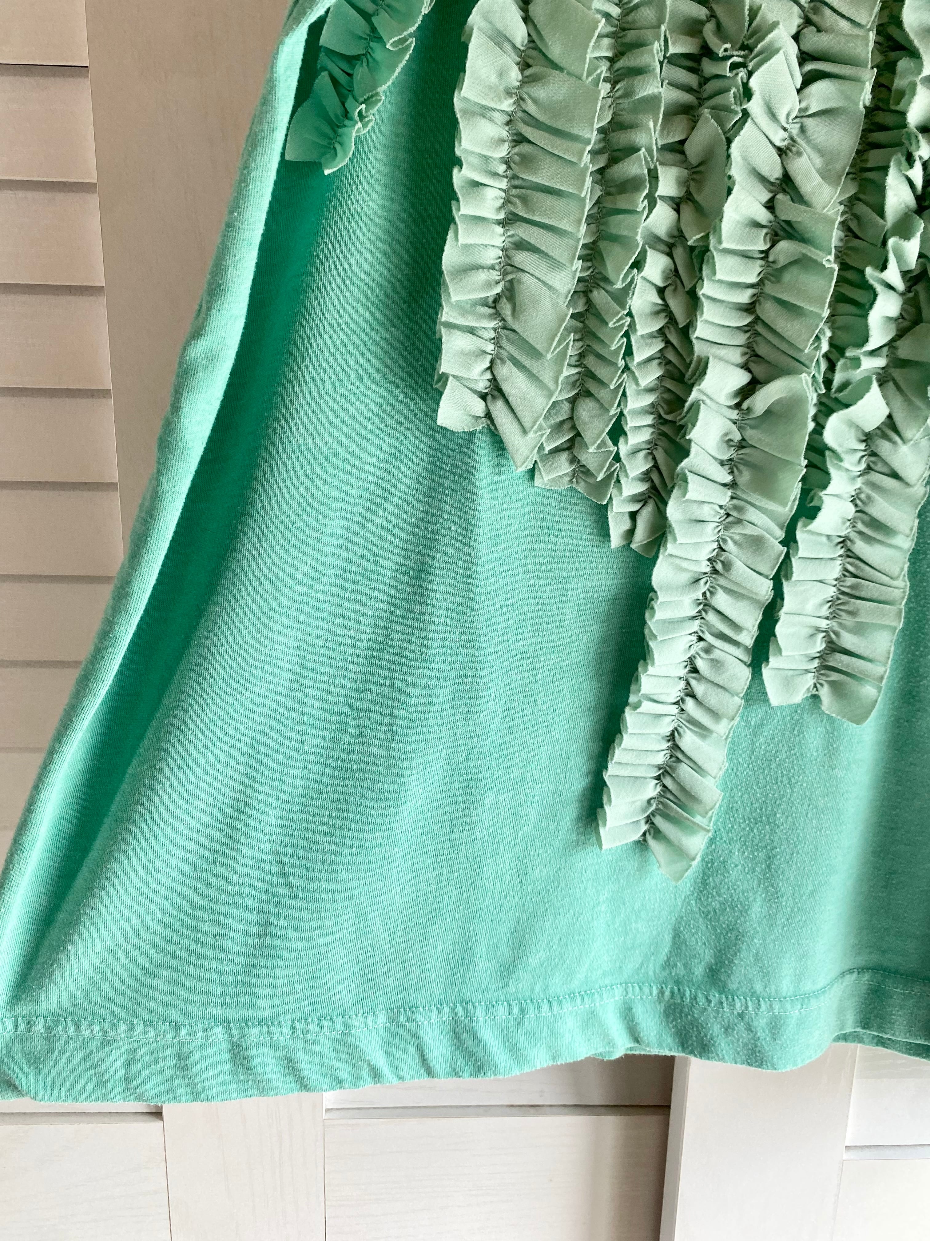 #59 n'OrLABEL カットオフギャザーフリル ノースリーブ フレアーニットソー エメラルドグリーン