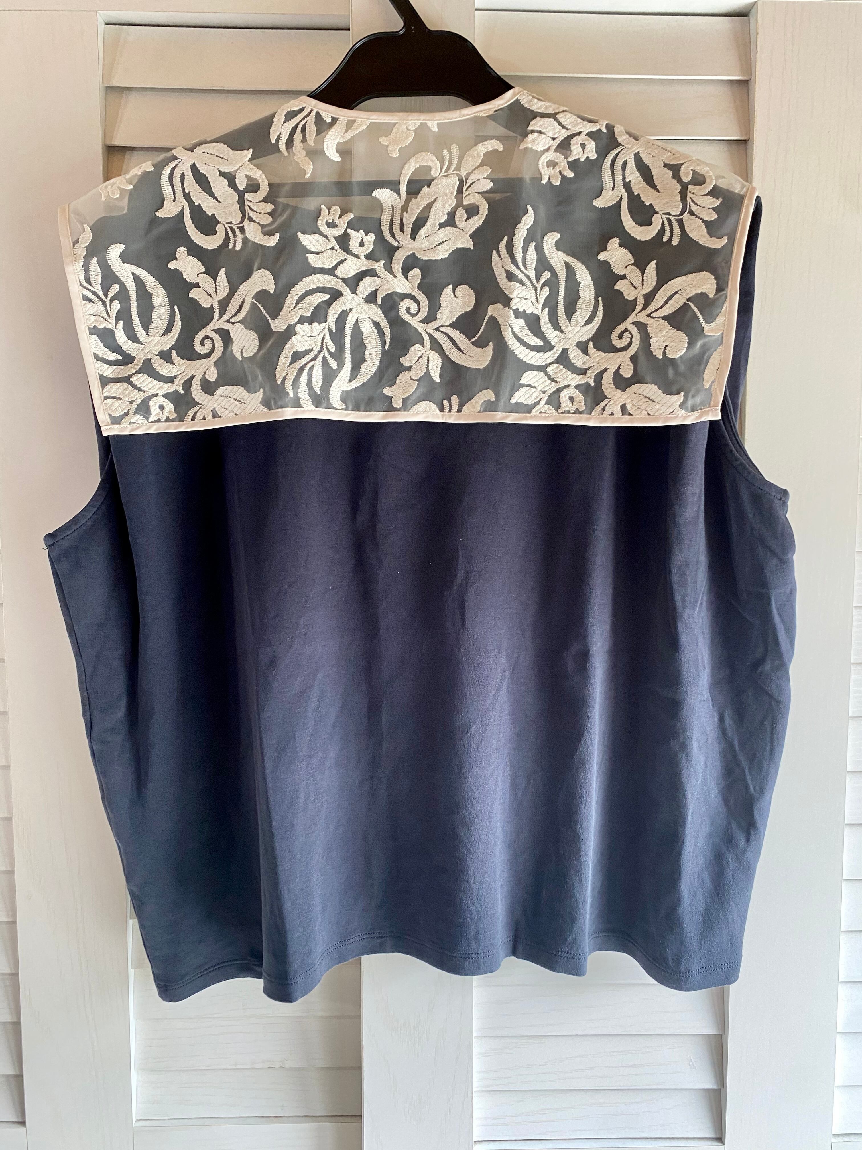 #59 アラベスク刺繍オーガン BIGカラー付き ノースリーブカットソー ネイビー×アンティークベージュ