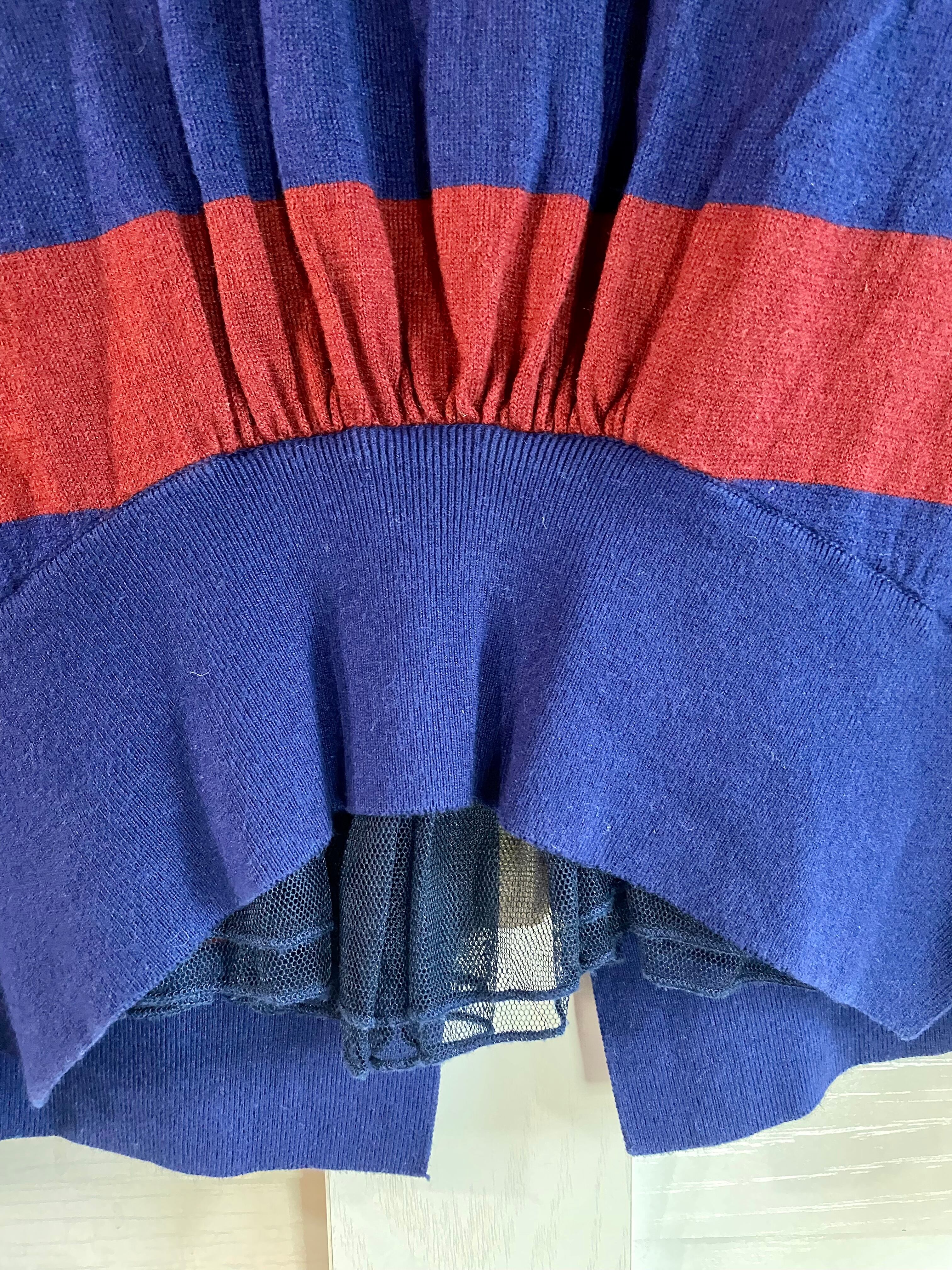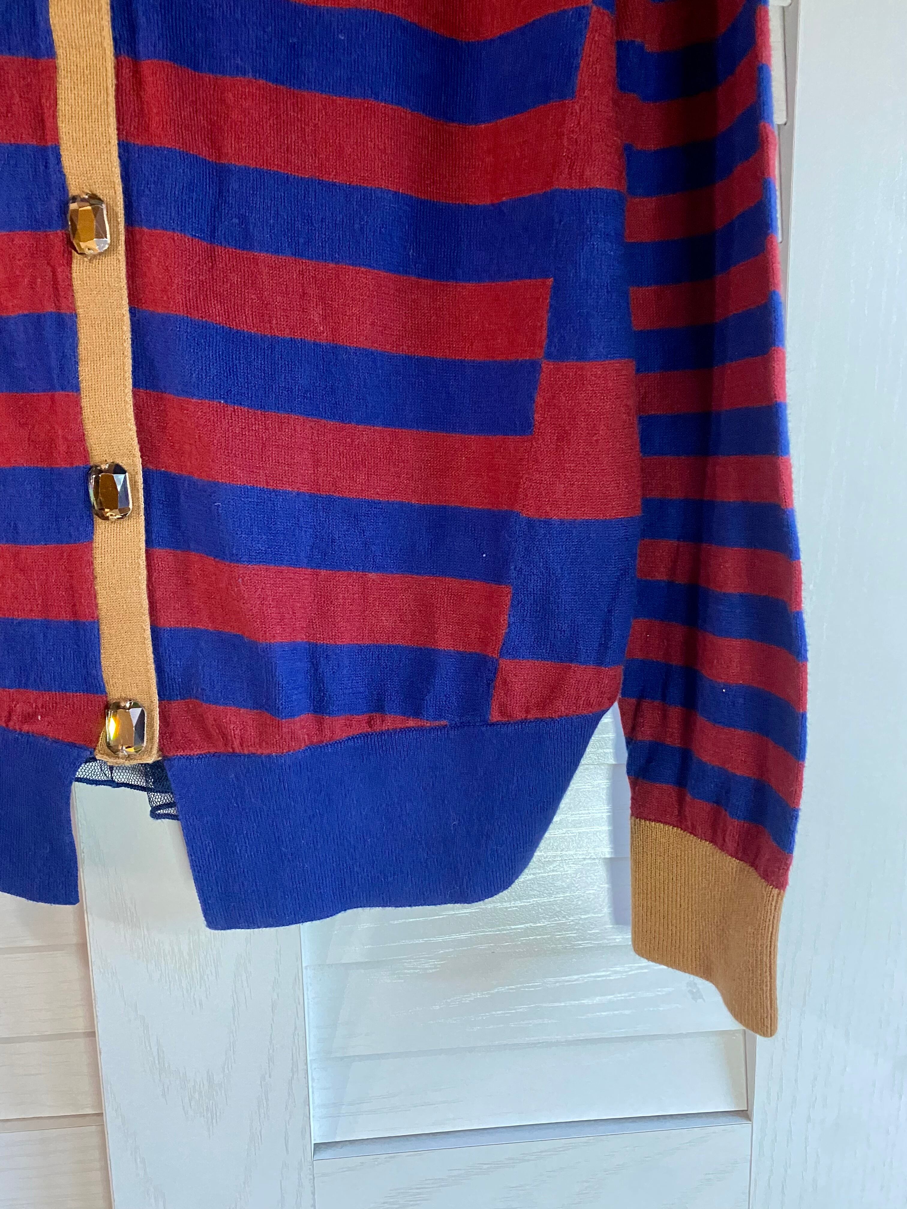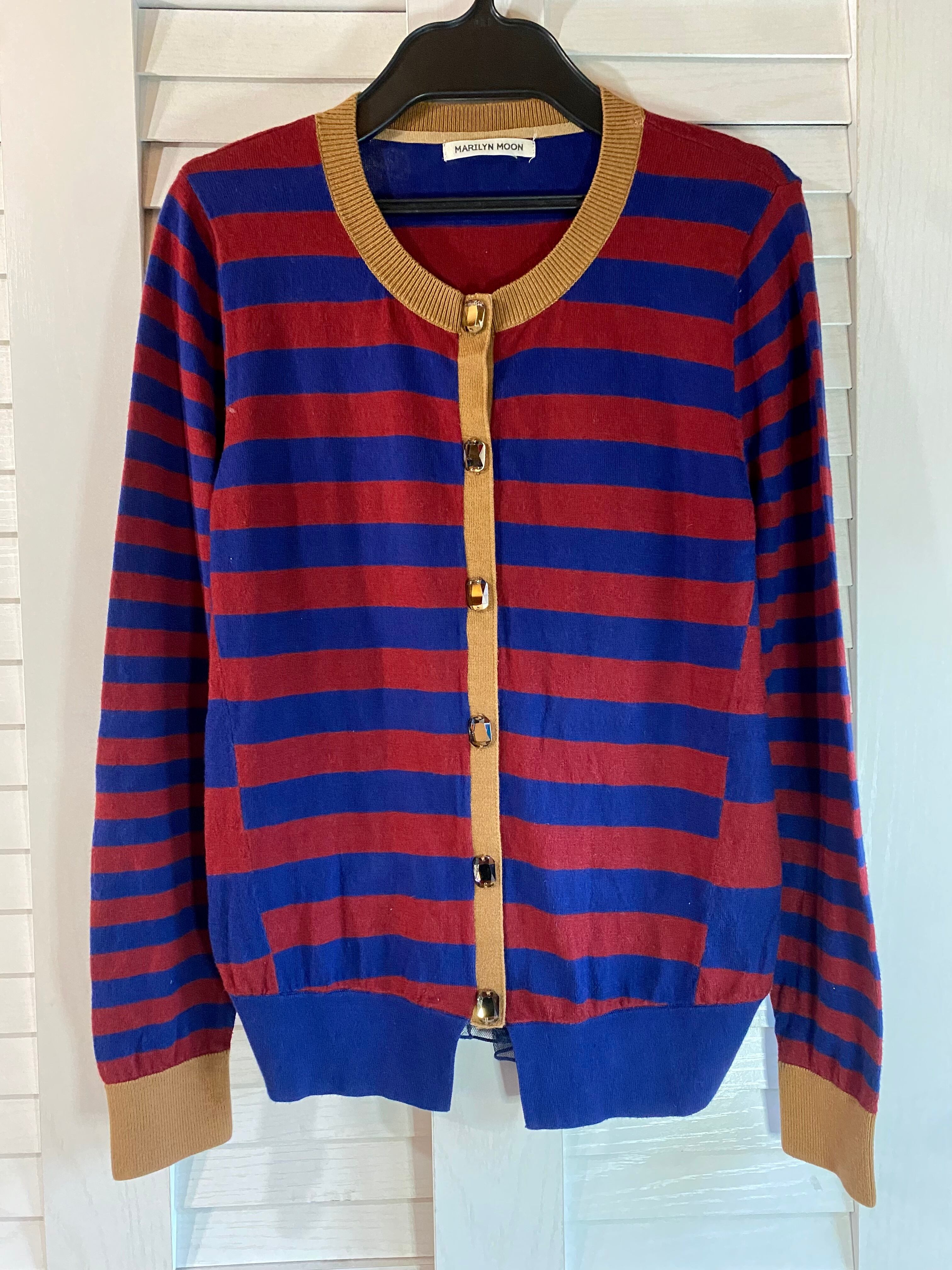 #60 MARIYLYN MOON ビジューボタン コットンシルクウール ボーダーニットソーカーデ ネイビー×レッド