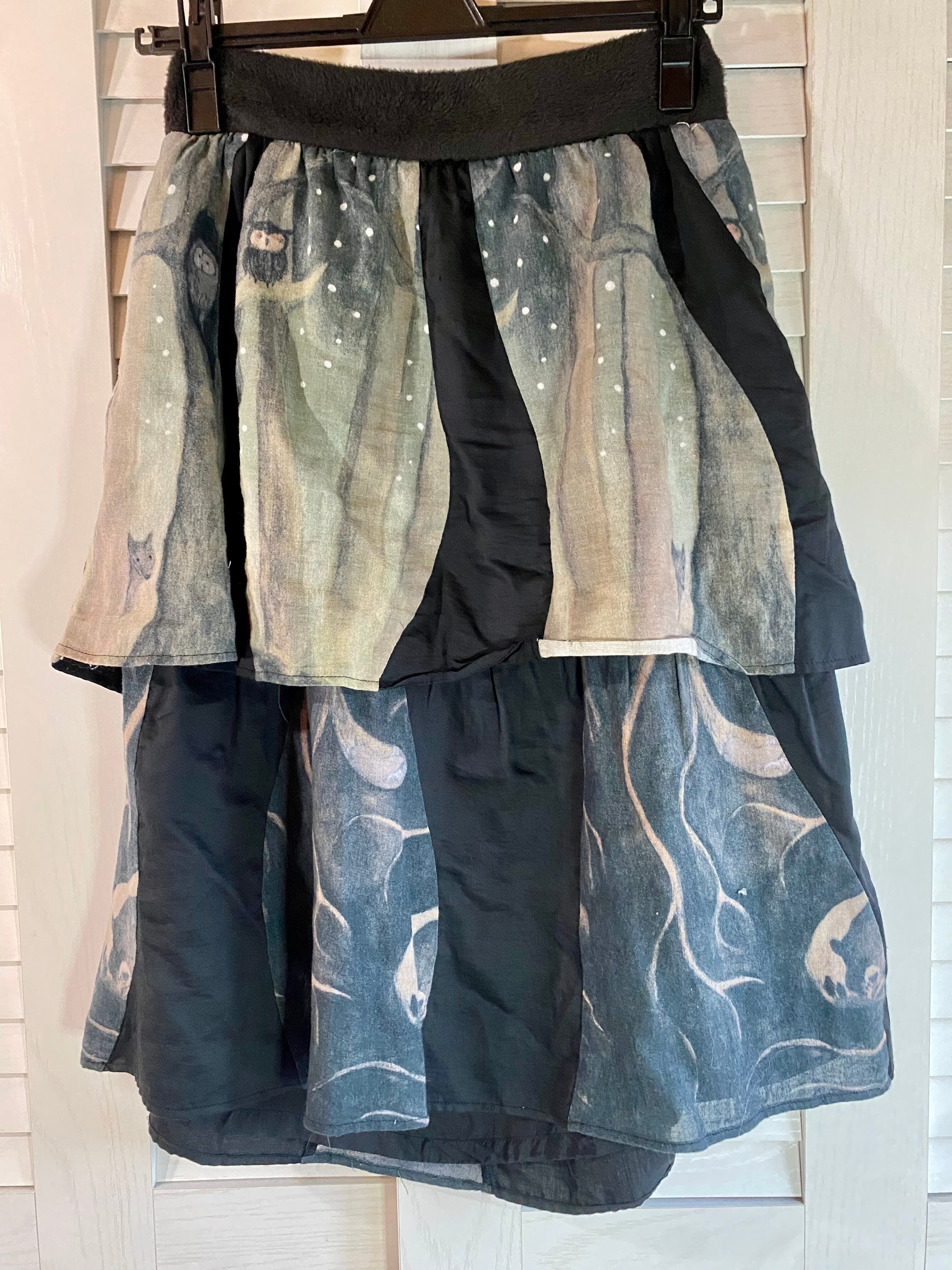 O様専用◎#60 FRAPBOIS 夜のフクロウの森 ティアードオーバースカート チャコールグレー