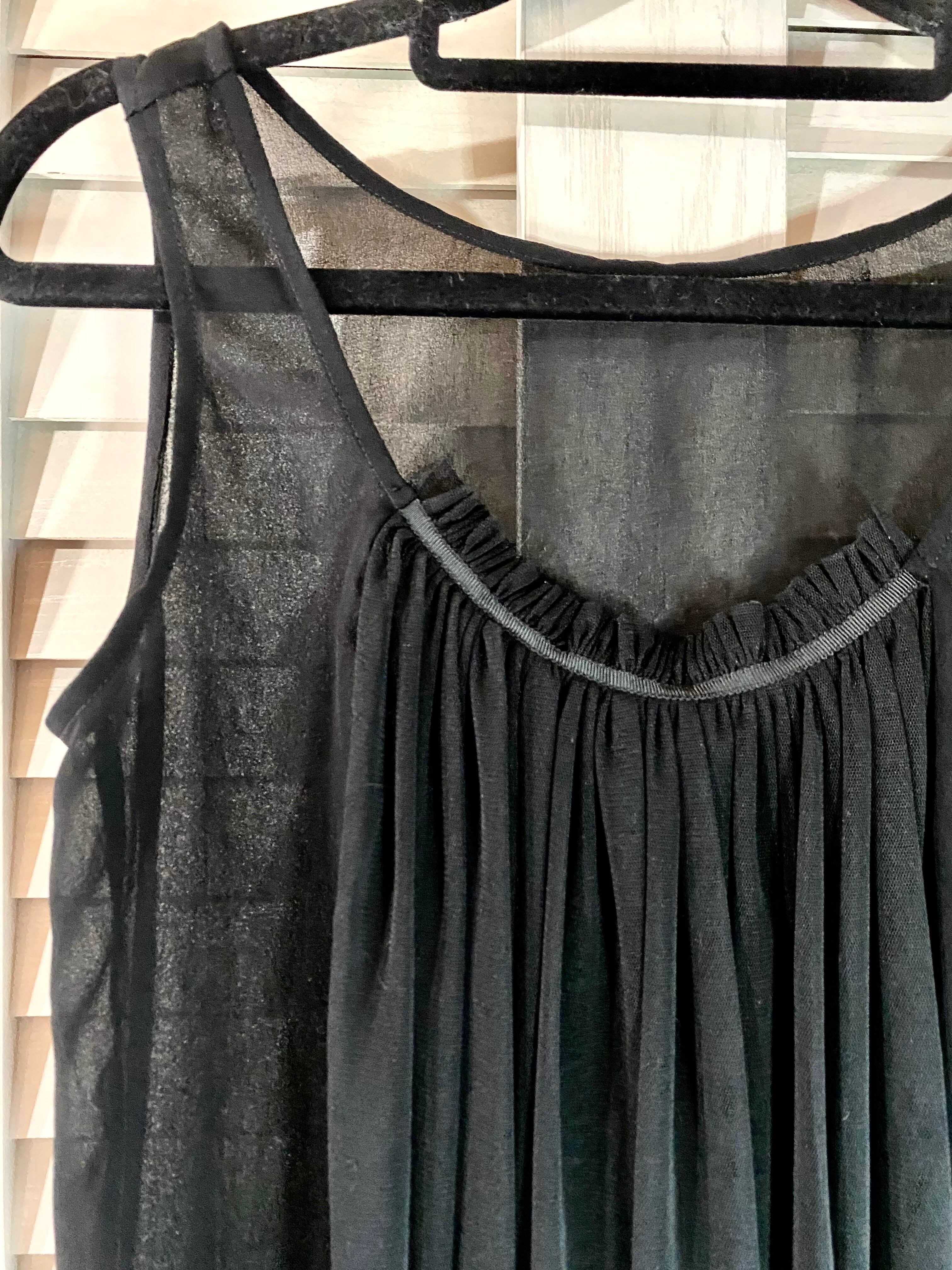 #60 martinique センターギャザー シフォンノースリーブブラウス ブラック