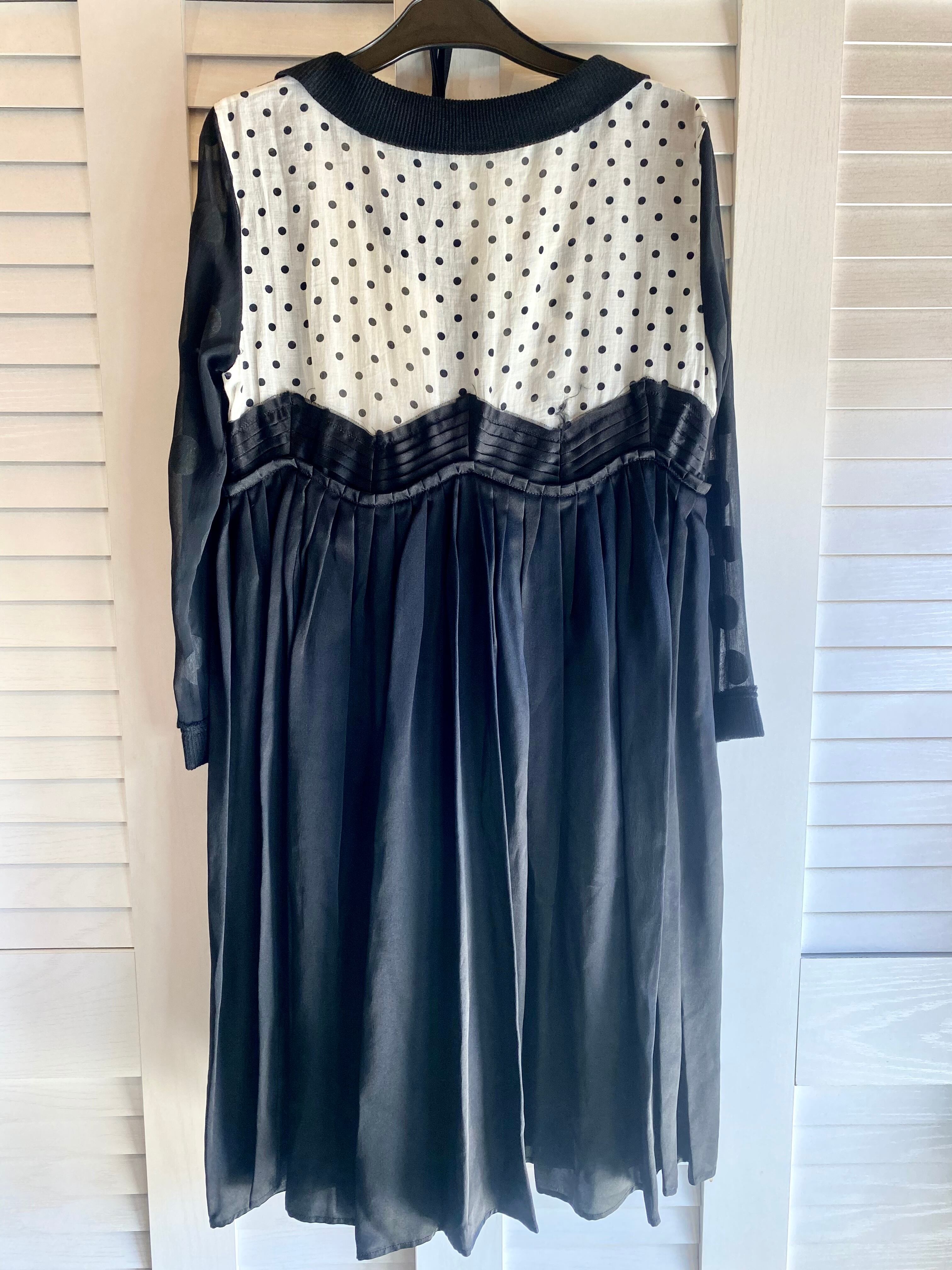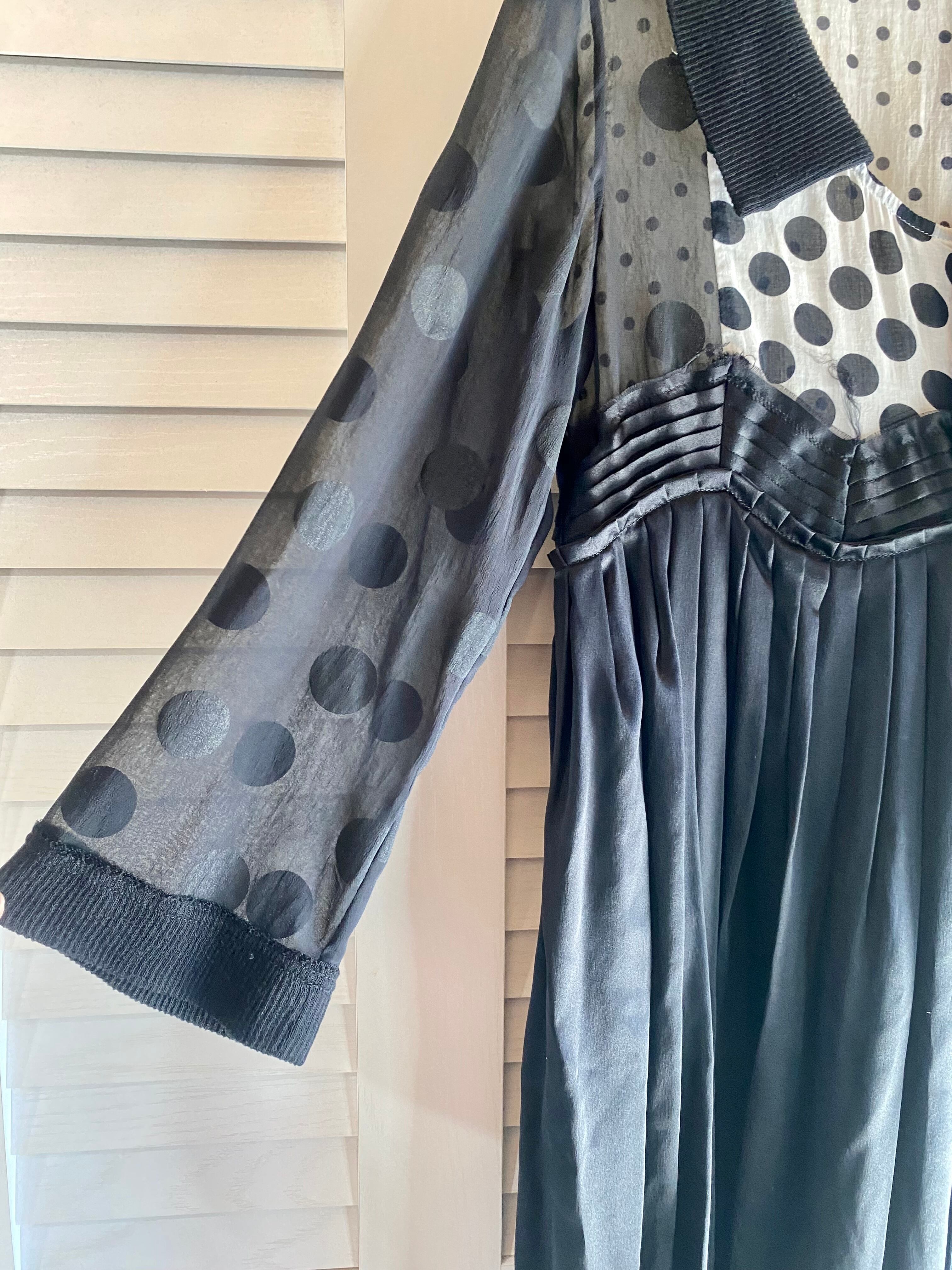 #61 SNAOKUWAHARA ドット&シフォン 異素材パッチワークワンピ ブラック