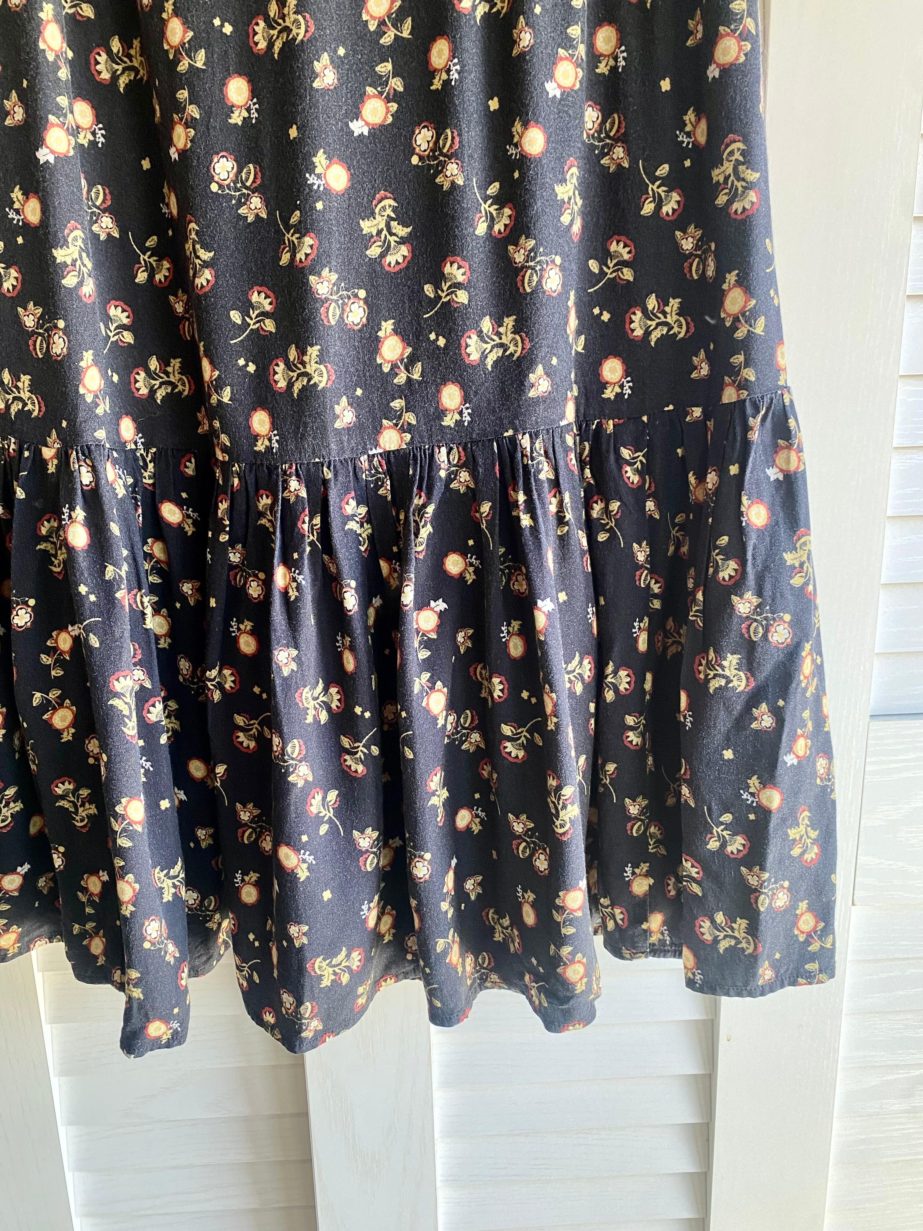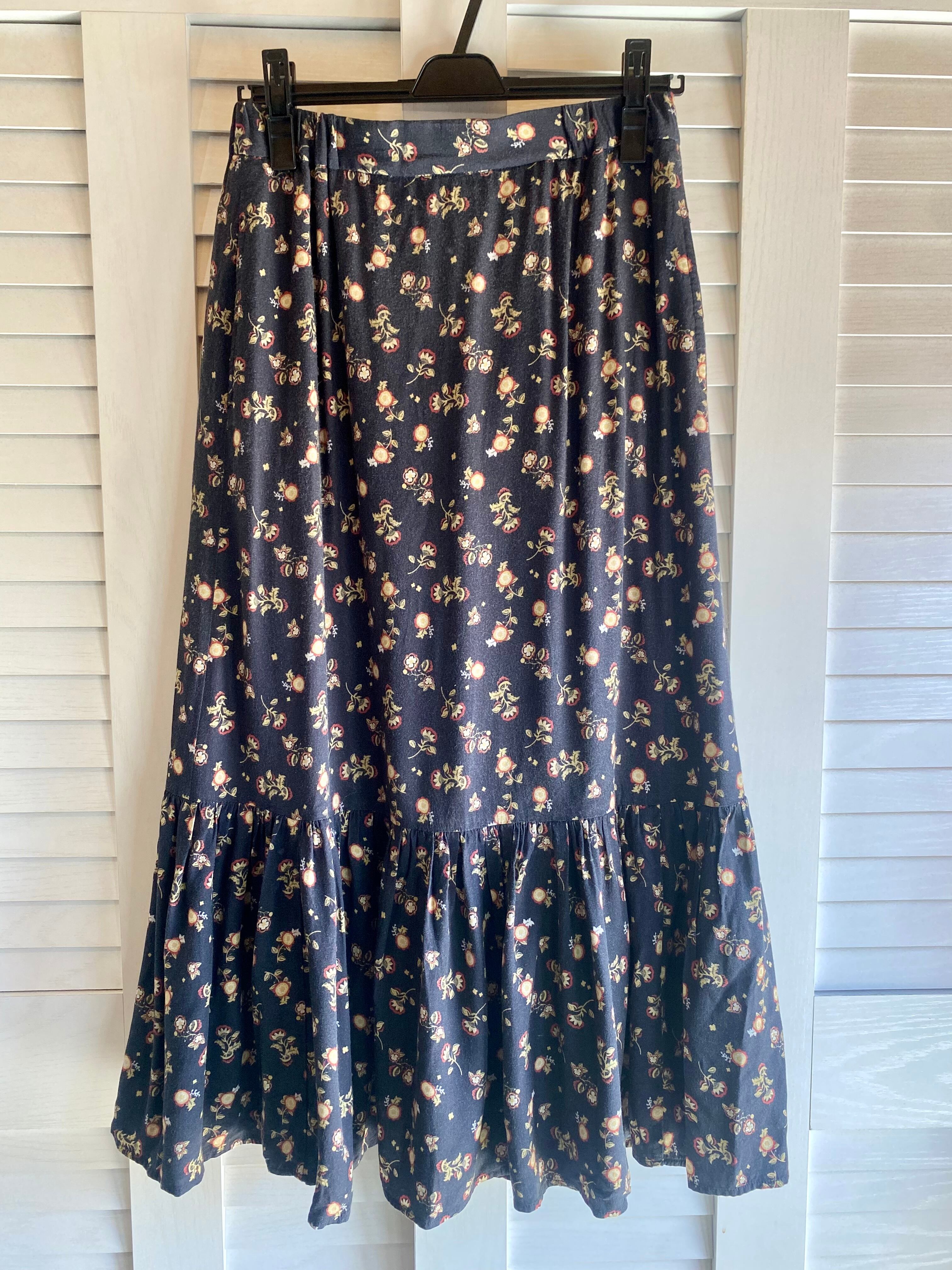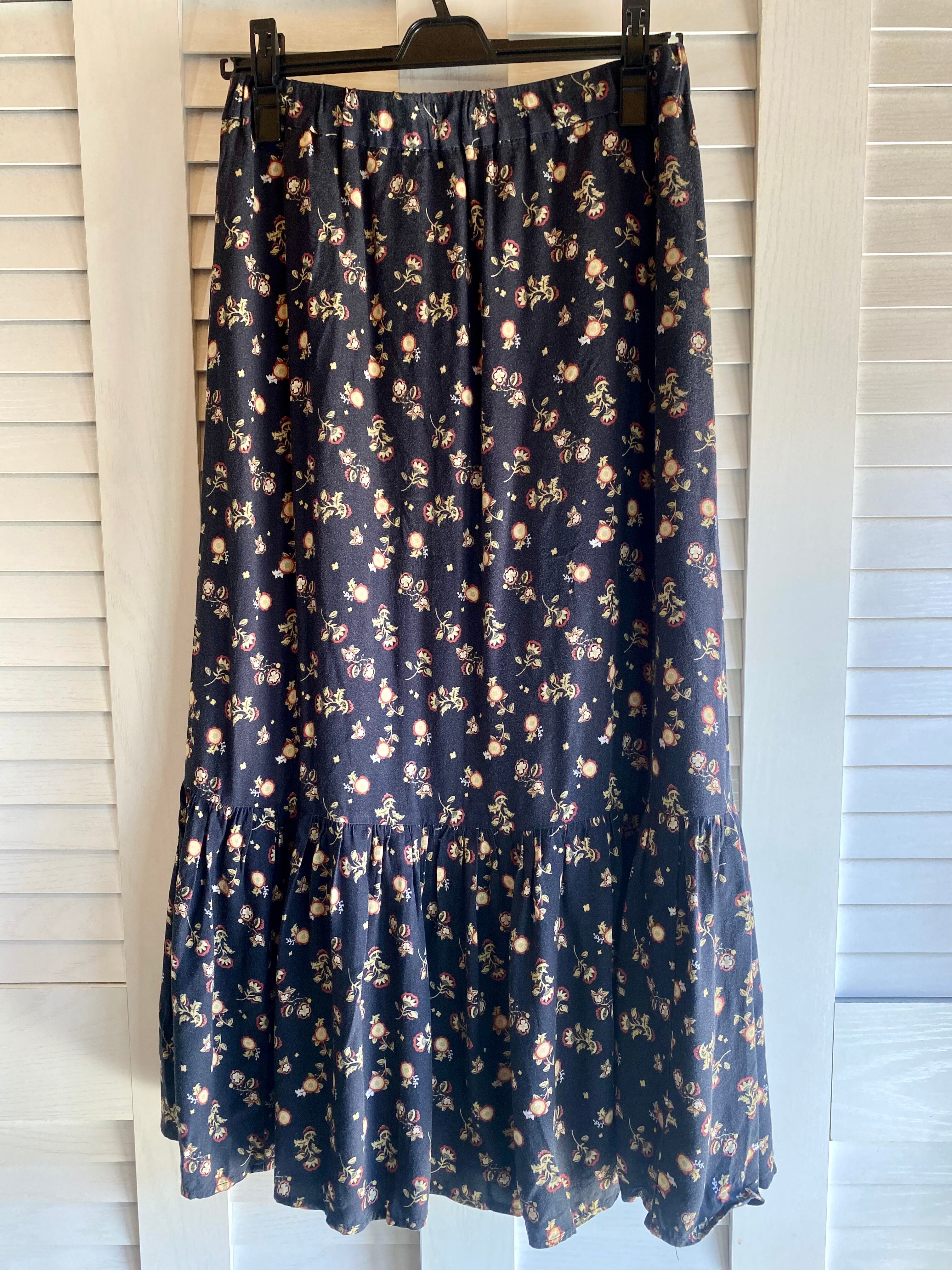 #61 SHIPS オリエンタルフラワープリント レーヨンティアードスカート スミクロ