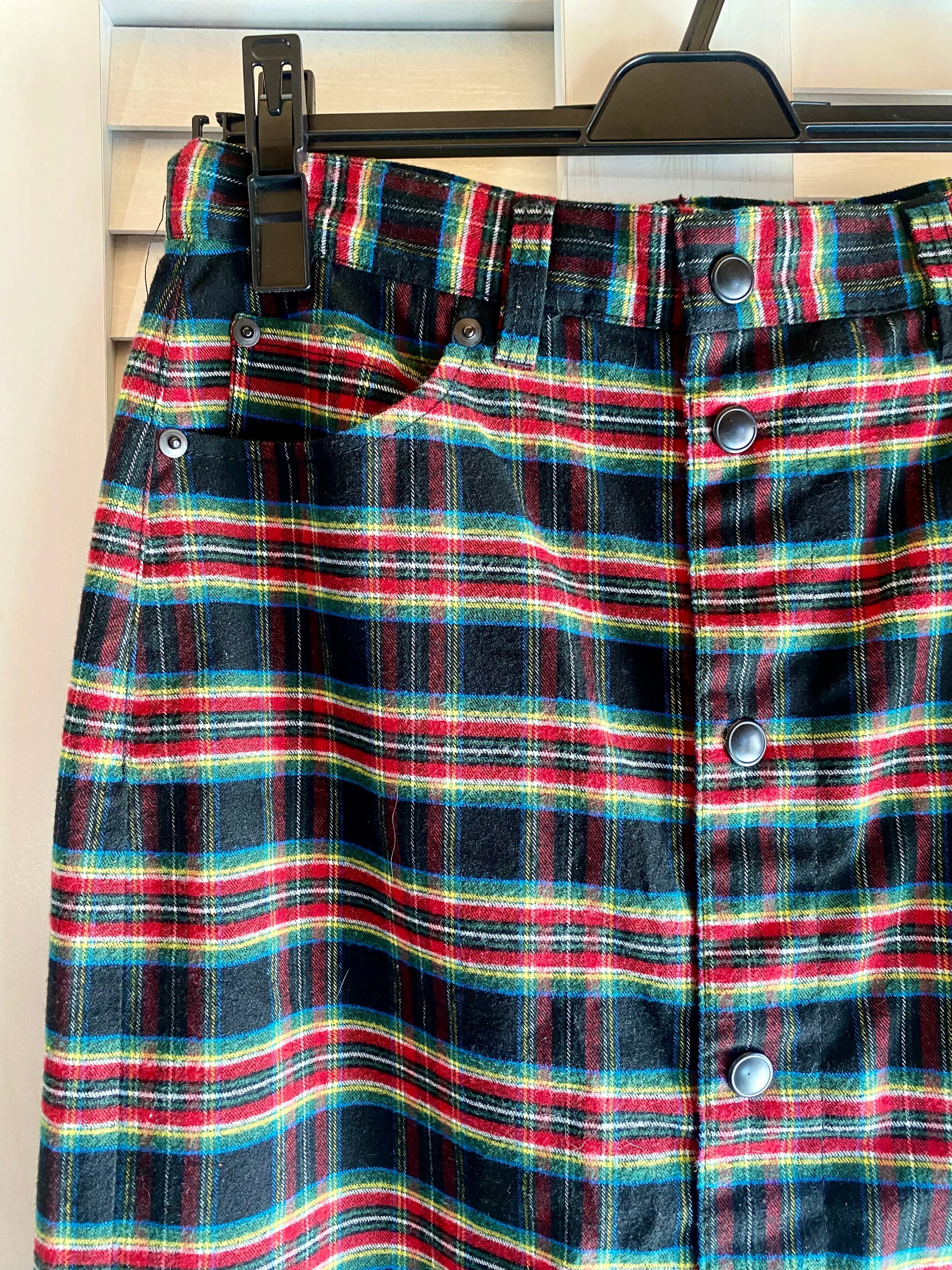 #61 X-girl ネルシャツ風タータンチェック ロングスカート ブラック