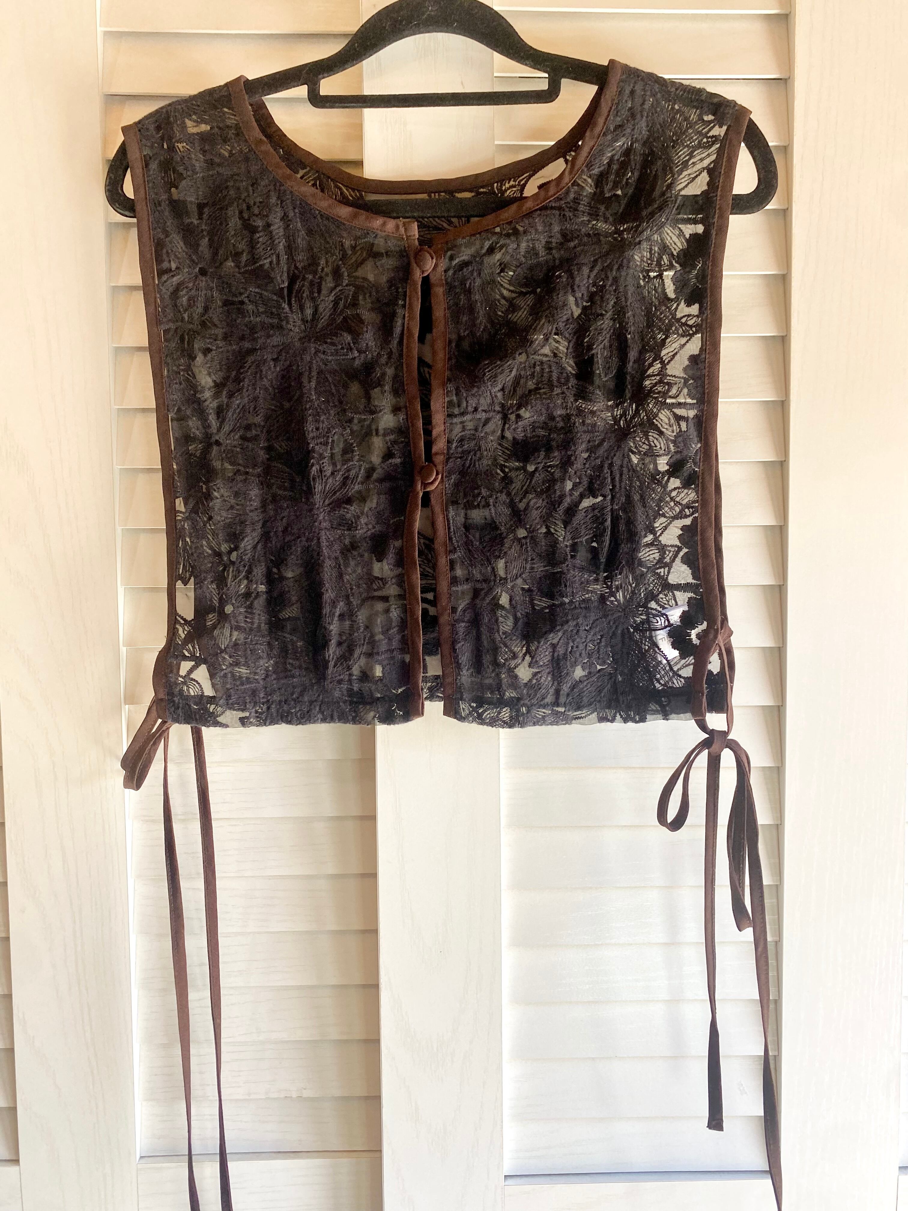 #61 Gleam フラワー刺繍オーガン ショート丈ベスト ブラック×ブラウン | お洋服屋さん 『GOKKO』