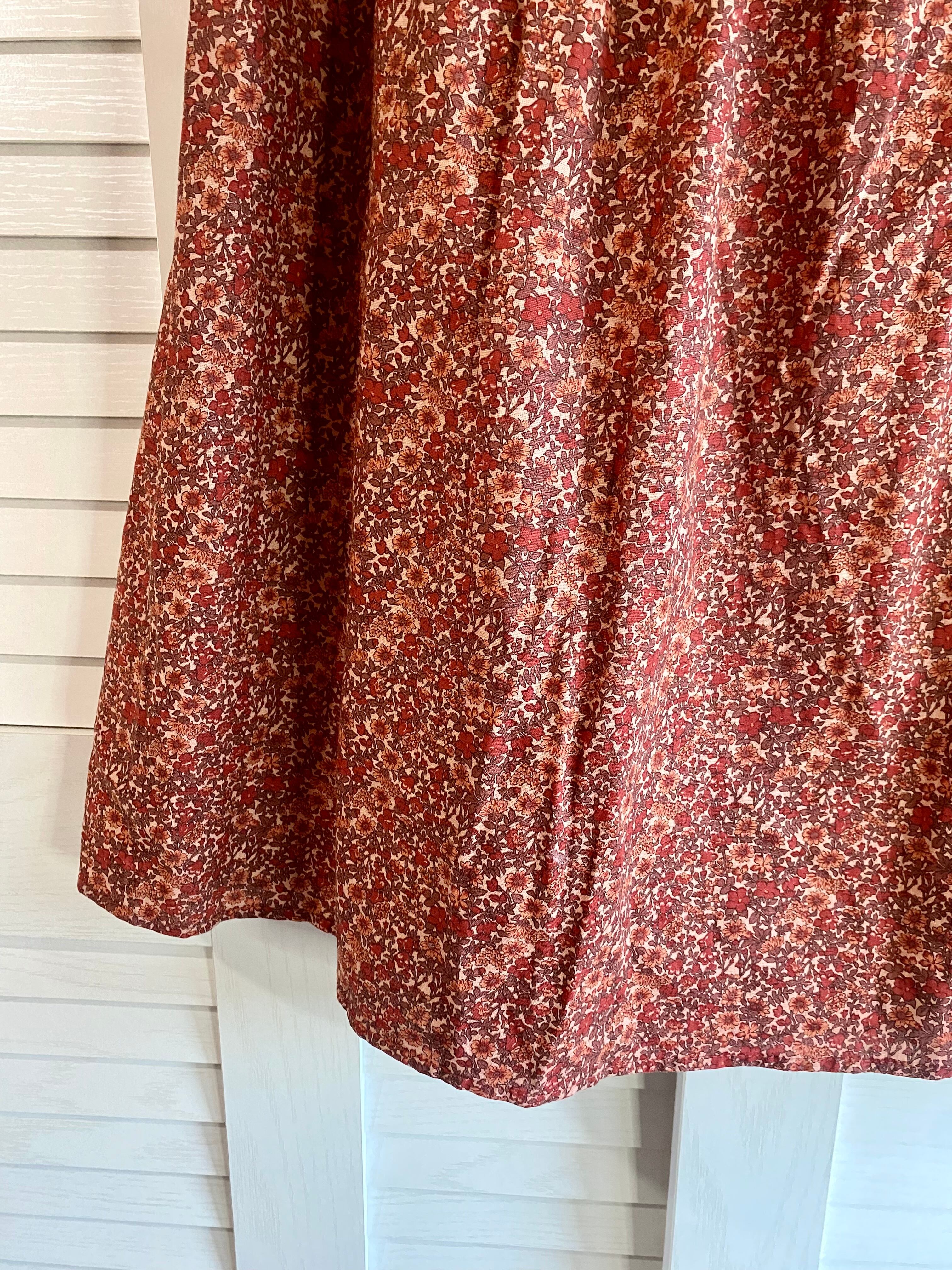#62 Samansa mos2 レトロ小花柄 コットンリネン ボリュームスカート レッド | お洋服屋さん 『GOKKO』