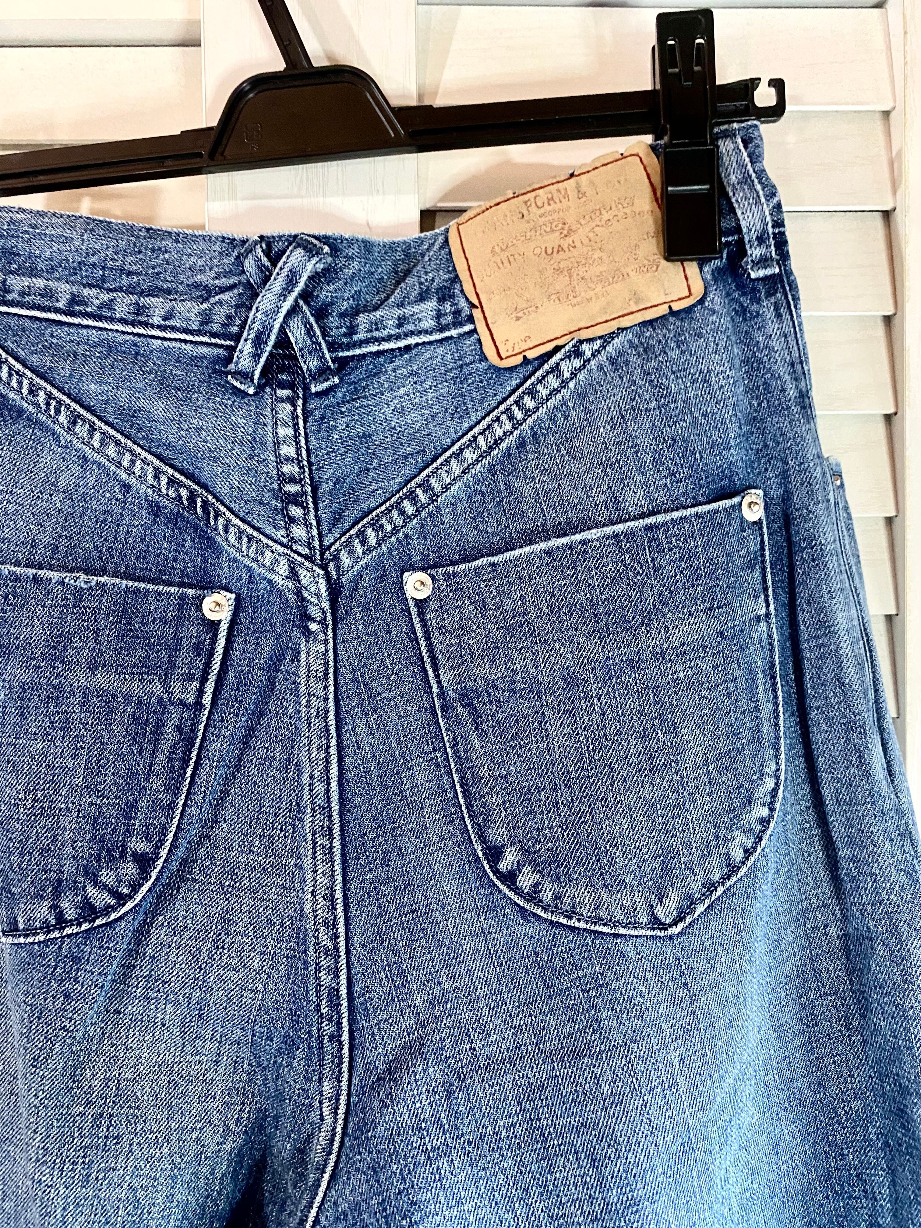 #62 USED加工 タックワイド バギーワイドジーンズ ブルー