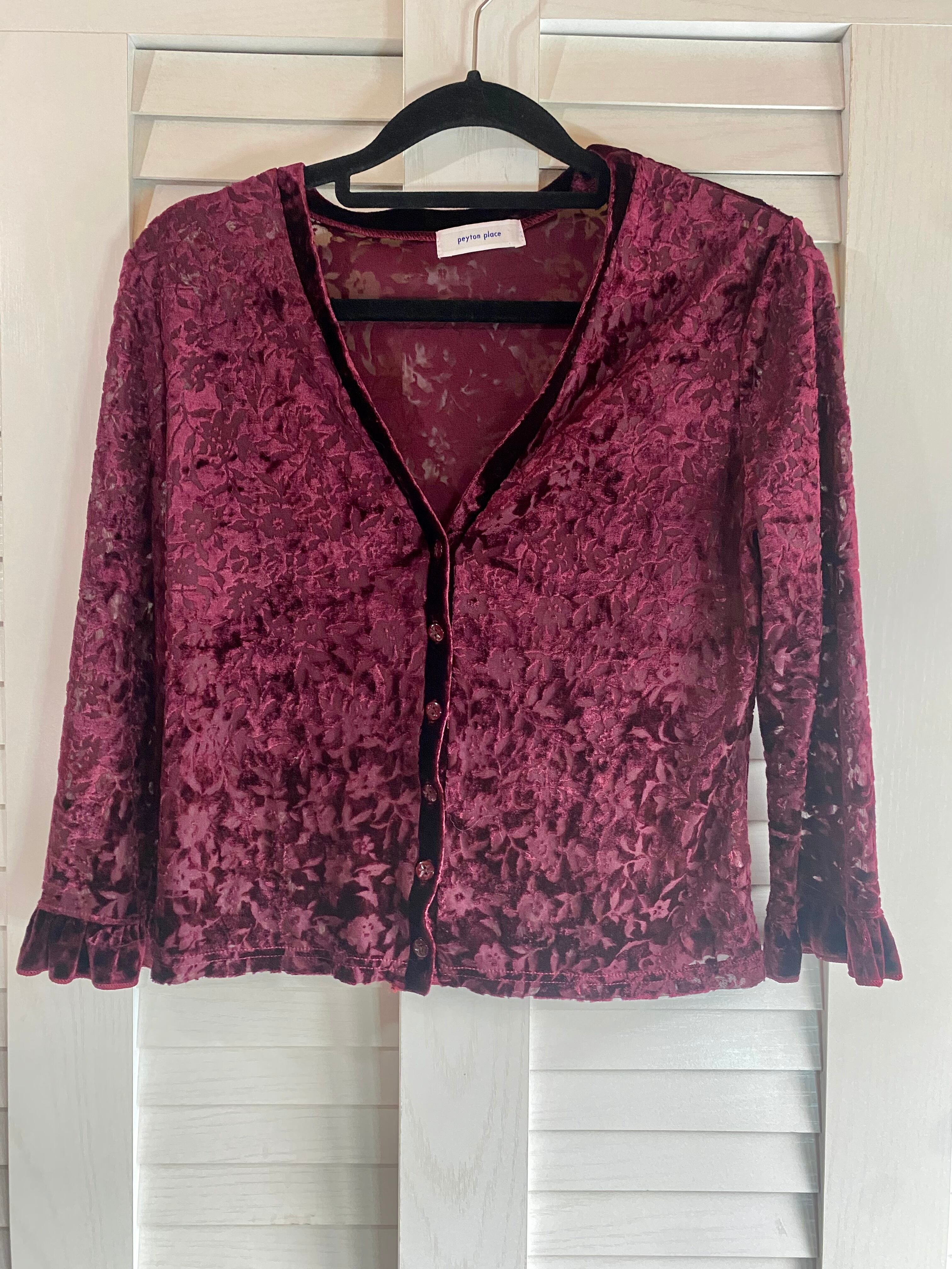 #63 peyton place 透かしベロア ショート丈カーデ エンジ
