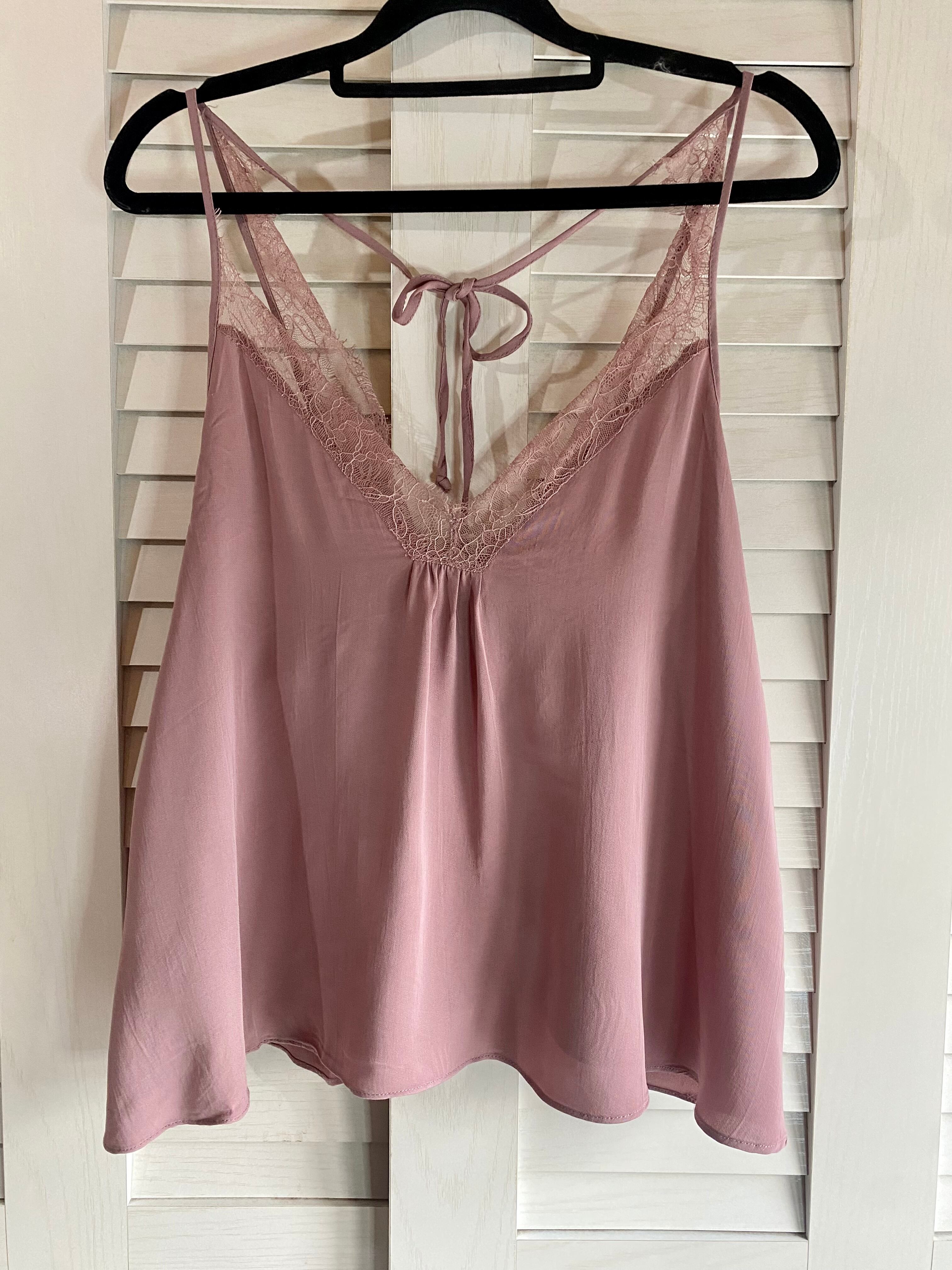 #63 ZARA クラシカルレース レーヨンジョーゼット キャミソールブラウス モーブピンク