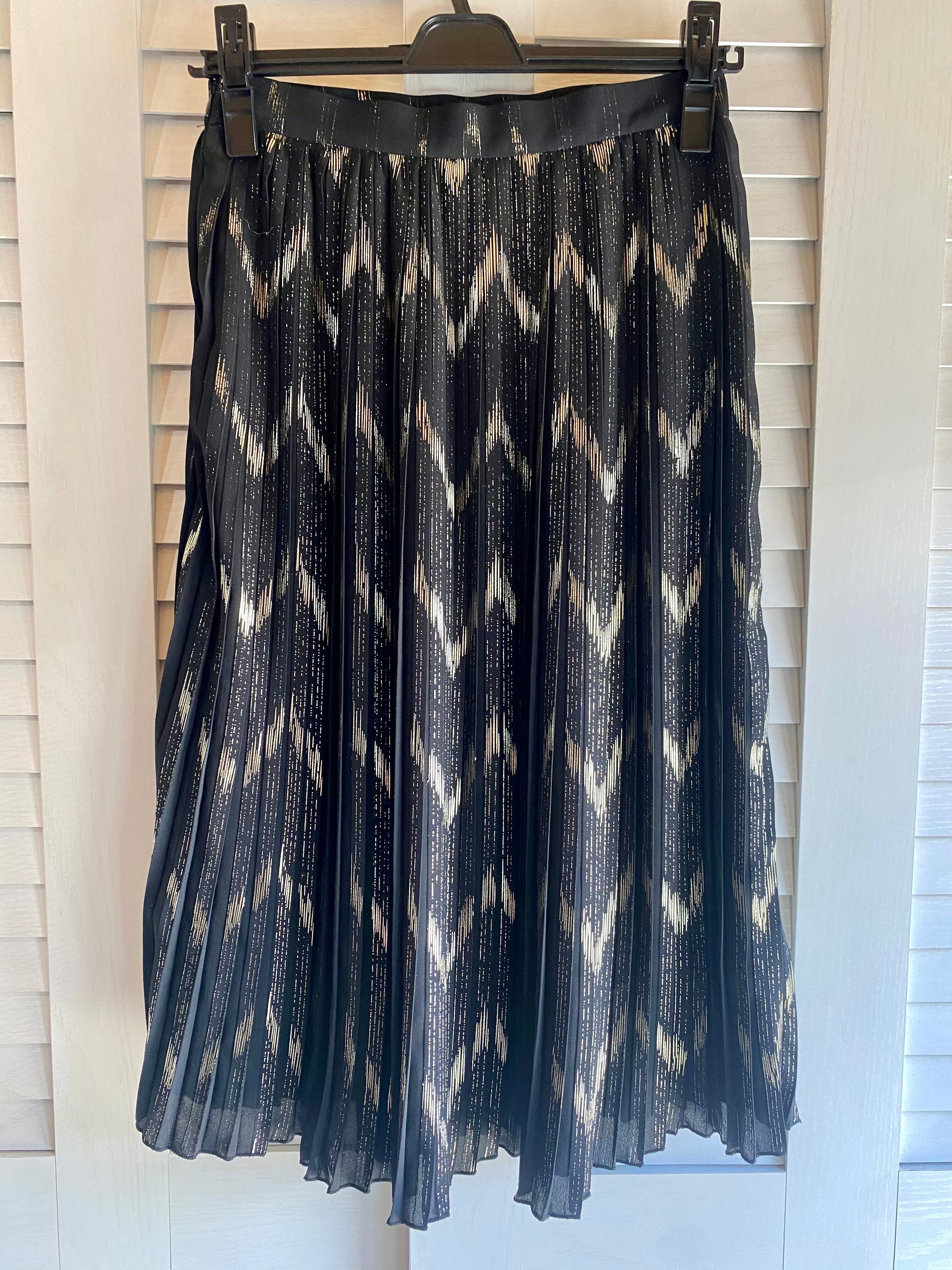 #64 SENSE OF PLACE ゴールド箔プリント ジョーゼットプリーツスカート ブラック