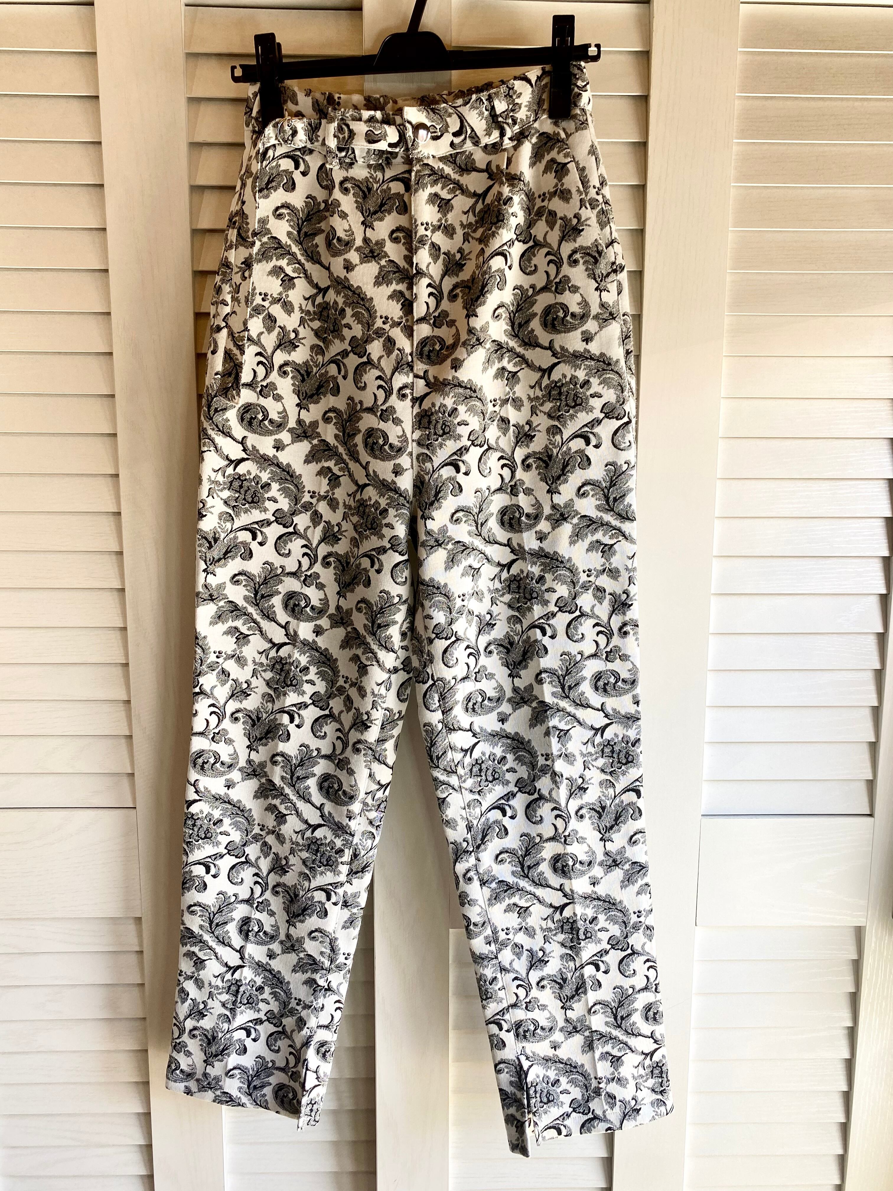 #64 kastane アラベスクジャガード ワンタックテーパードストレッチパンツ ライトグレー
