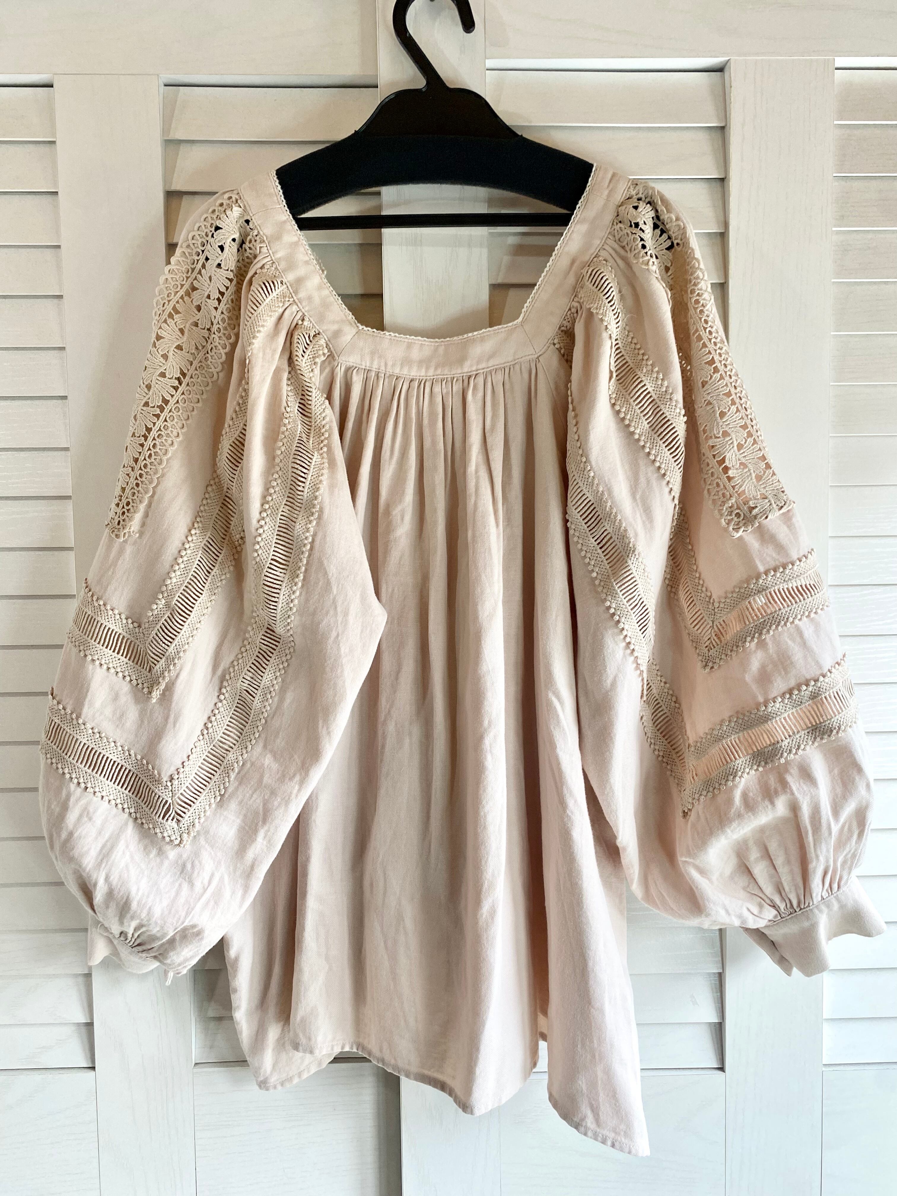 #65 mystic ナチュラルコットン ボリュームスリーブ レースシャツブルゾン ライトベージュ