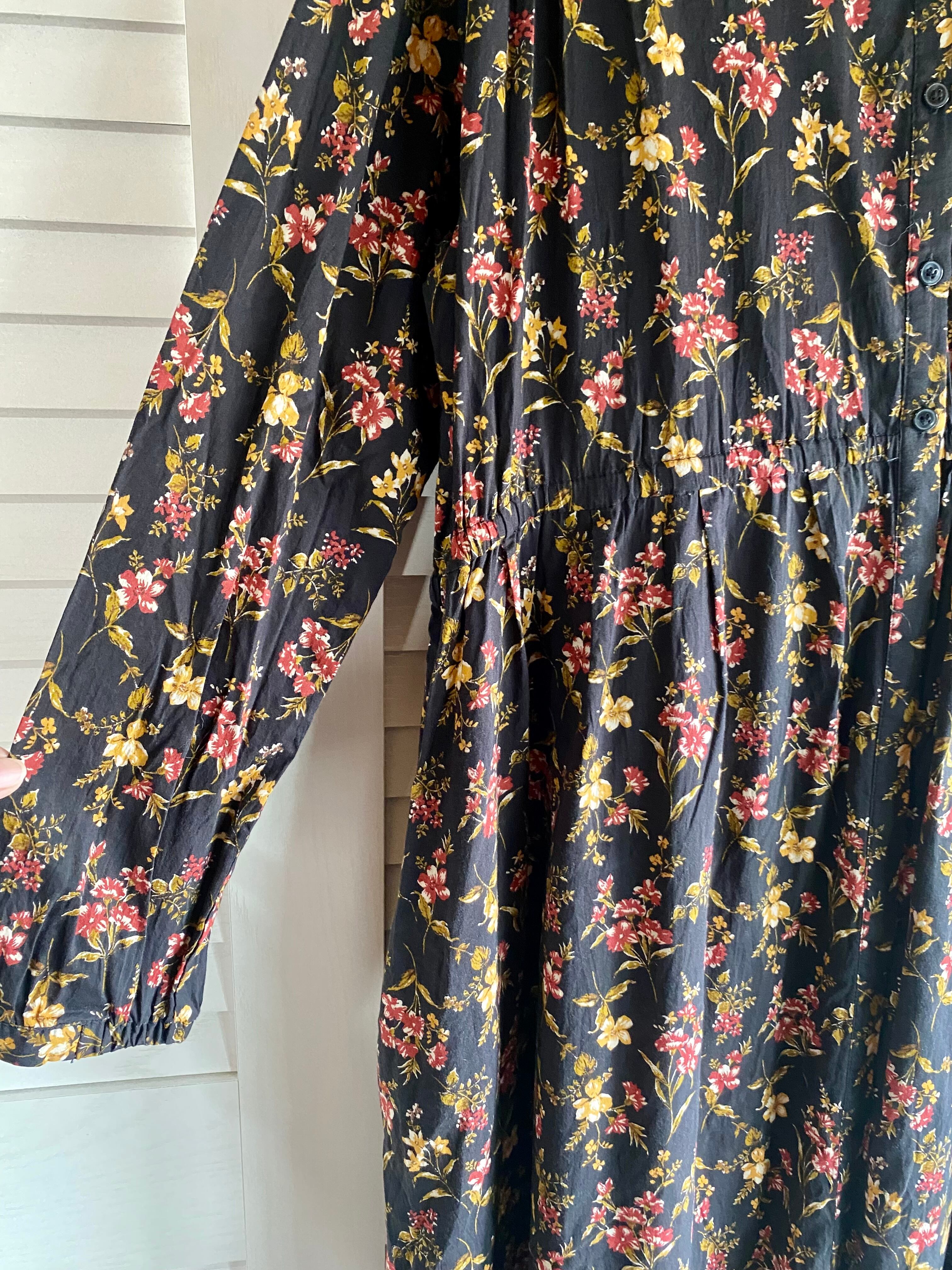 #65 studio CLIP フラワープリント コットンレーヨン オーバーサイズワンピ ブラック