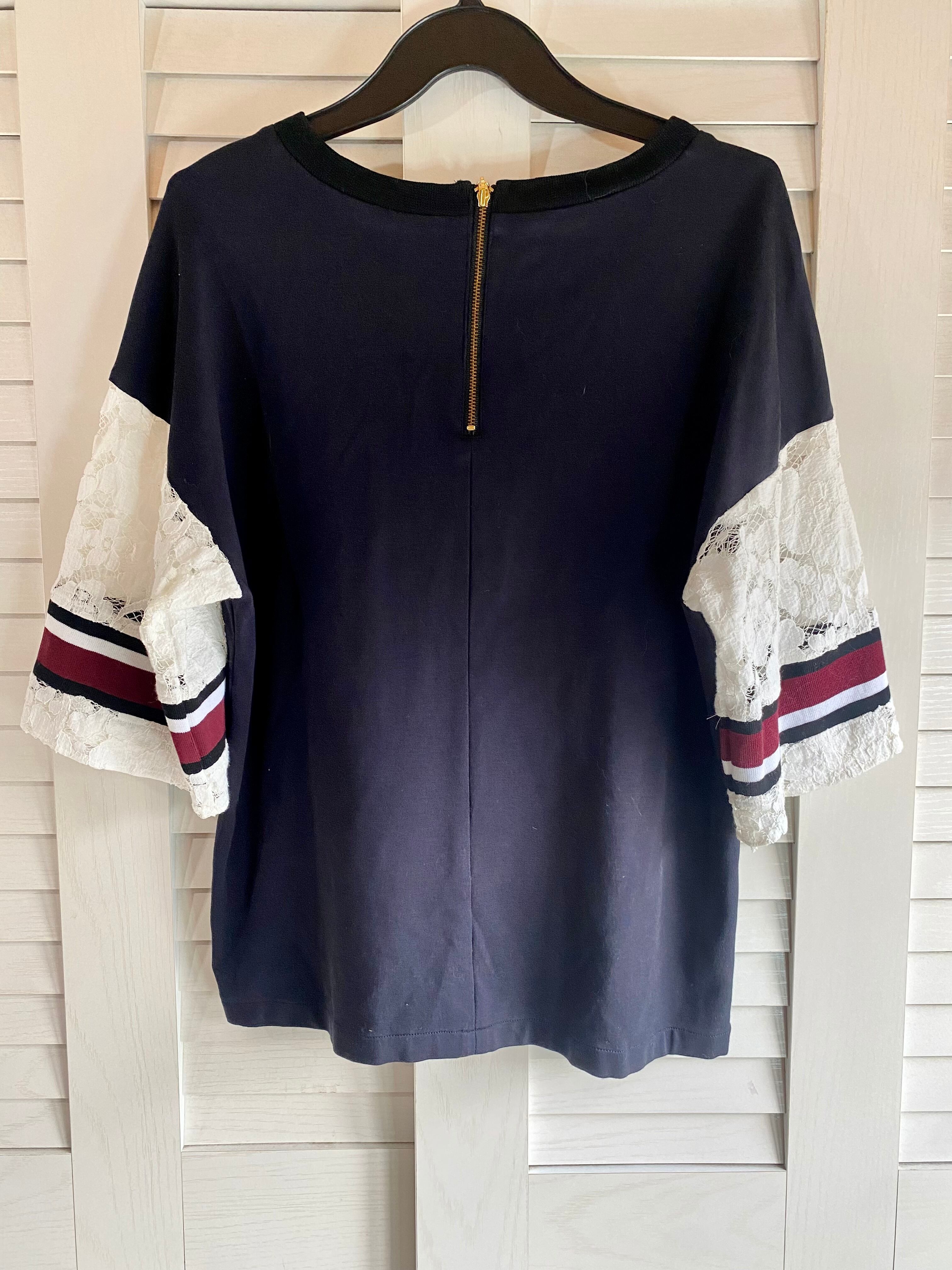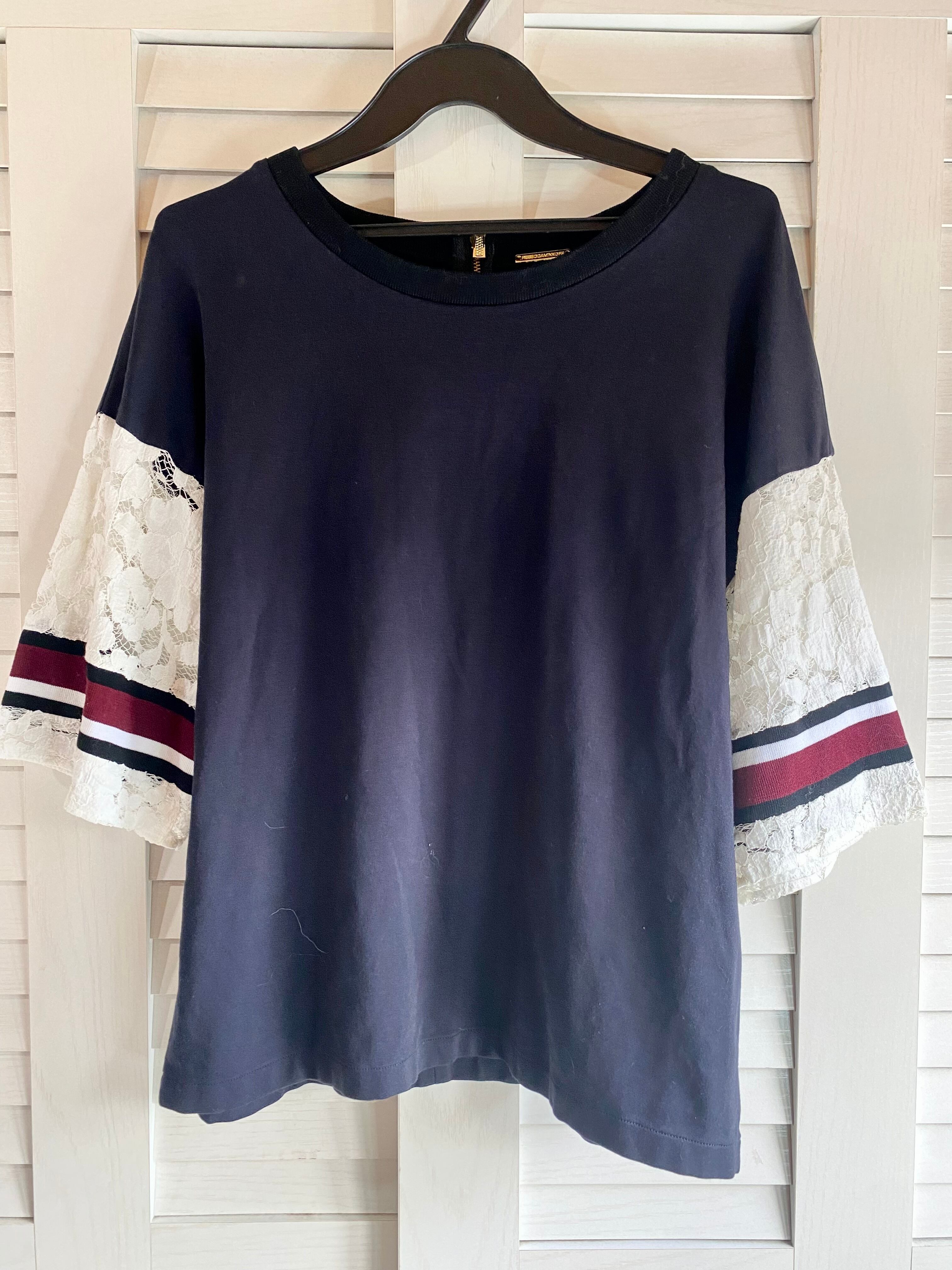 #65 REBECCAMINKOFF スポーツラインレーススリーブ オーバーサイズレーヨンジャージ プルオーバートップス ネイビー