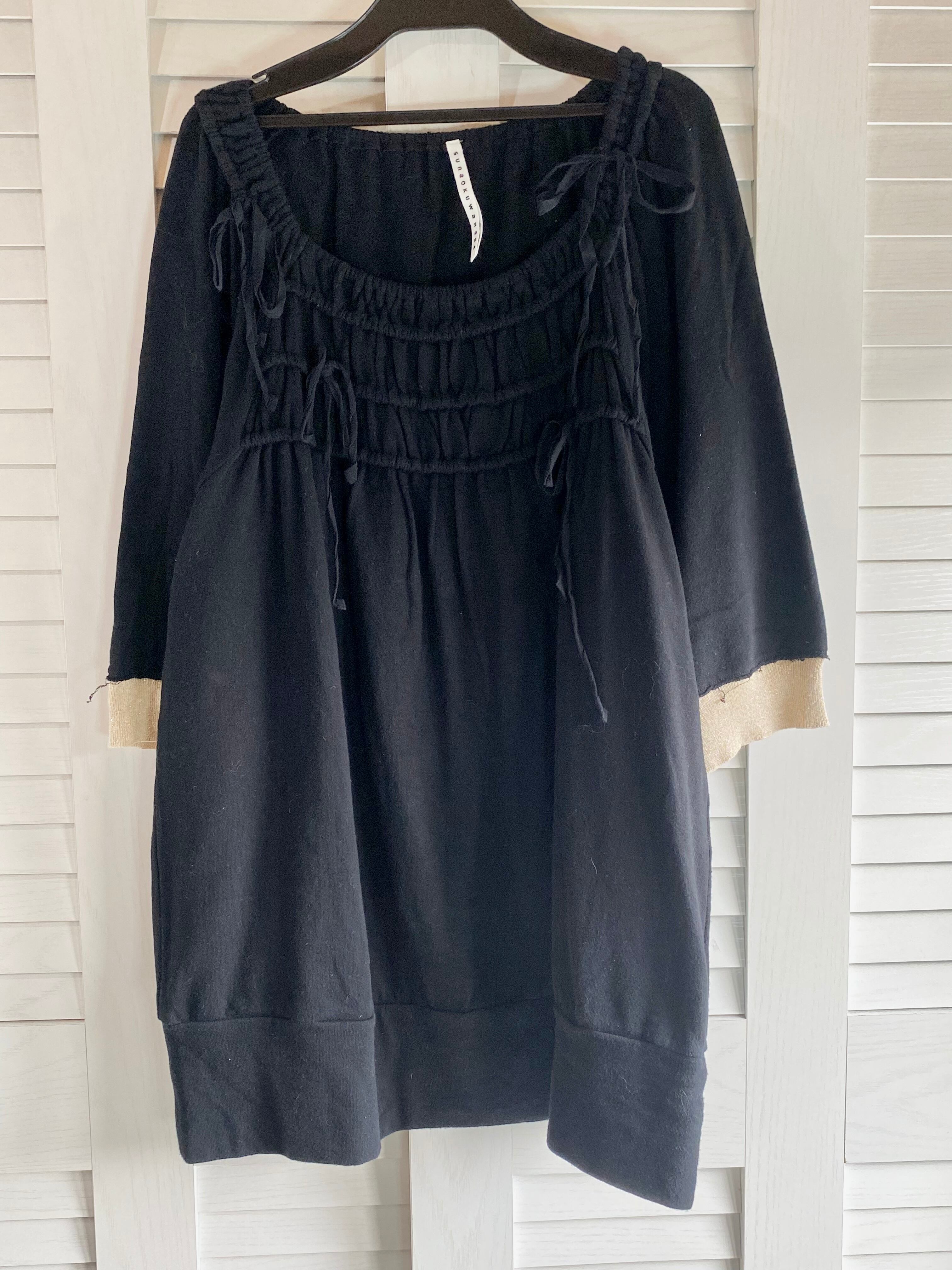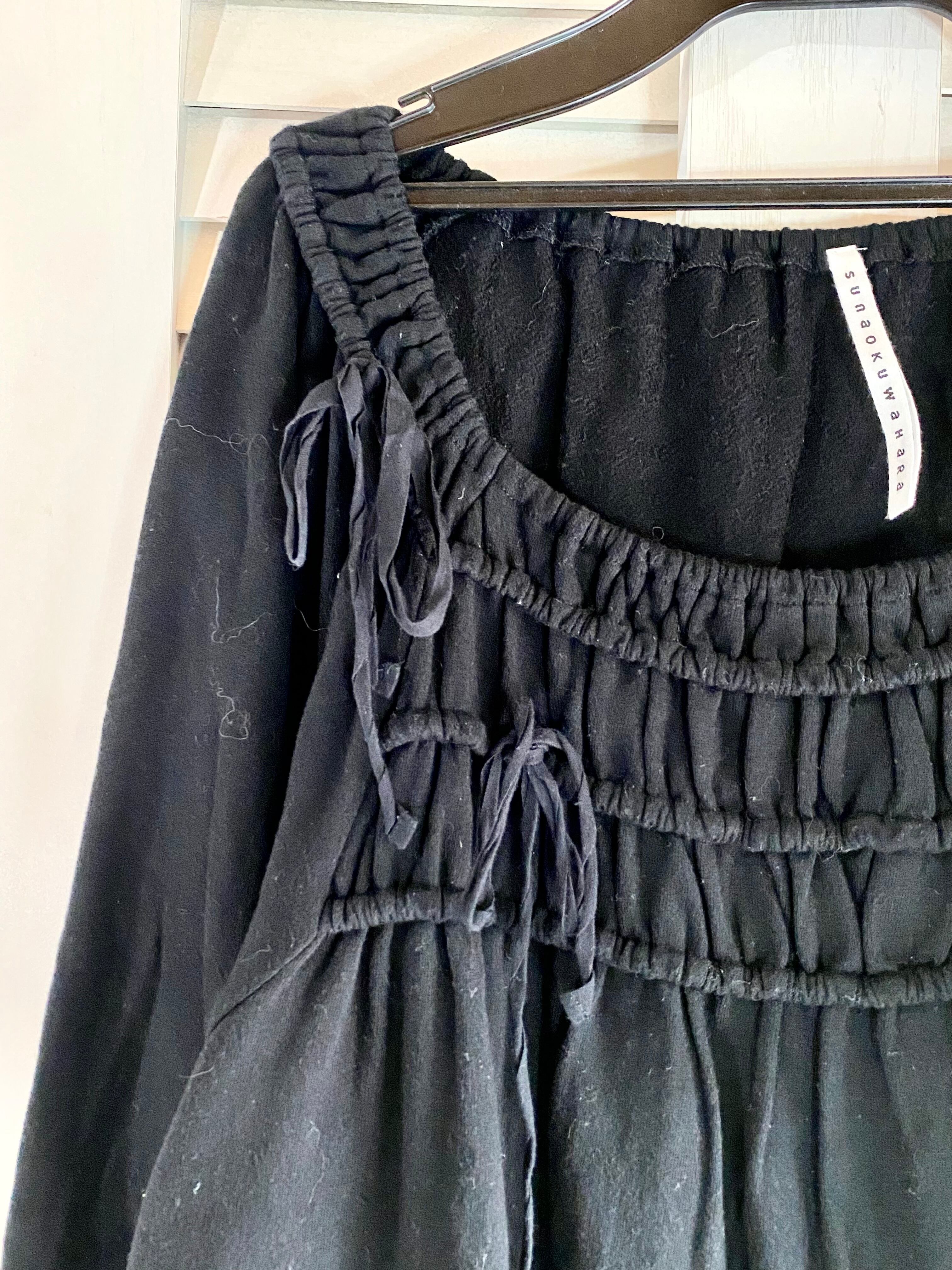 #66 SUNAOKUWAHARA 裏パイル シャーリングデザイン オーバーサイズワンピ ブラック
