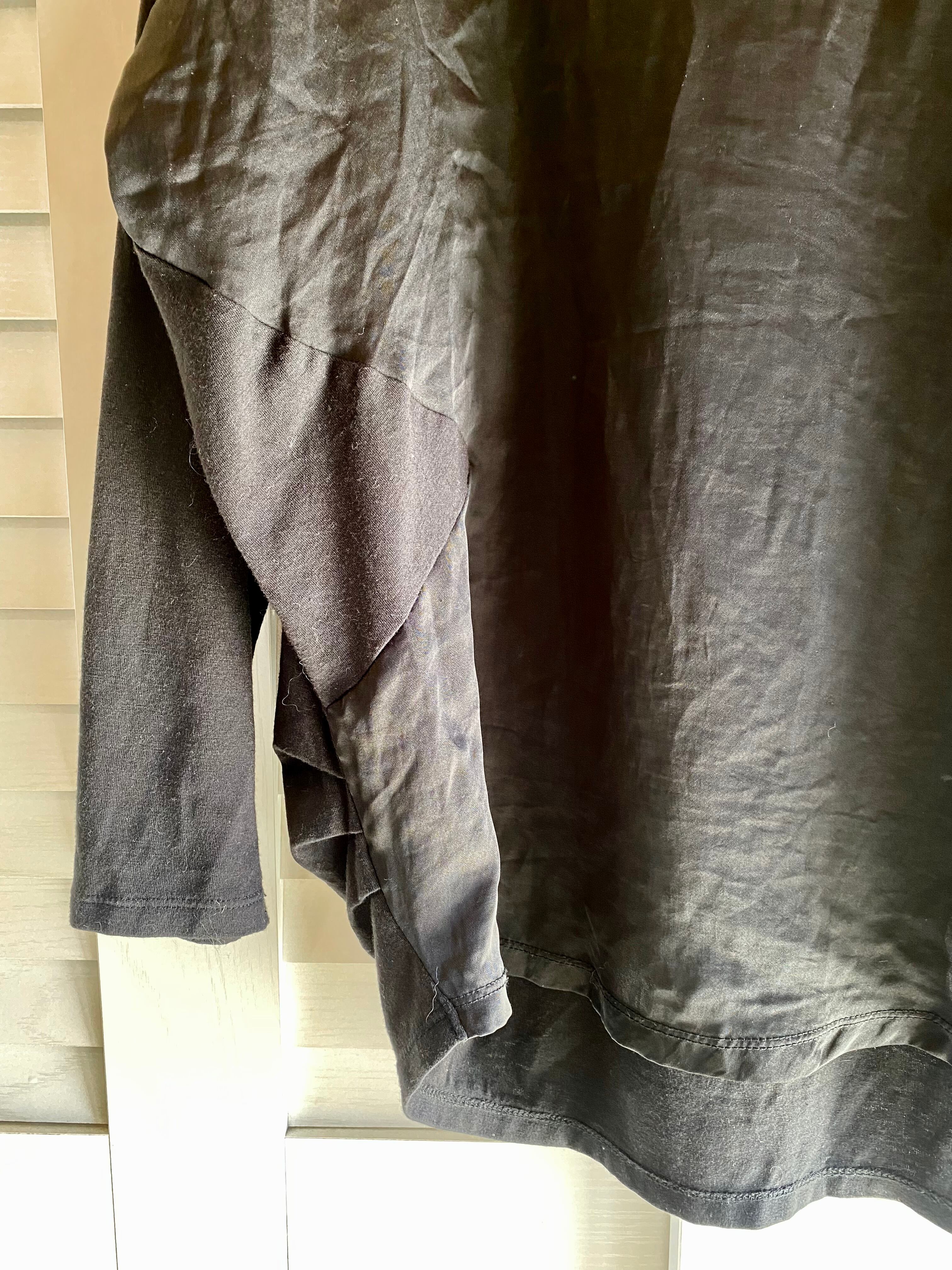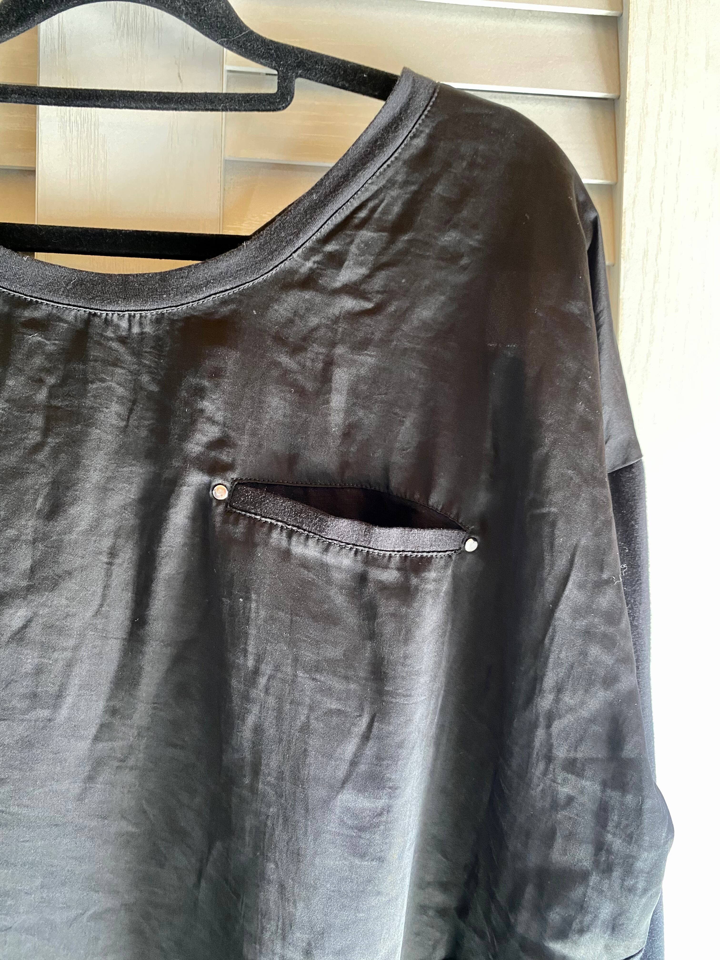 #67 JEANASIS ヴィンテージサテン×カットソー デザインプルオーバーブラウス ブラック