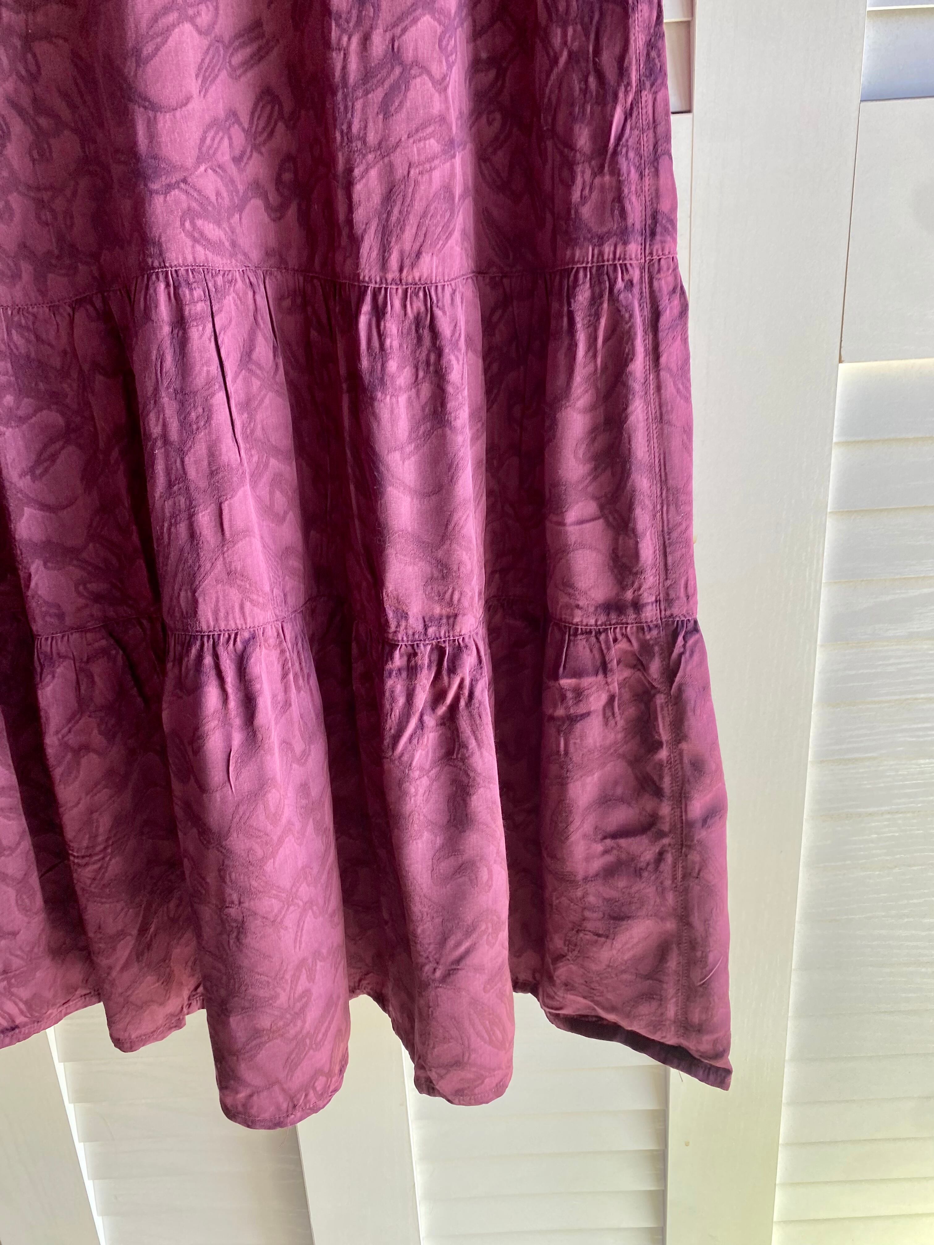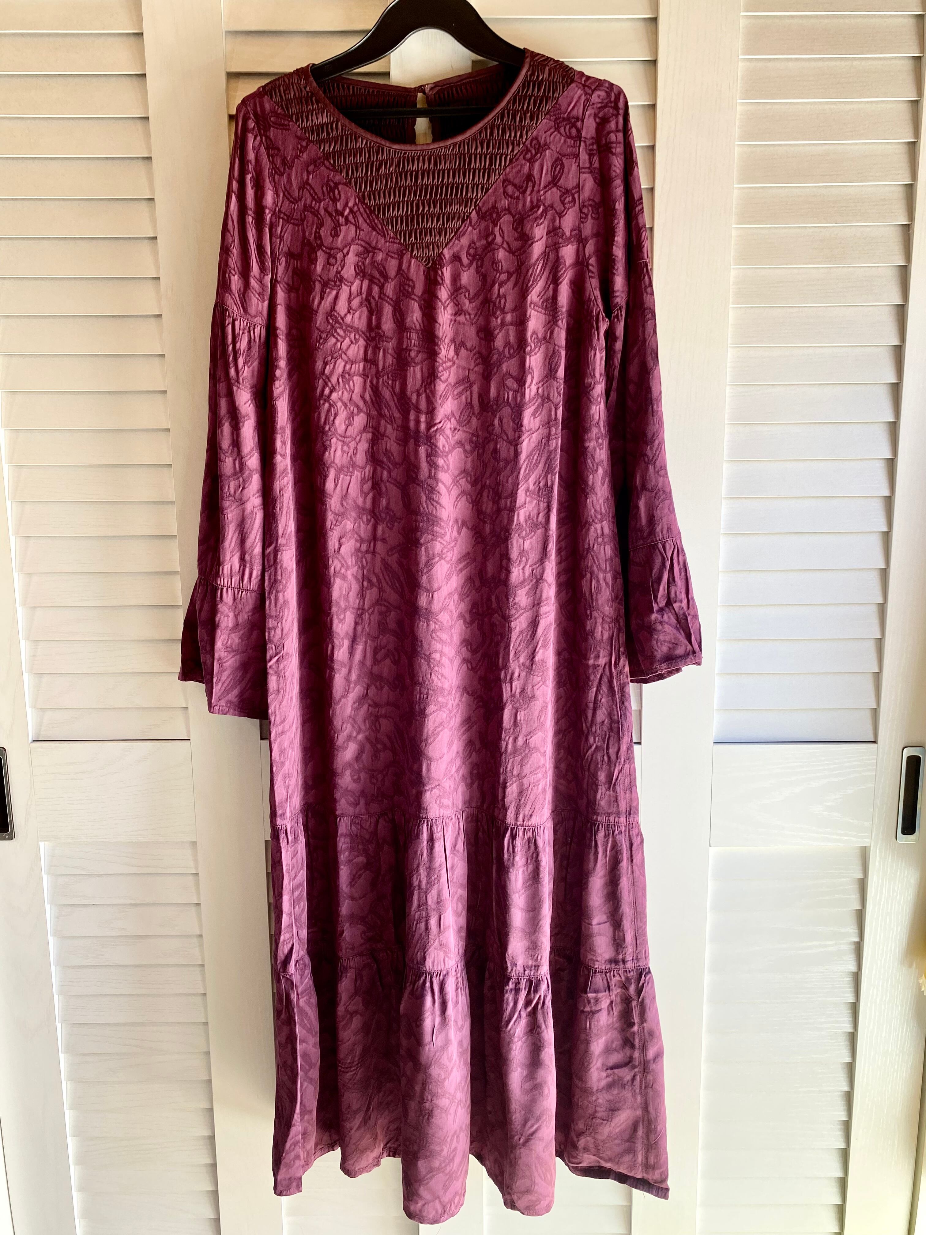 #67 Ray BEAMS シャーリングカラー ジャガードサテン ティアードワンピ ボルドー