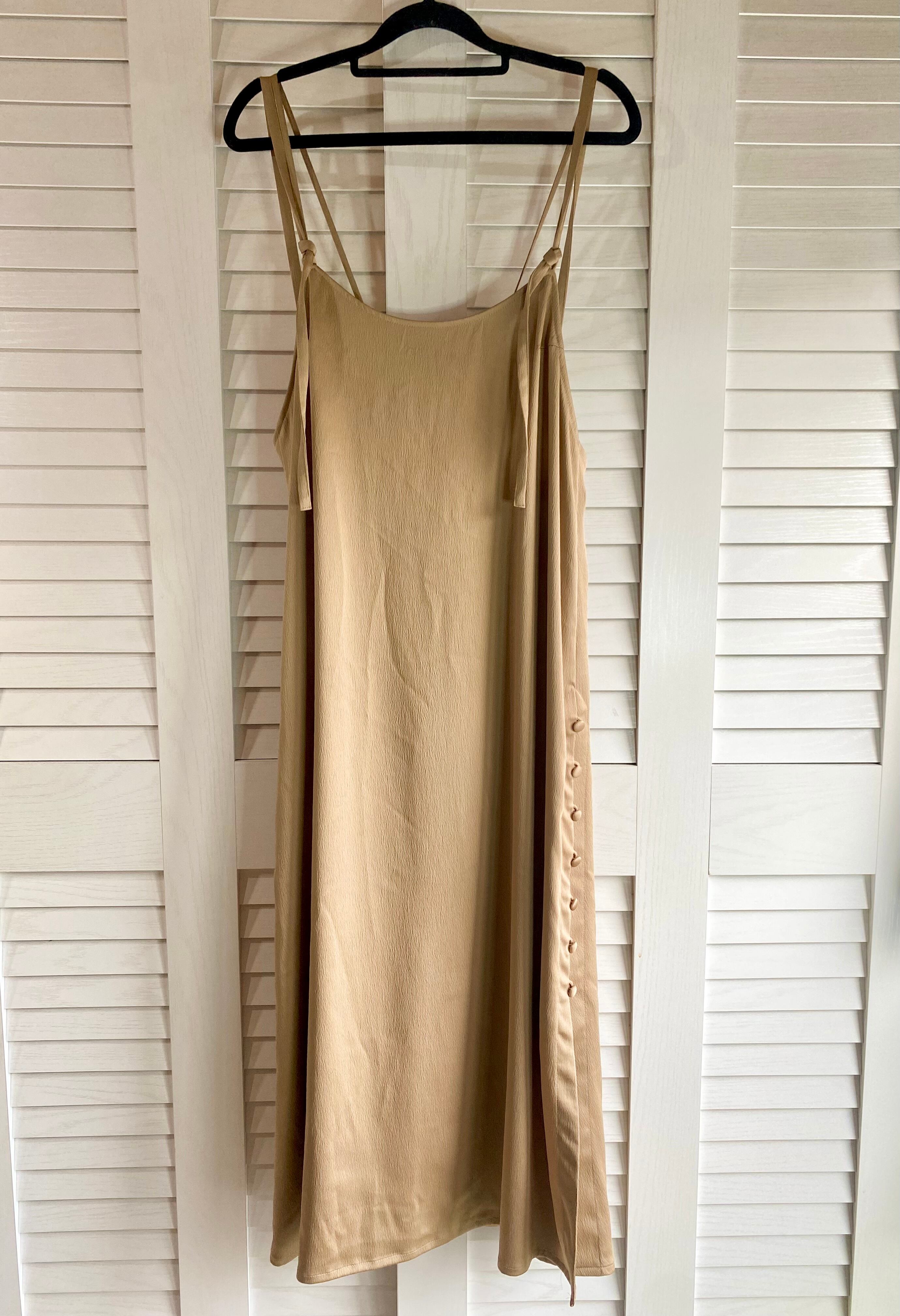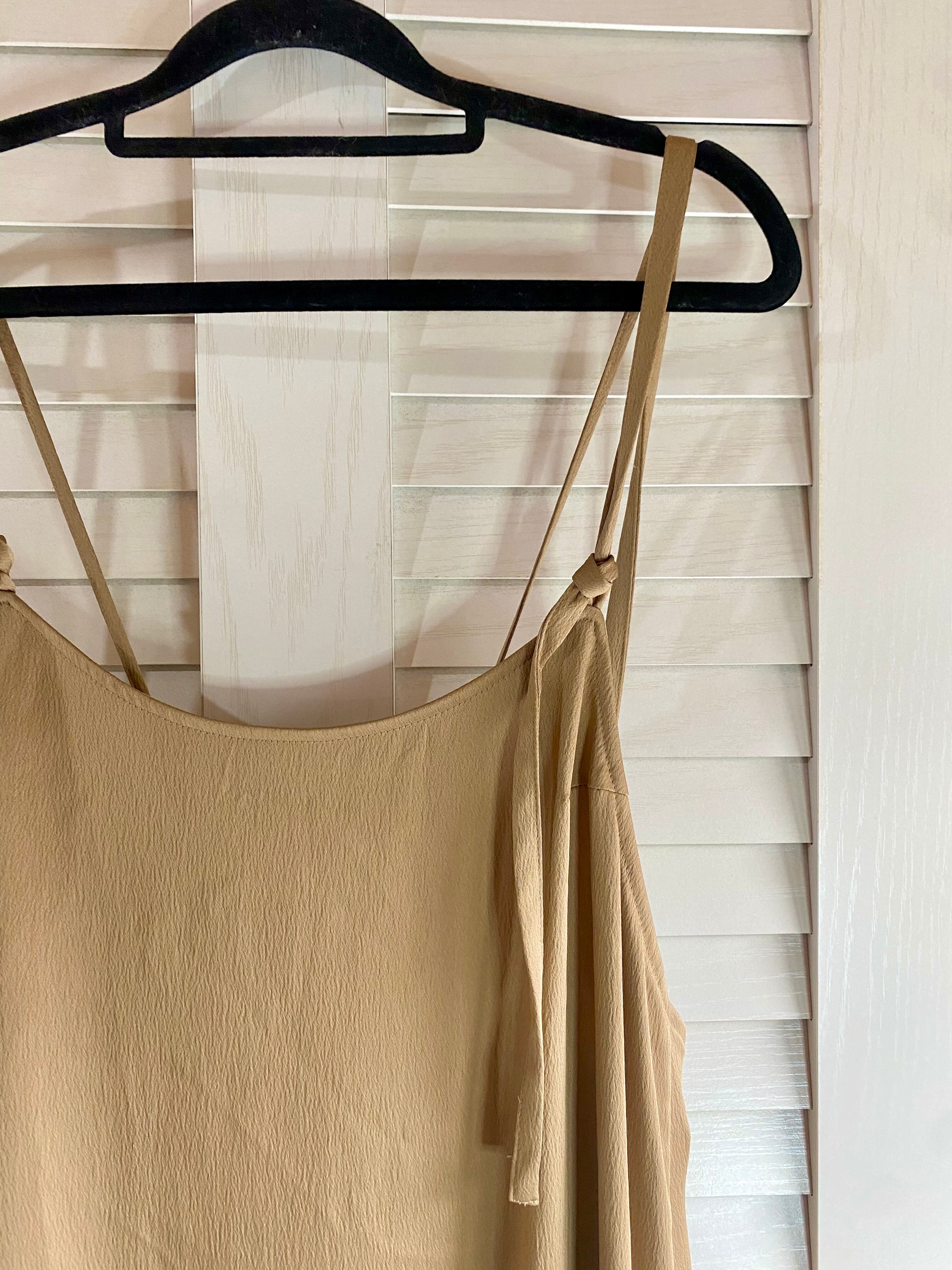 #68 UNITED TOKYO 型押しストレッチサテン デザインキャミソールワンピ ベージュ
