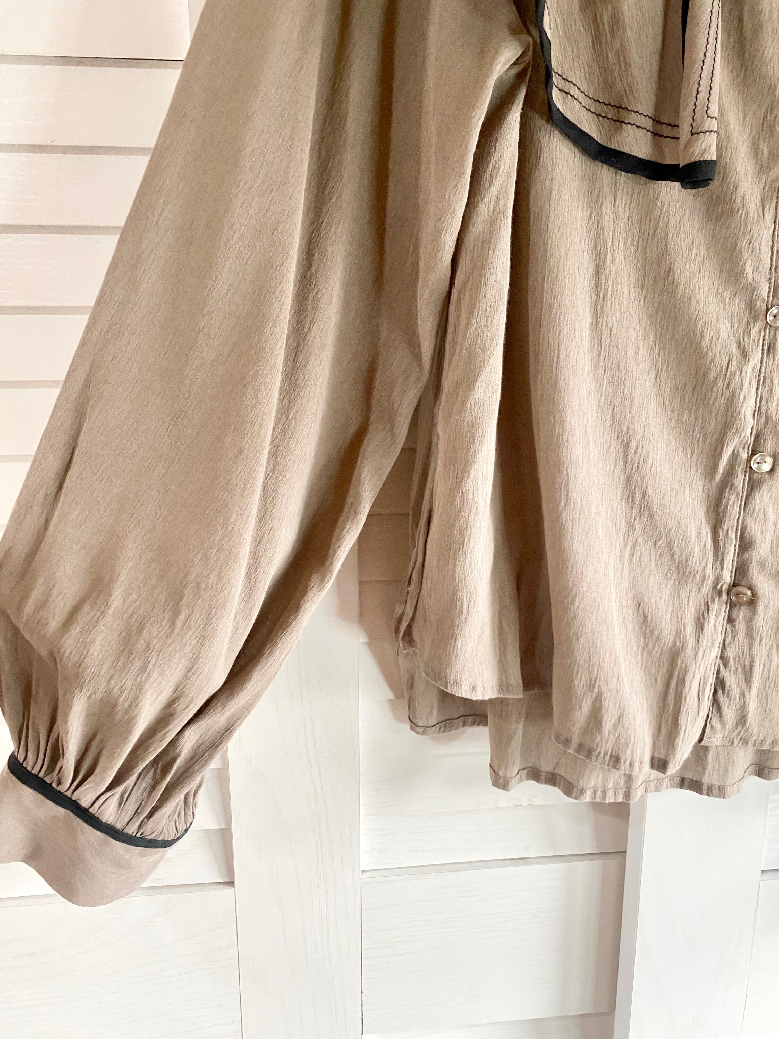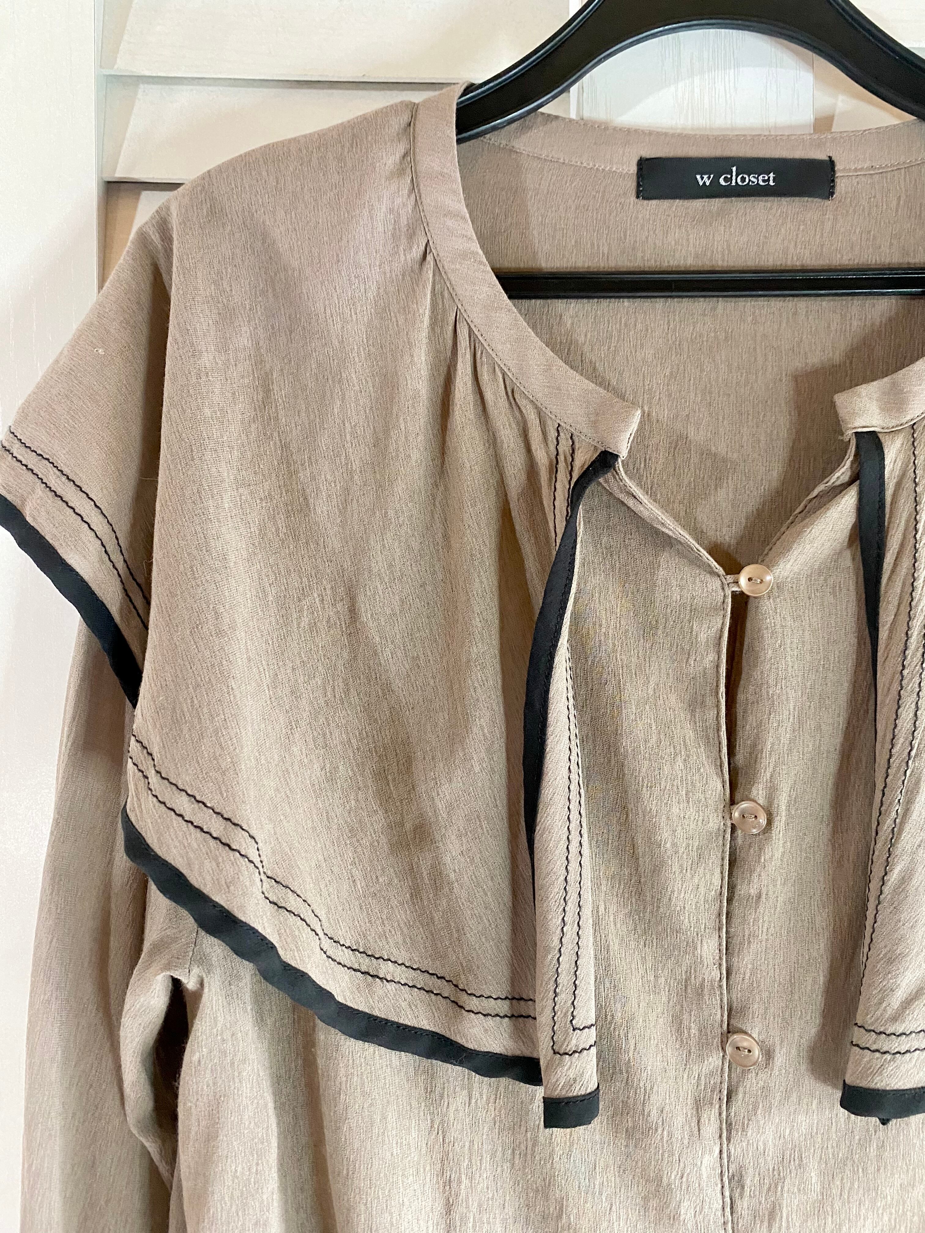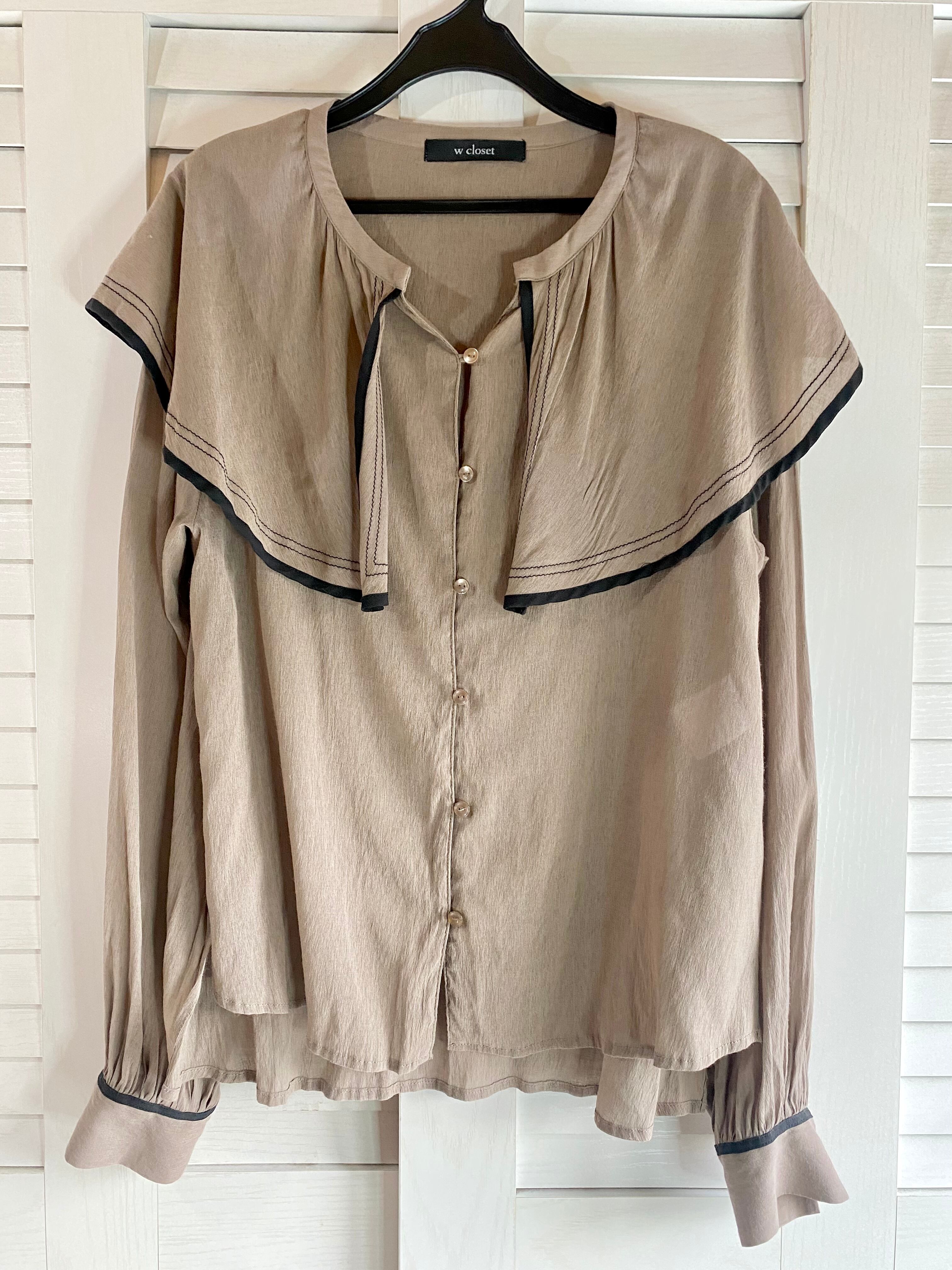 #68 w closet BIGフレアーカラー レーヨンポリ オーバーブラウス グレーベージュ