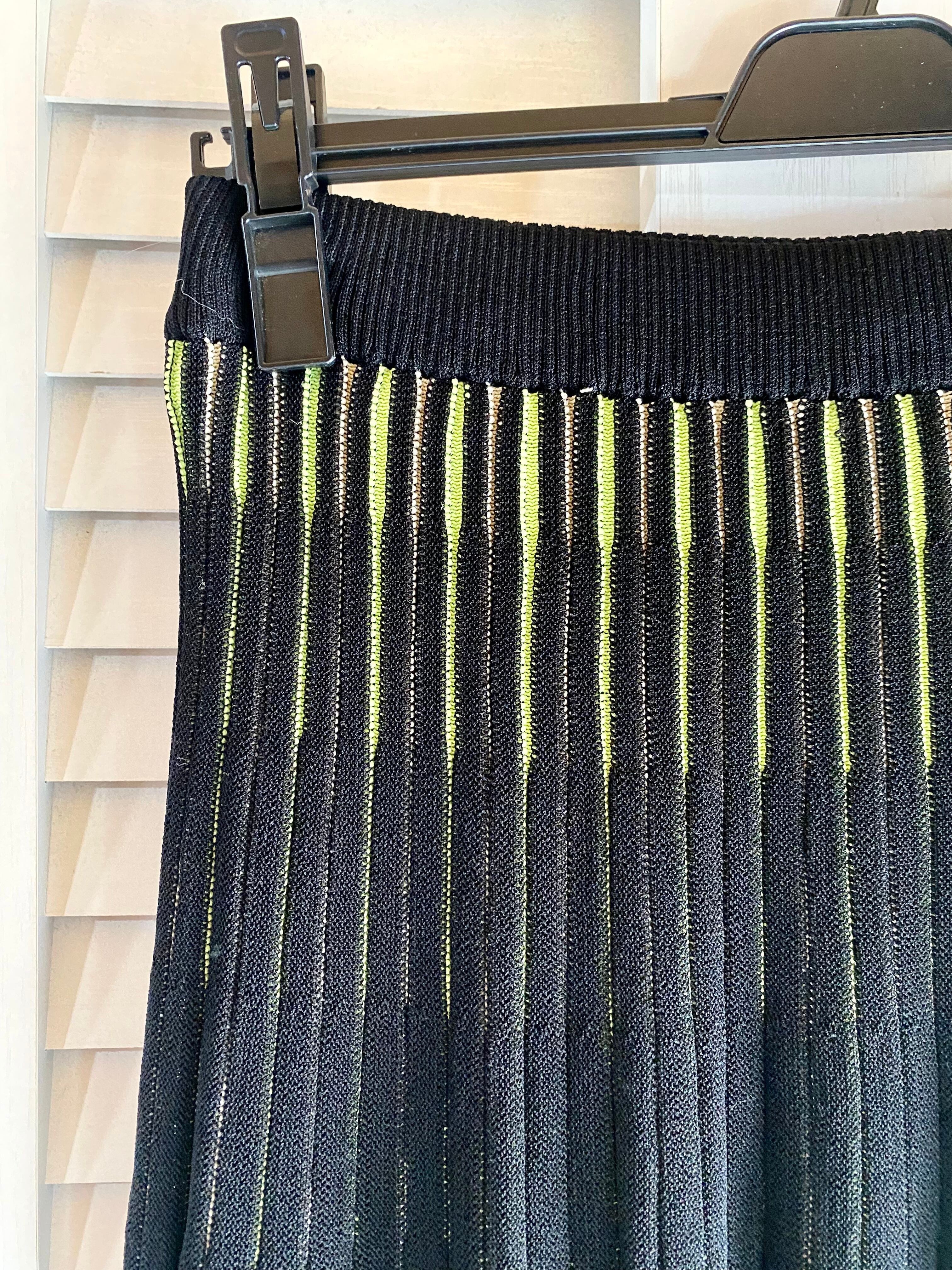 #69 LANDWARDS レーヨンニット 配色カラーデザインプリーツスカート ブラック