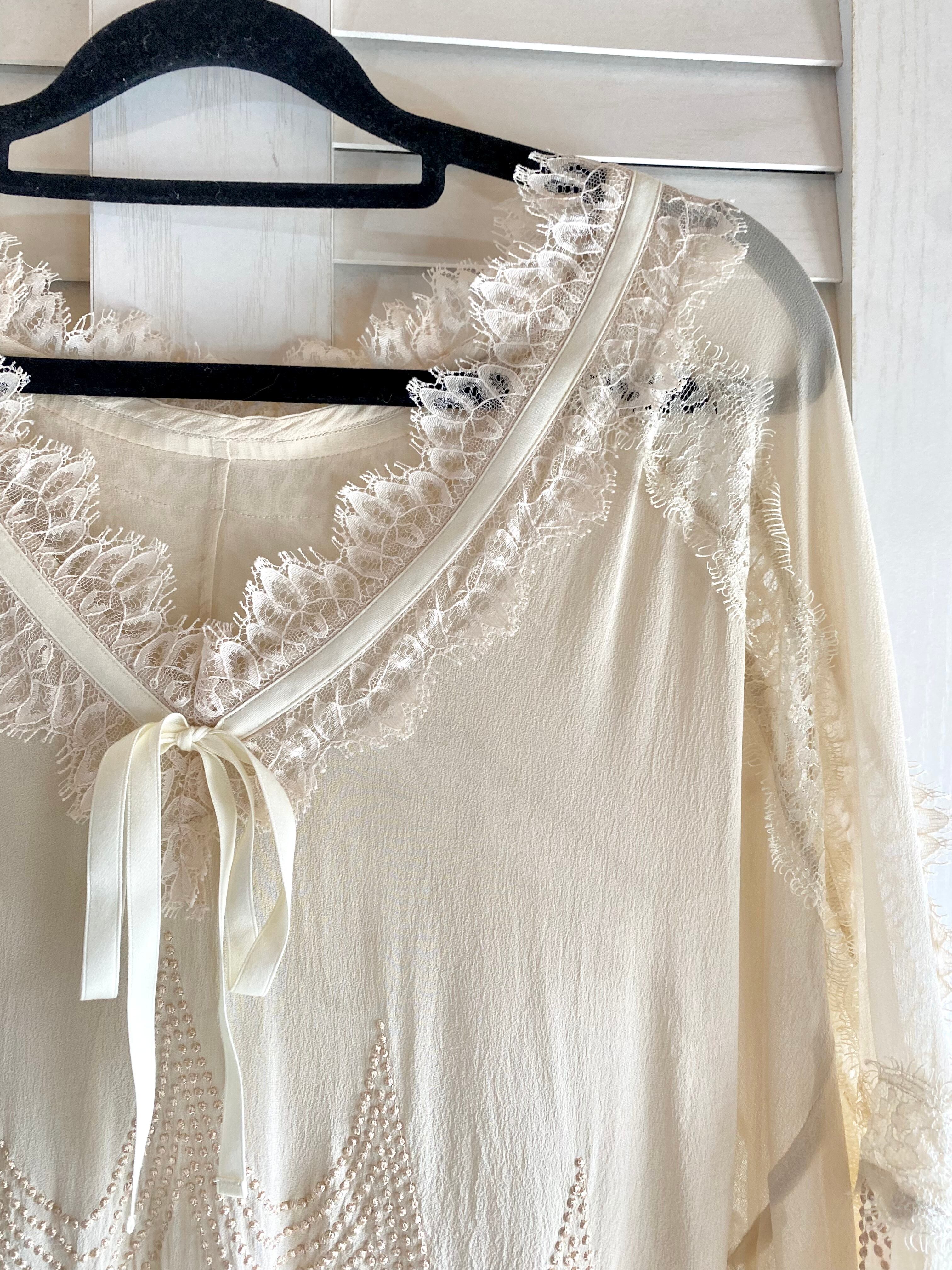#70 GRACE CONTINENTAL シルクジョーゼット レース&刺繍オーバーブラウス クリームベージュ