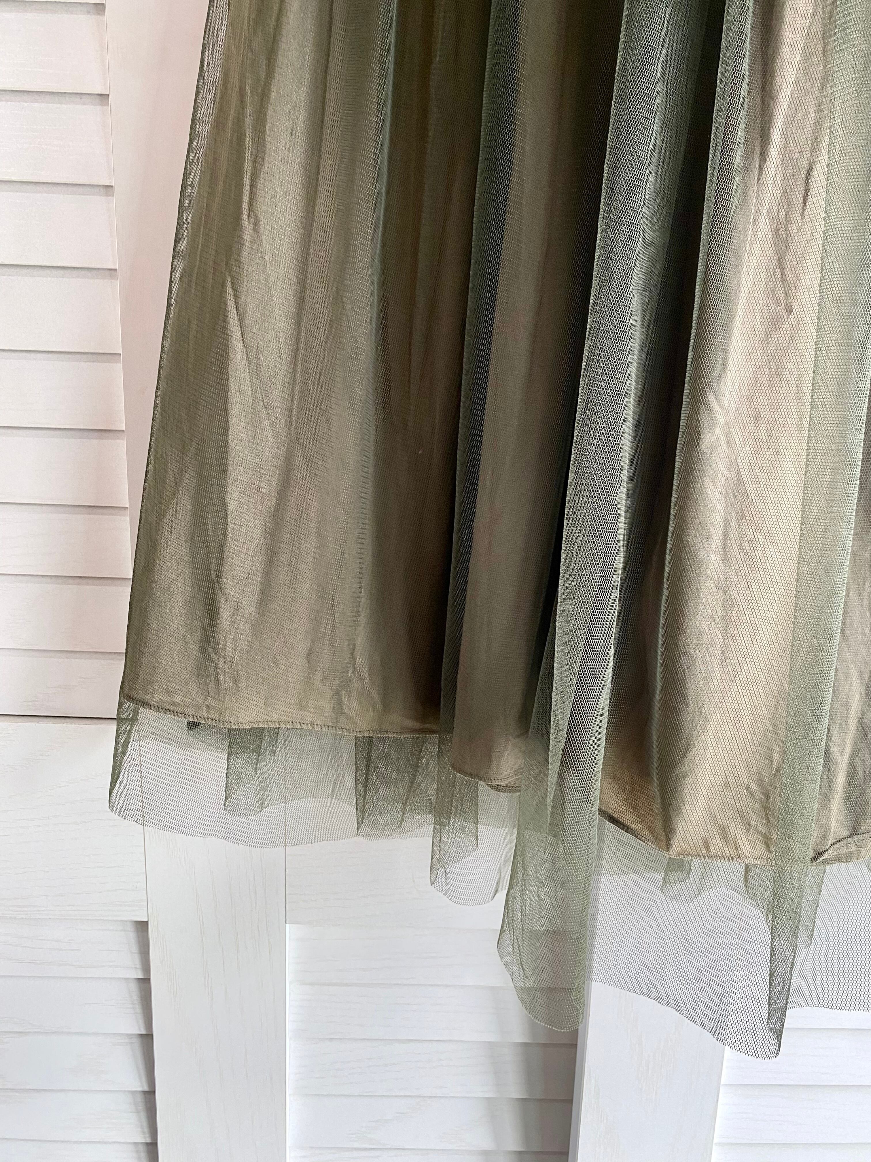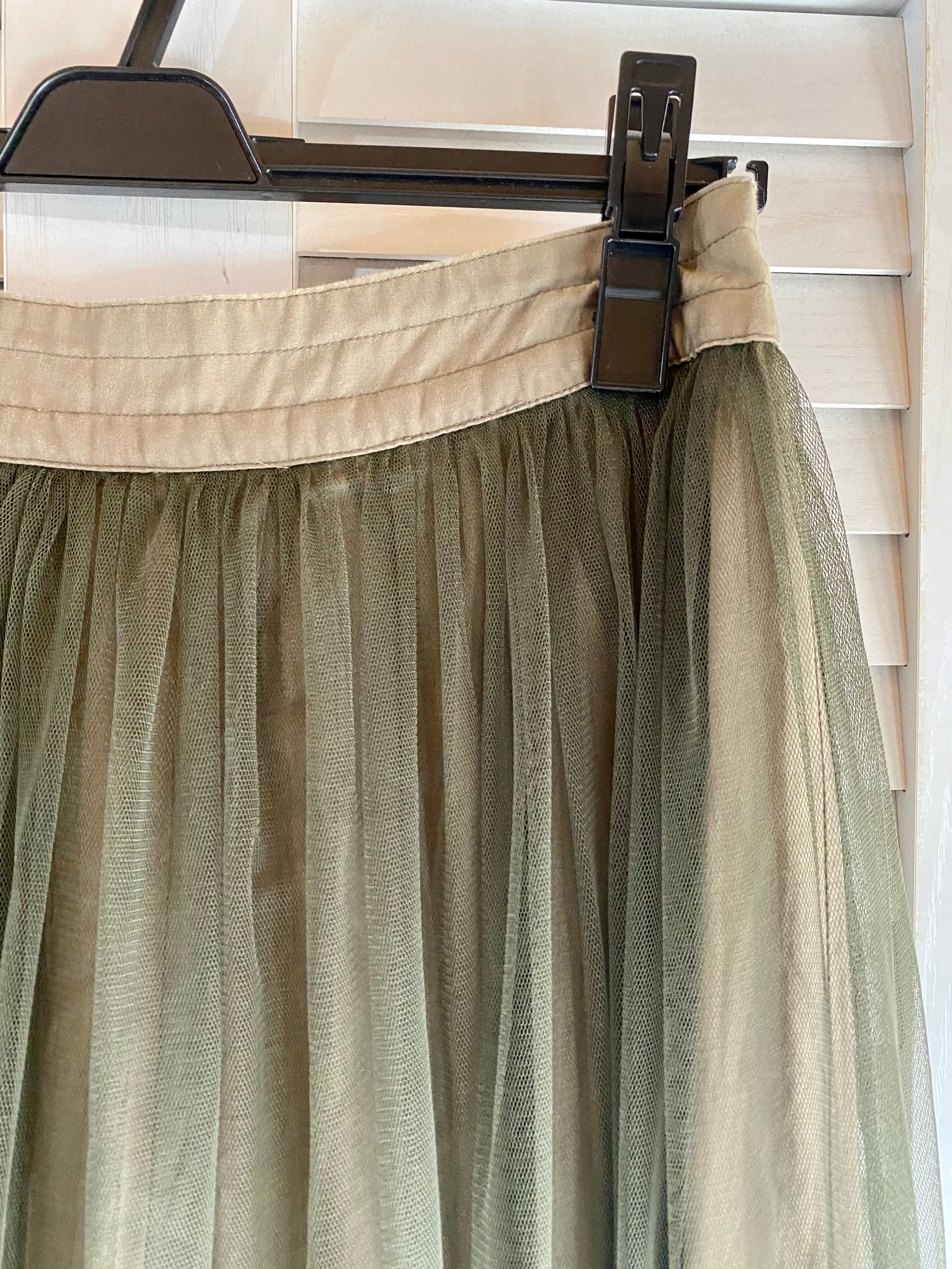 #70 Ray BEAMS ツイル地×ハードチュール ボリュームスカート カーキ