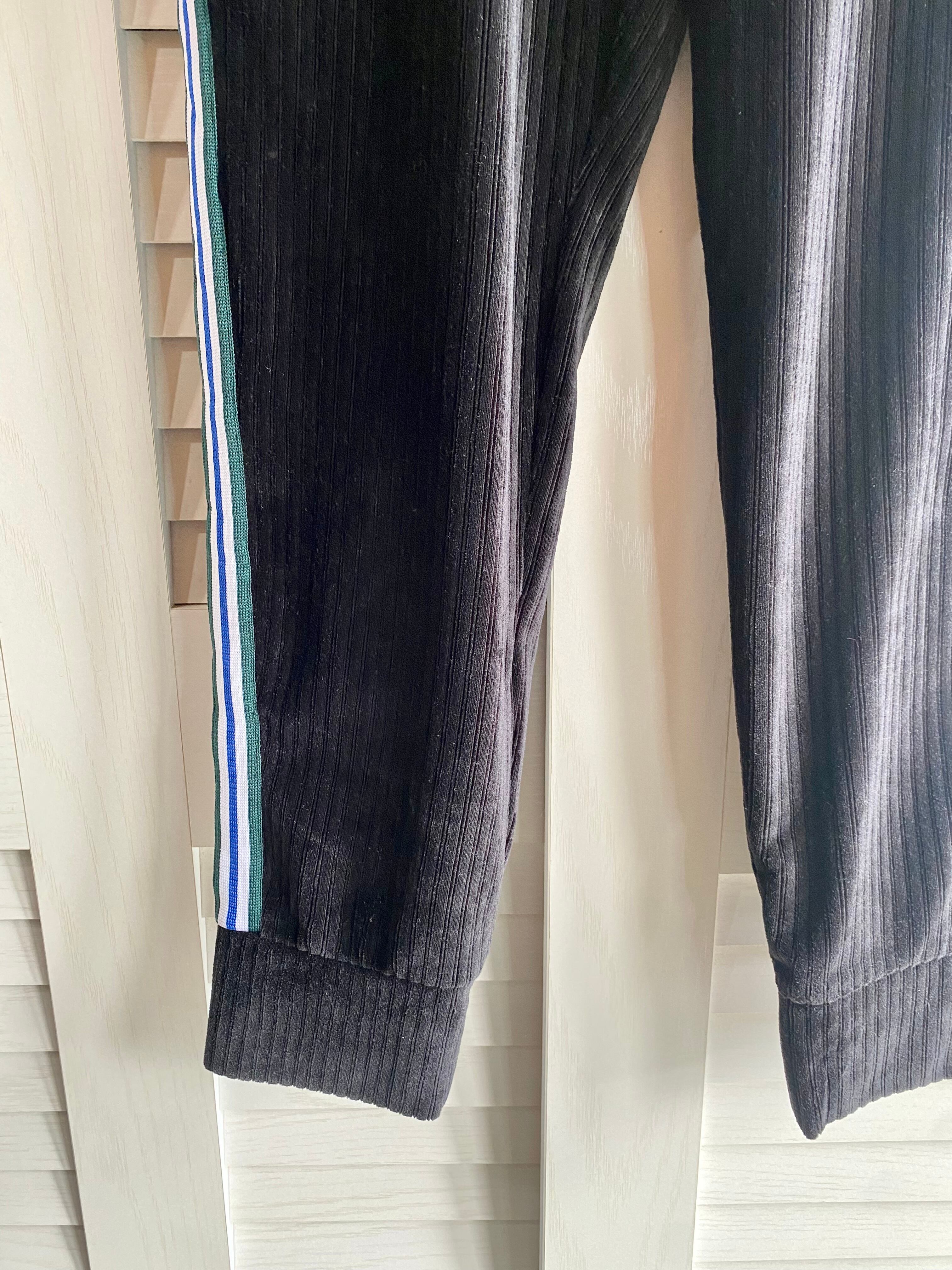 #70 GYDA ストライプベロア サイドラインルーズパンツ ブラック