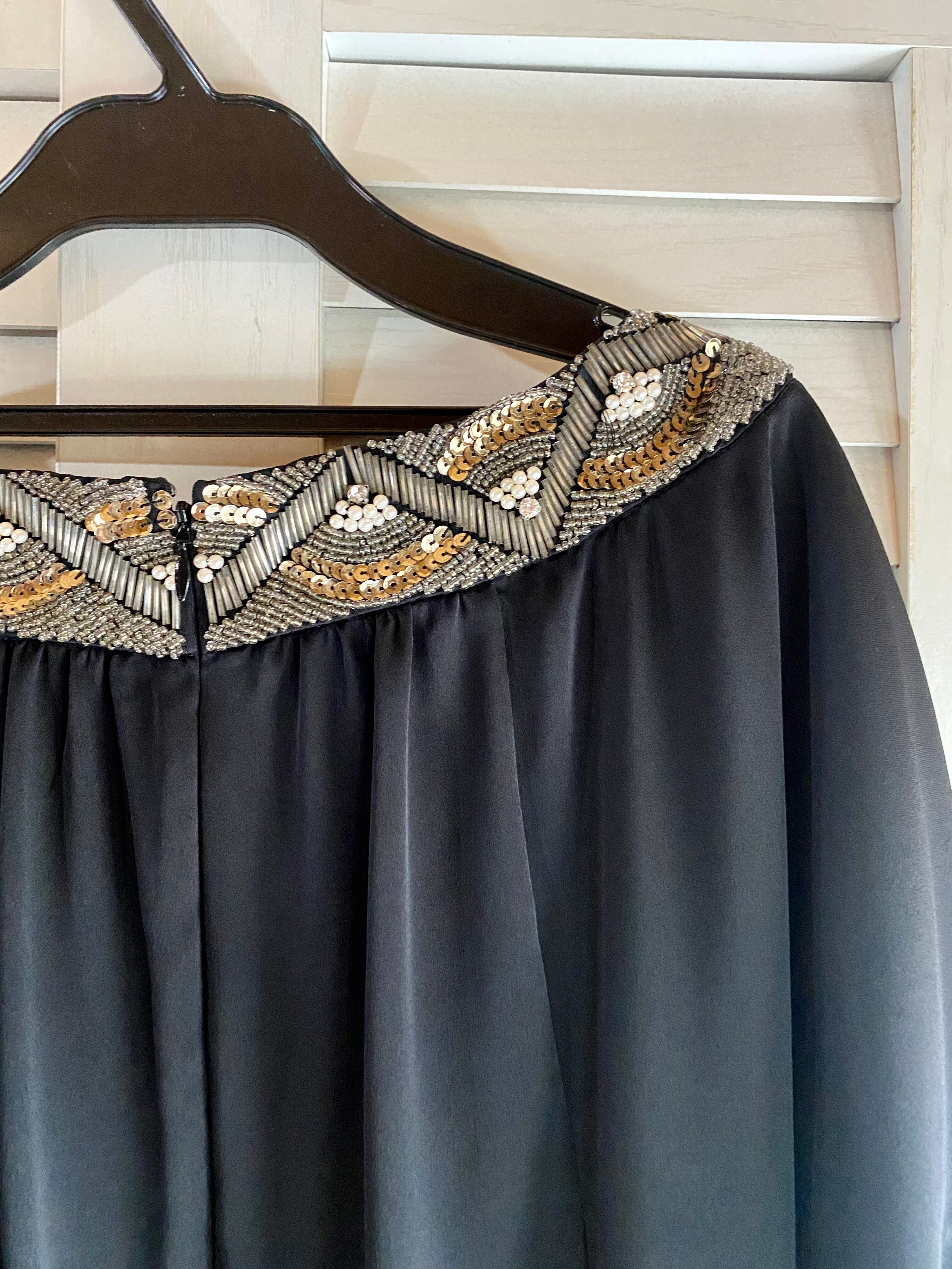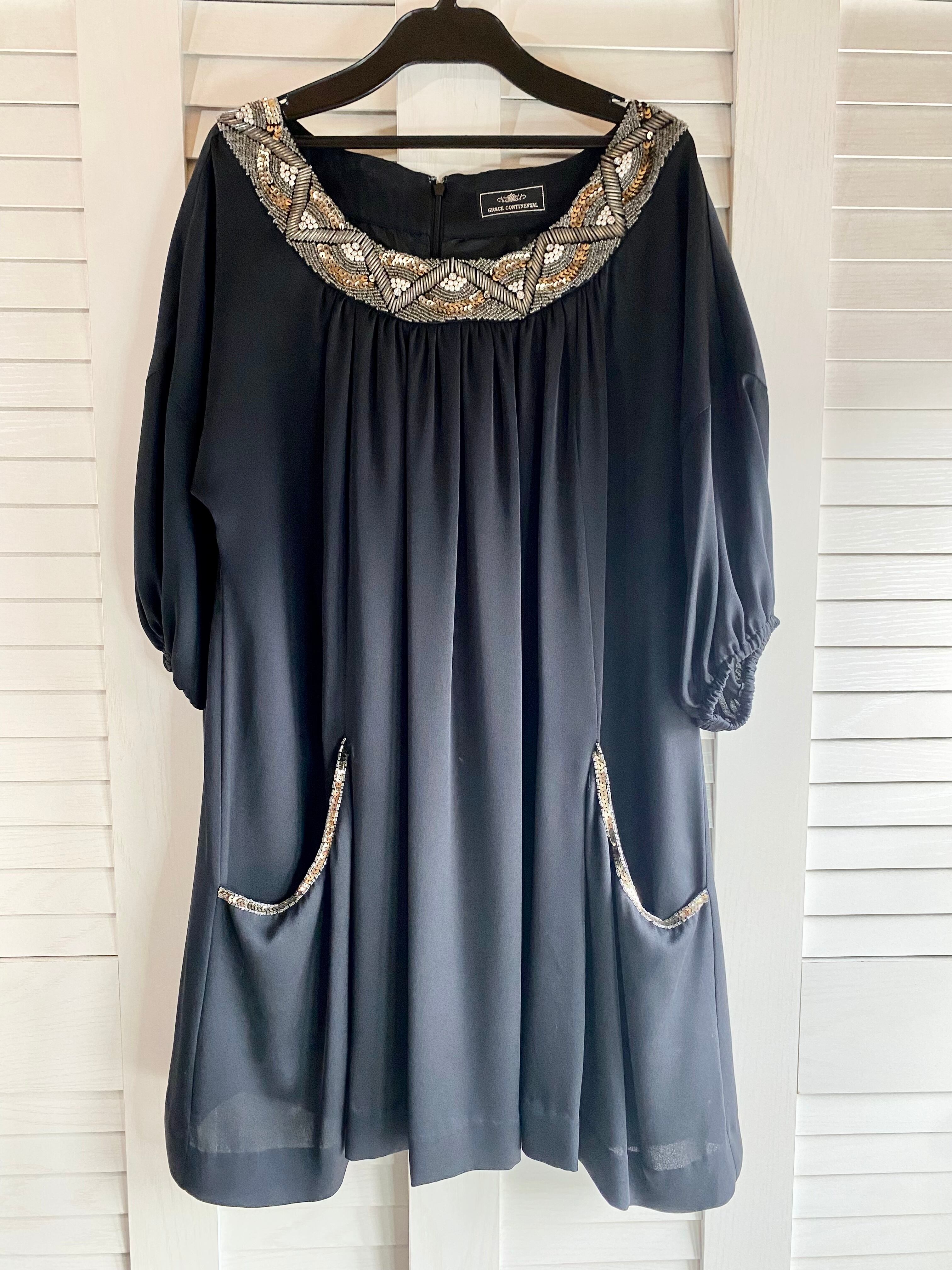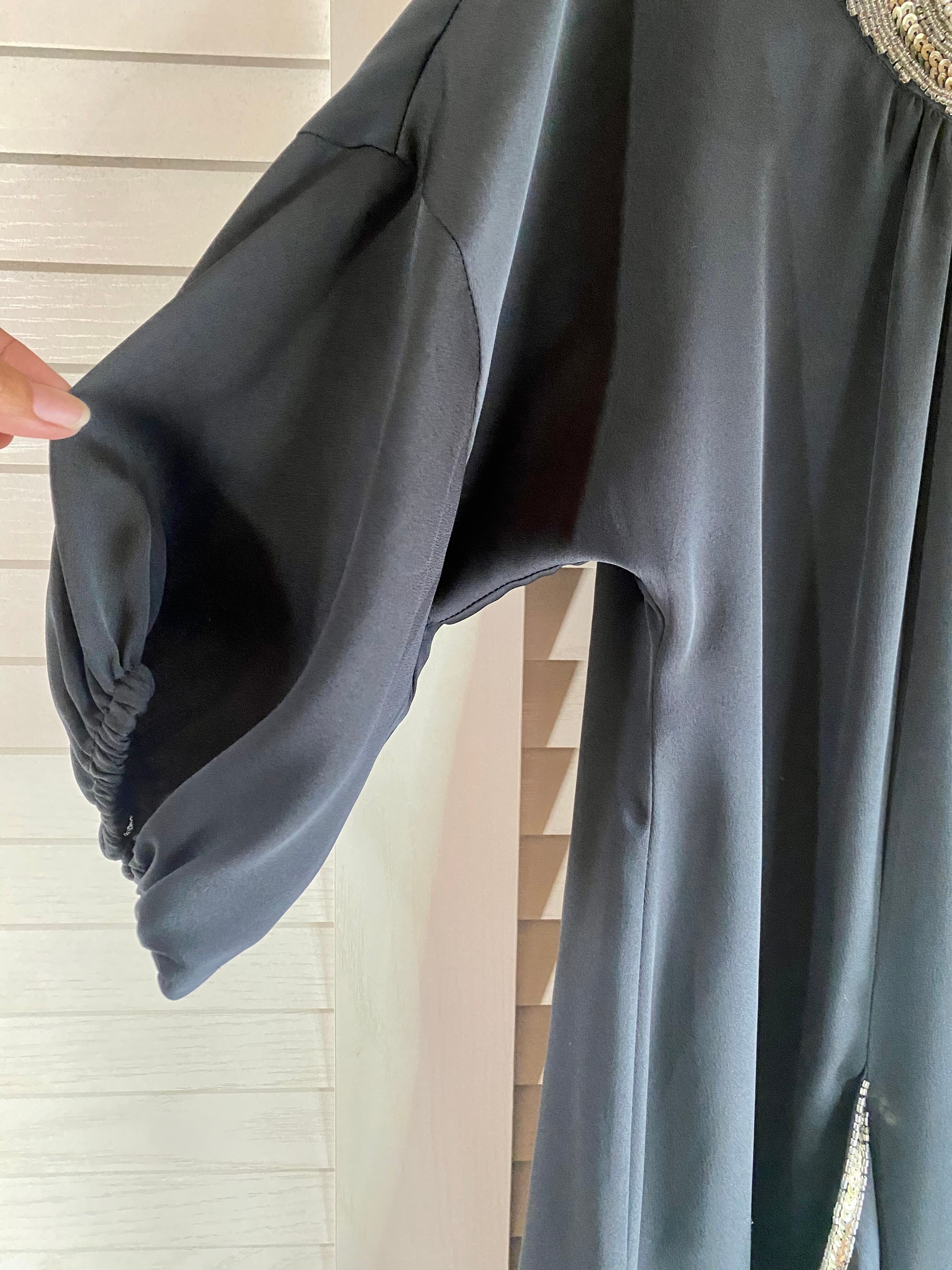 #71 GRACE CONTINENTAL ビジューデコレーションカラー バルーンスリーブ ボリュームワンピ ブラック
