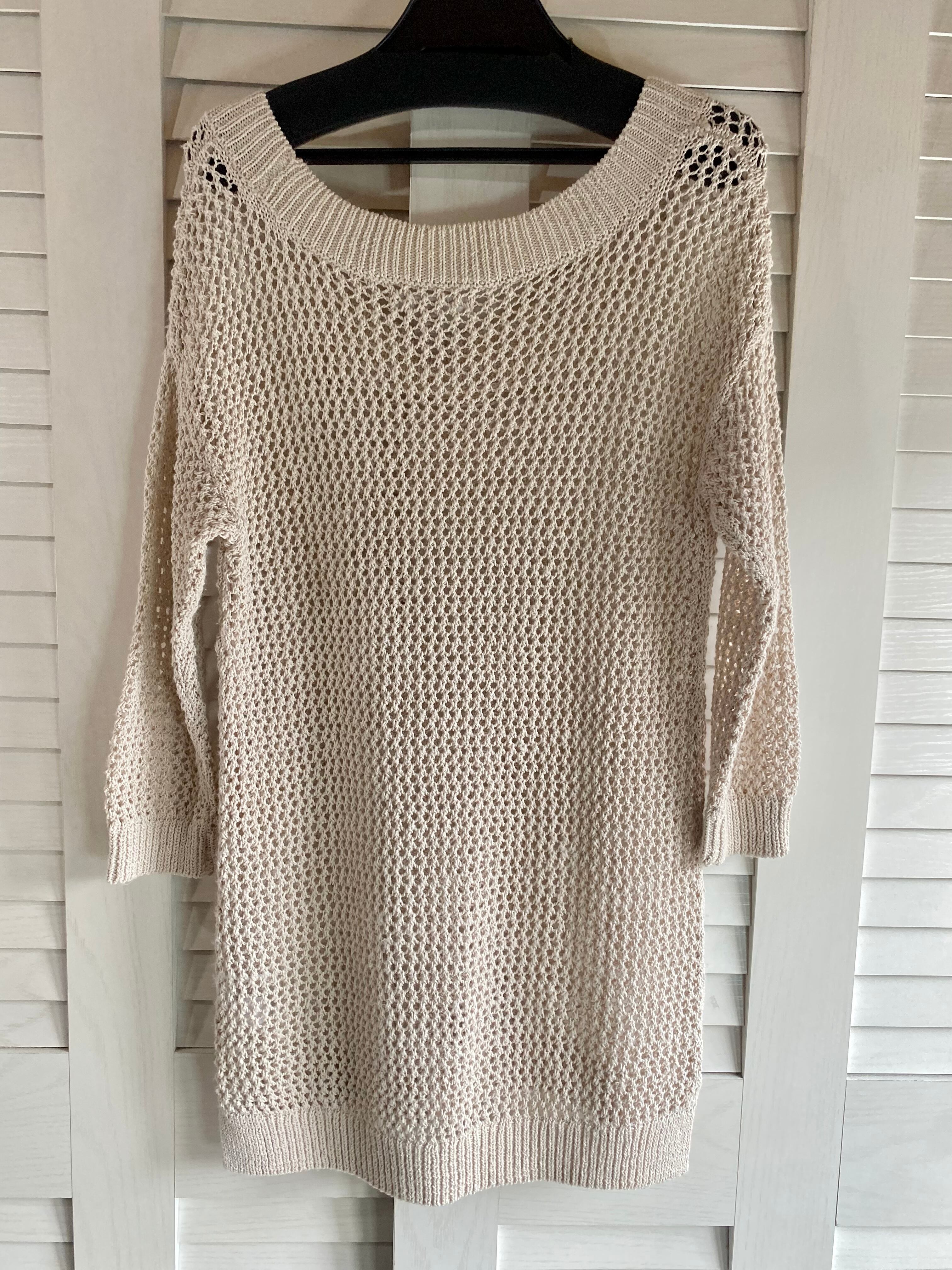 #71 BANANA REPUBLIC コットンナイロン ラウンドネック メッシュニット ナチュラルベージュ