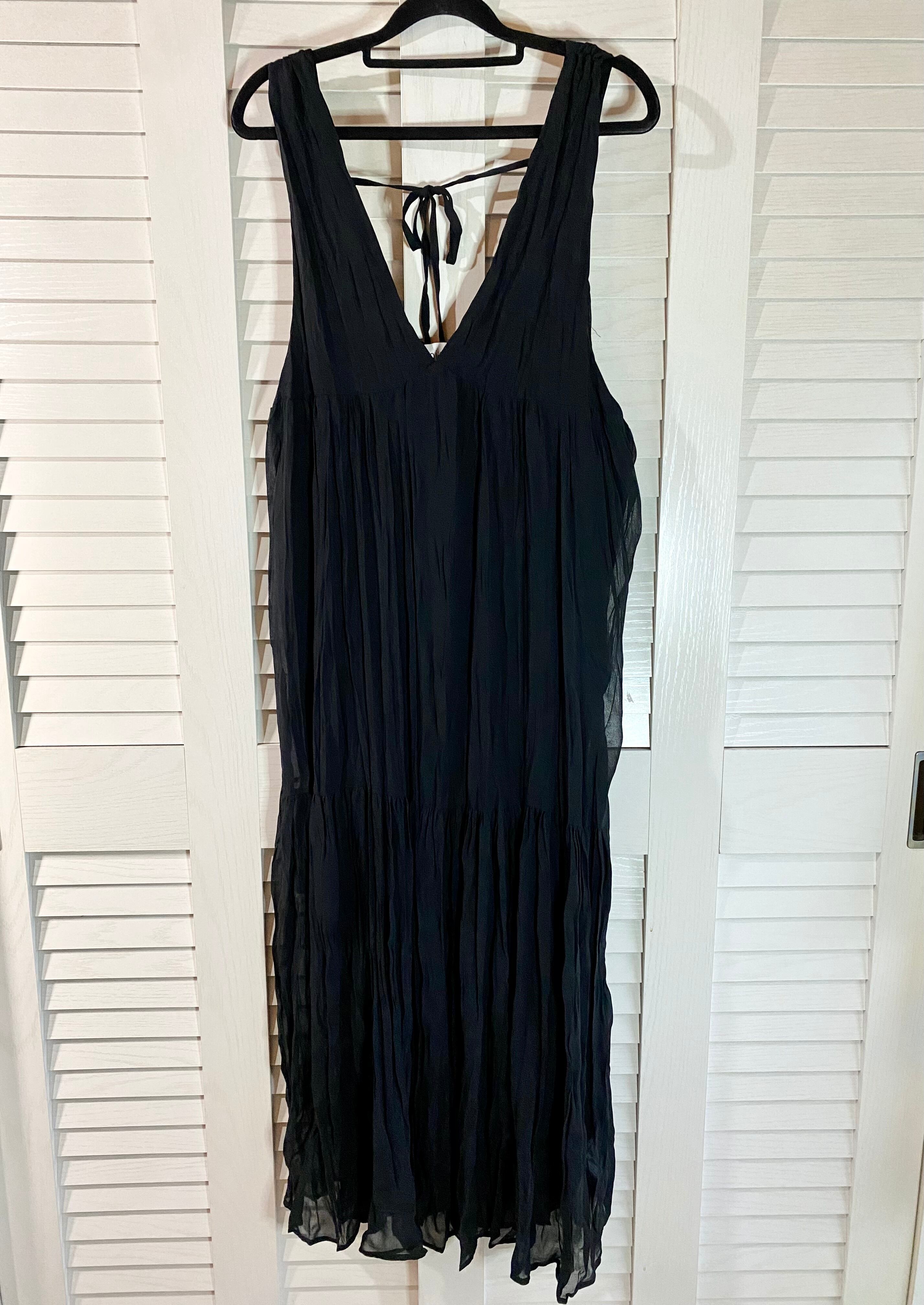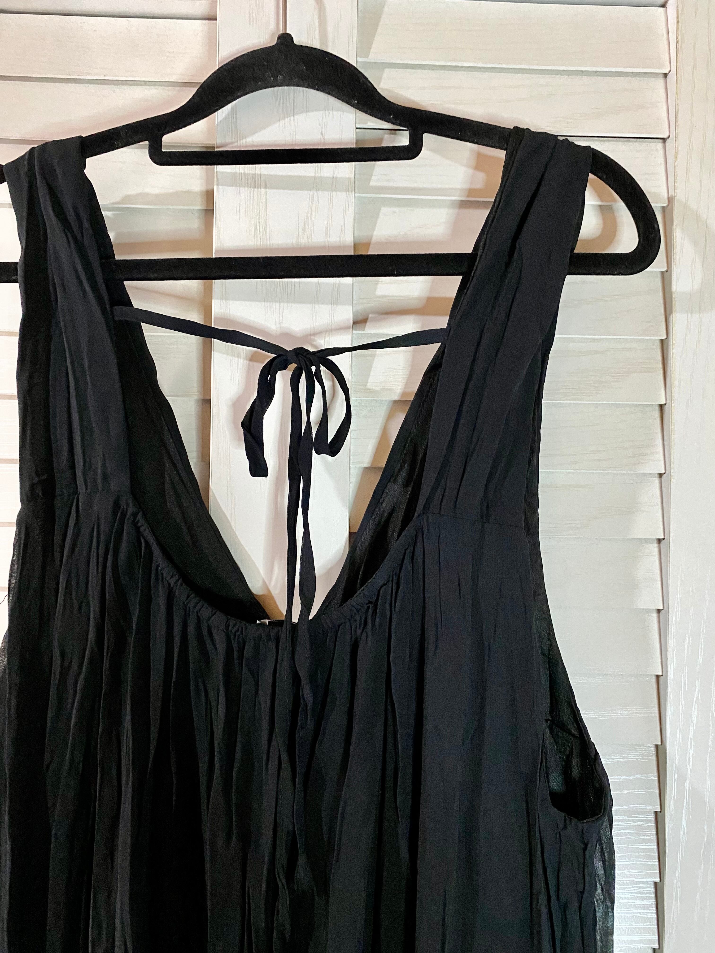 #72 emi+ ランダムプリーツ加工 シフォンジョーゼット ティアードサロペットスカート ブラック